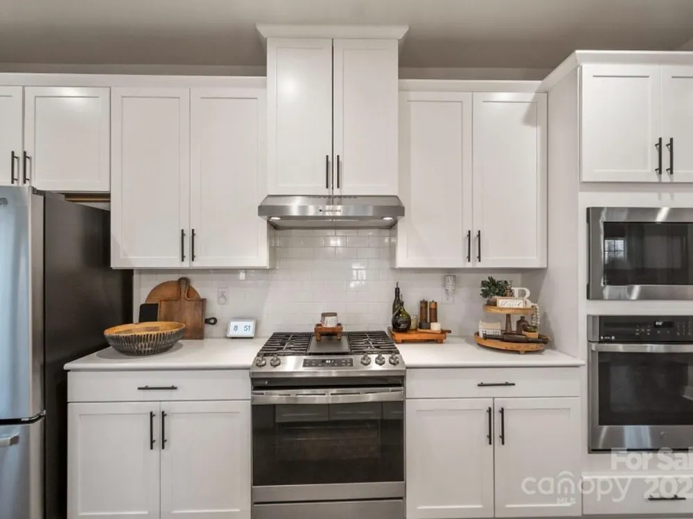 - Dishwasher, Disposal, Double Oven, Exhaust Hood, Gas Oven, Microwave, Plumbed For Ice Maker, Self Cleaning Oven, Wall Oven