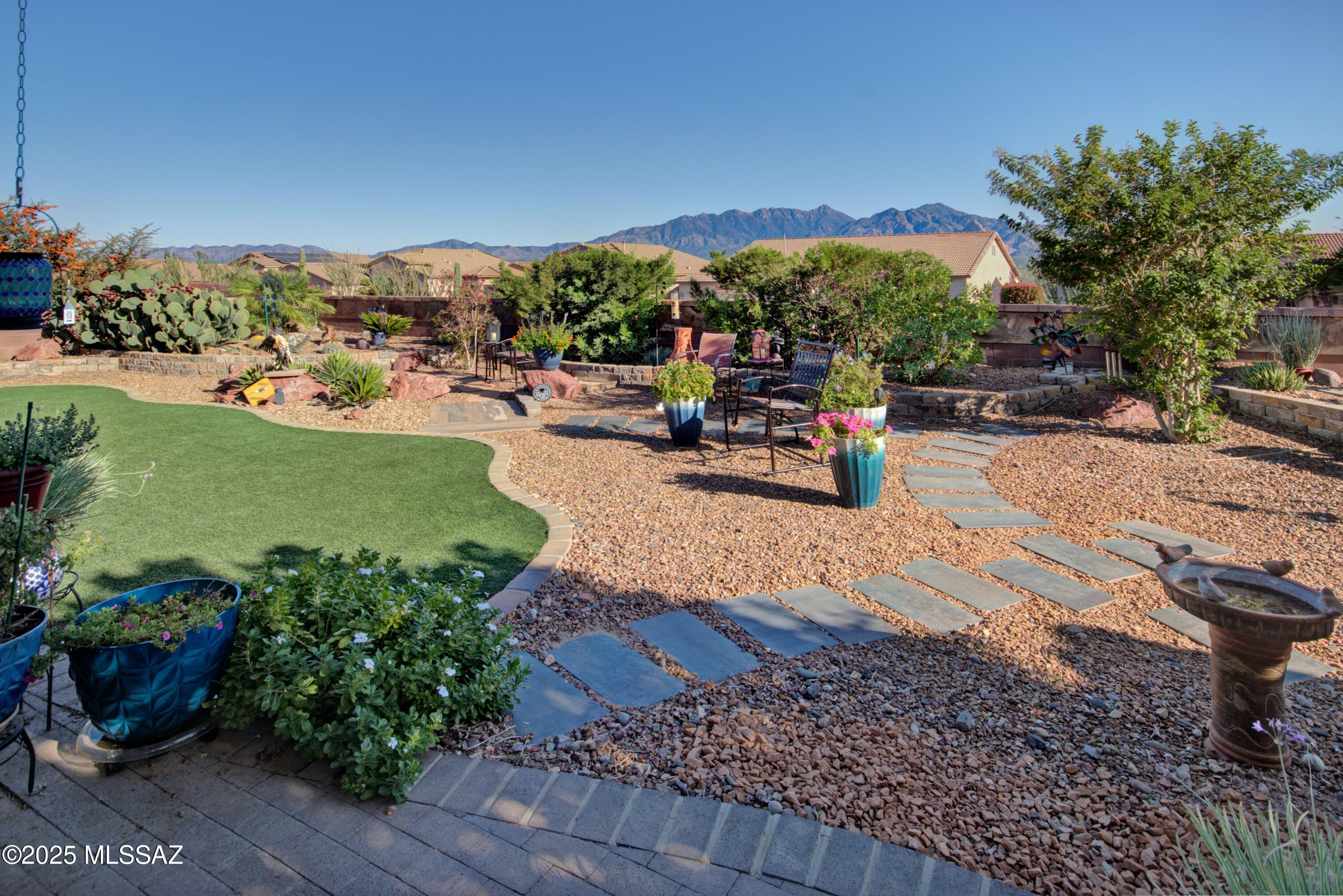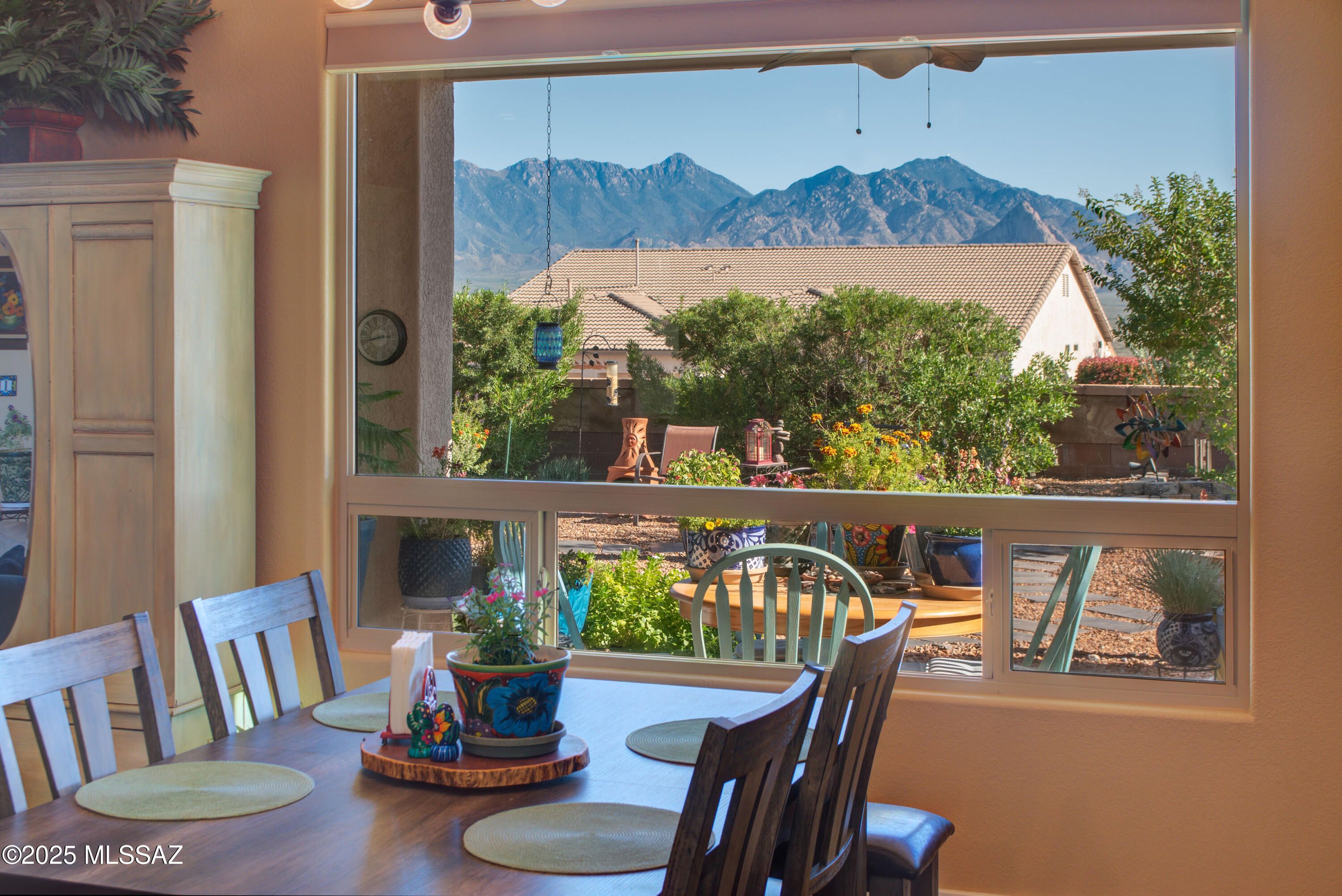 Beautifully remodeled home in popular Canoa Northwest features a lovely mountain view and the security of a gated community. As you enter, mountain views greet you from French doors leading to a professionally landscape desert oasis. The open floor plan boasts a beautifully remodeled kitchen, dining area and great room. The kitchen features granite countertops and a stunning Island where you can dine or sip morning coffee. The whole area is illuminated with the tasteful fixtures, setting off the ceramic wood tile, The split floorplan allows total privacy for guests complete with a bonus room off the second bedroom which can be used as a sitting room, office, den or extra sleeping quarters. HVAC and energy star appliances are newer as well making this a perfect home.