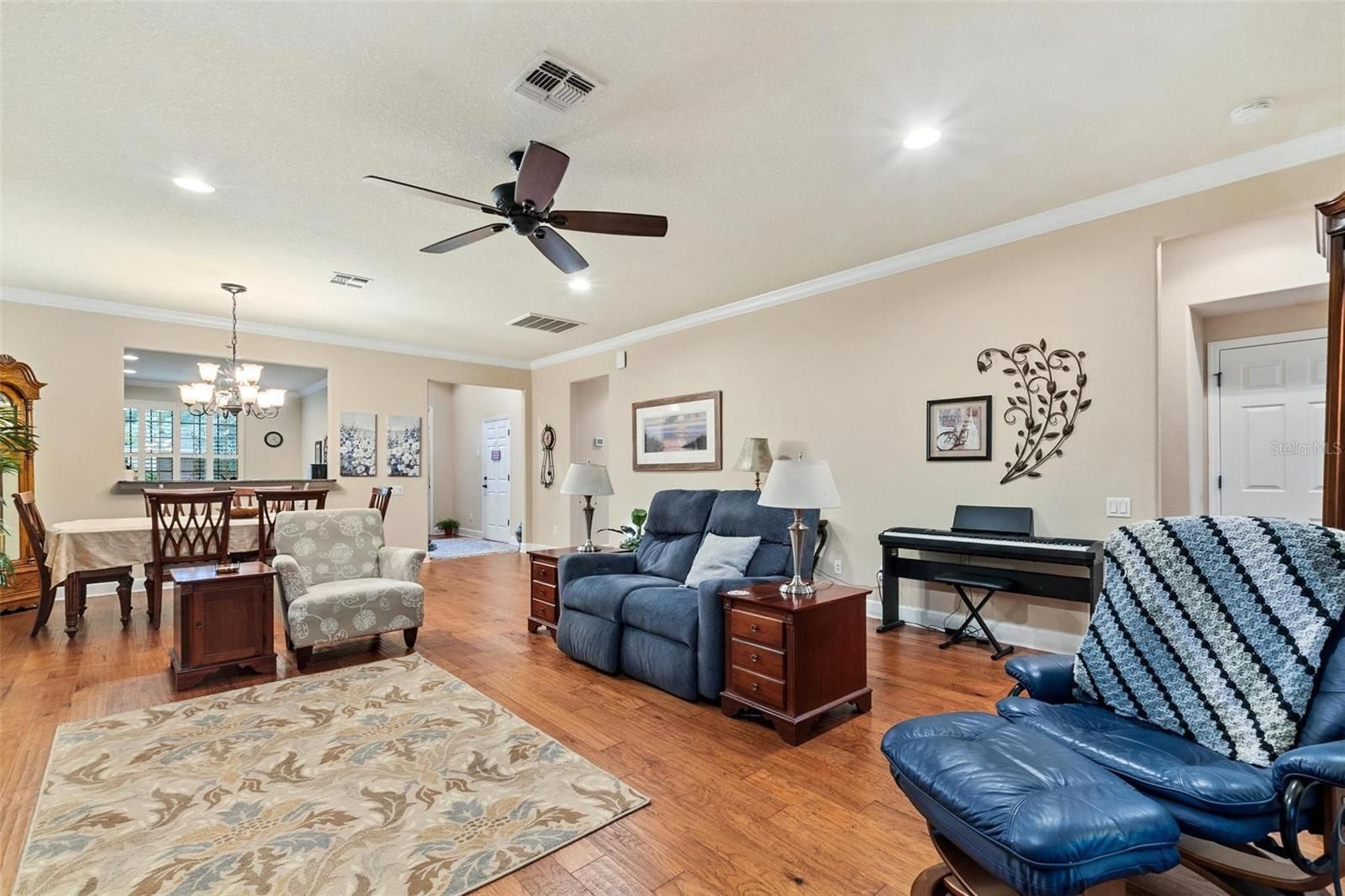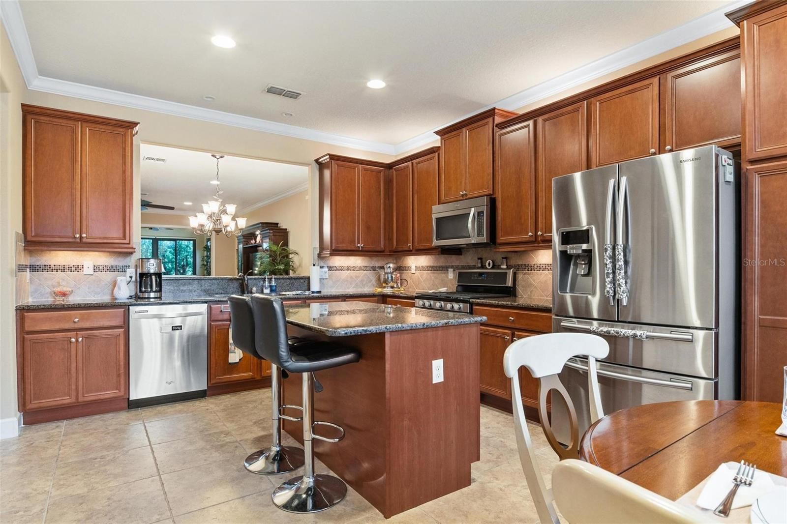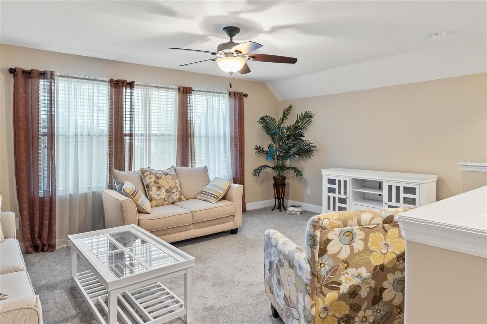 Multiple Price Drops...Welcome to 507 Cadiz Dr. nestled in the 24-hr guard-gated Del Webb Orlando 55+ neighborhood in the picturesque city of Davenport, FL. This spacious home boasts a well-designed floor plan spanning across a total 2,616 square feet. Upon entering, you'll be greeted by a welcoming foyer that leads you into the heart of the home, where beautiful wood floors and a warm ambiance await. The living room is an inviting space, perfect for relaxation or entertaining guests. With its elegant design and cozy atmosphere, it sets the stage for memorable moments with loved ones. The kitchen showcases modern stainless appliances with a gas stove, overhead and under cabinet lighting, ample cabinet space, 1-1/4" granite countertops and a convenient breakfast bar. Whether you're preparing a gourmet feast or whipping up a quick meal, this well-appointed kitchen is sure to inspire your inner chef. The master suite is a true retreat featuring a generously sized bedroom, a walk-in closet, and an en-suite bathroom with walk-in shower and dual sinks. The additional bedrooms, den/office/bedroom, and bonus room are spacious and versatile, accommodating various needs and lifestyles. The backyard provides complete privacy with hedges lining the windows of the enclosed FL Room. Home is a true 1.5 story floor plan with a fourth bedroom and bonus room above. All upstairs furniture and FL room furniture will stay with the home. Conveniently located, provides easy access to a range of both community center and area amenities. Inside, the community offers bocce ball, tennis, pickleball, dog park, fitness center, indoor lap pool, outdoor pool and spa, fire pit, arts and crafts room and tavern!! There are too many clubs to mention as well!! Enjoy proximity to shopping centers, restaurants, Orlando theme parks, and entertainment options, ensuring you have everything you need within reach. Additionally, the home is situated in close proximity to I-4. Go West or East on I-4 to go directly to the beaches. Other improvements include; epoxy-coated garage floor (2022), HVAC & thermostat replaced (2022), under stair storage added in craft room (2016), lanai remodeled into a finished 4-seasons room (2015), garage extended 4-ft (2013), in-wall pest control system (2013), added additional cabinetry in kitchen bathroom and laundry room (2013). Paver driveway was widened 3-ft on each side. Soar panels were added in (2024) which led to huge monthly savings. Don't miss the opportunity to make this remarkable property your own. Schedule a showing today and experience the allure of 507 Cadiz Drive in person. This could be the home you've been waiting for – a place where comfort, style, and convenience intersect seamlessly.