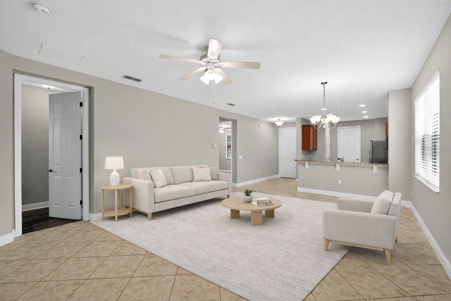 One or more photo(s) has been virtually staged. One or more photos have been virtually staged. Charming 2-bedroom, 2-bathroom single-family home located in the 55+ gated community of Solivita in Poinciana, FL. This well-maintained residence features an open floor plan that seamlessly connects the kitchen and living areas, creating a comfortable environment for both entertaining and everyday living. The kitchen includes stainless steel appliances, ample cabinet space, and a functional layout that blends convenience with style. The spacious primary suite offers a large walk-in closet and a private ensuite bathroom with a walk-in shower. Step outside to a generously sized backyard with a covered patio—perfect for relaxing mornings or evening get-togethers. Solivita is an award-winning active adult community offering an impressive range of amenities, including multiple pools, fitness centers, tennis, pickleball, and bocce courts, as well as a library and billiards room. Residents also enjoy a variety of clubs, social events, and scenic walking trails throughout the beautifully landscaped grounds. This home provides a great balance of comfort, community, and active-adult living.