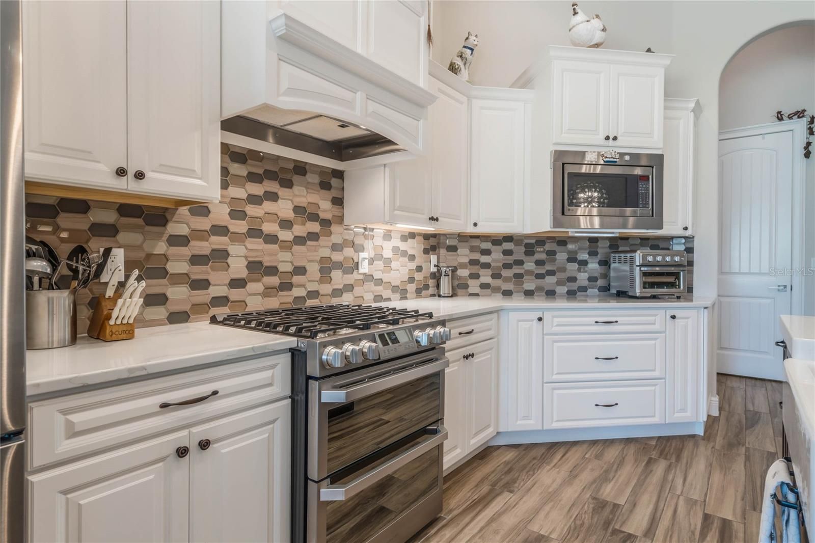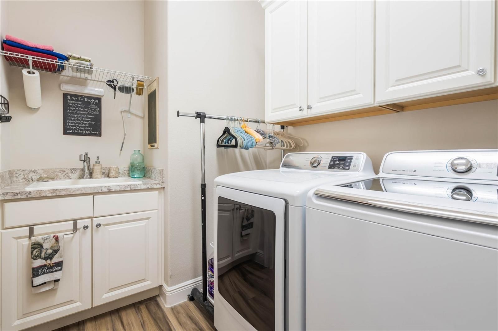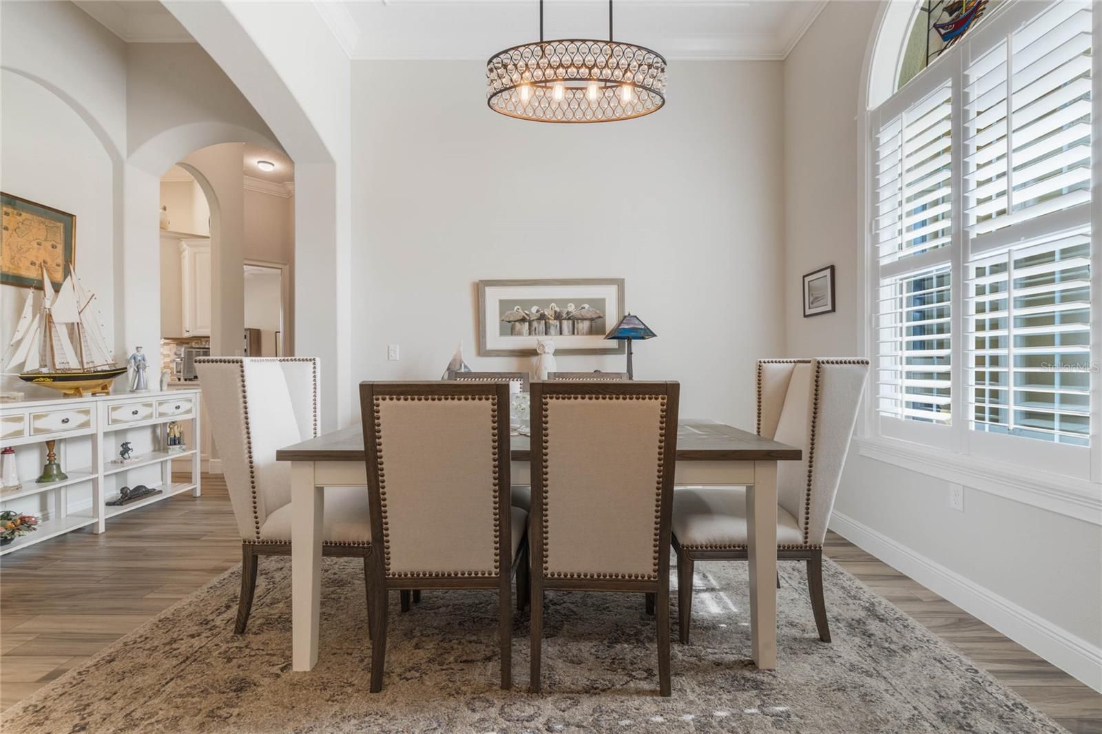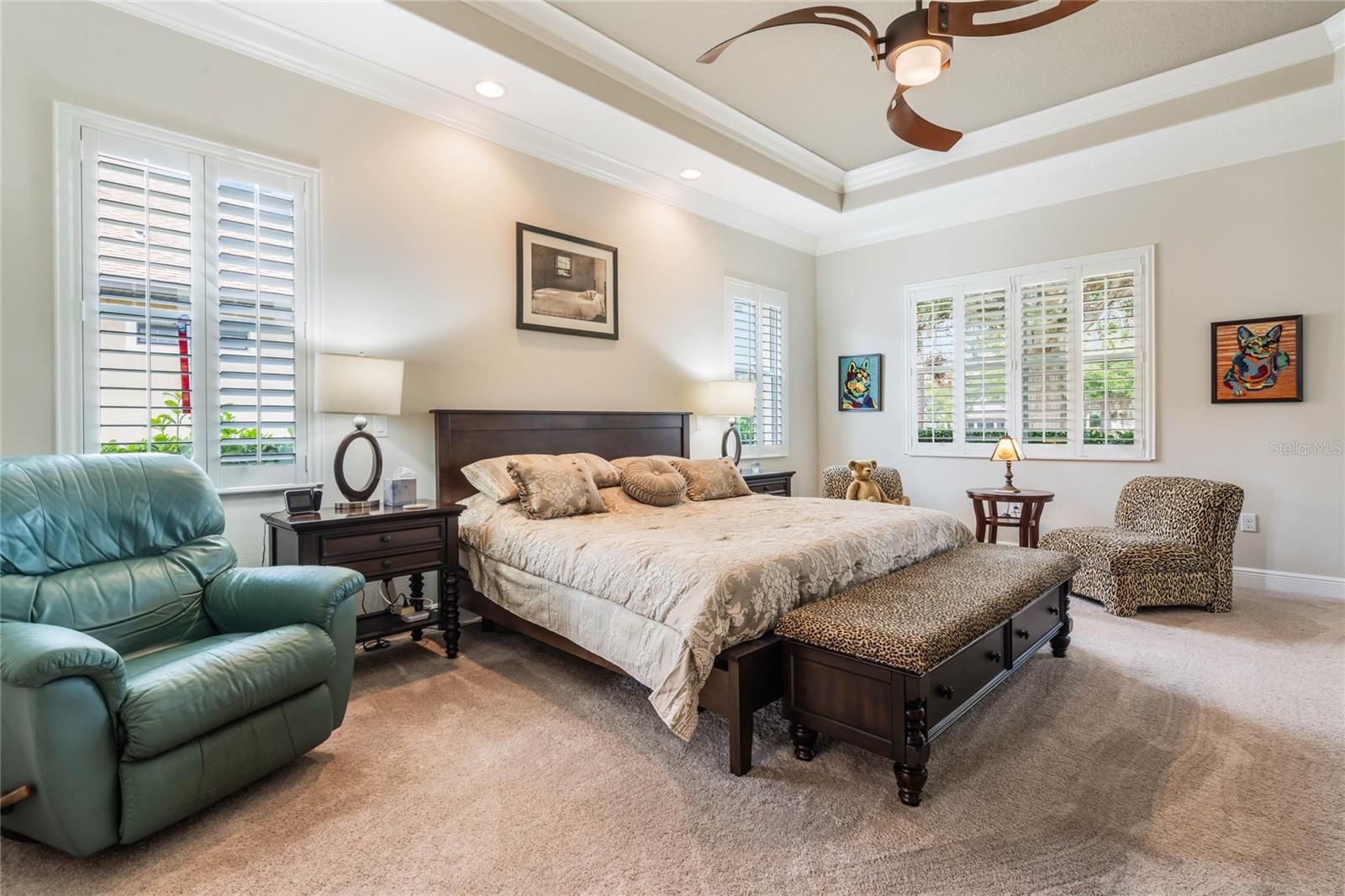 Elegant Golf Course Home with Exceptional Design and Serene Views. Nestled on a peaceful golf course homesite, this stunning 2,768-square-foot home offers a perfect combination of luxury, functionality, and tranquility. With 3 bedrooms, a den, 2.5 bathrooms, and a 3-car garage, this thoughtfully designed residence is ideal for those seeking a refined yet comfortable lifestyle. As you step inside, you’ll immediately notice the high tray ceilings adorned with crown molding and beautiful lighting that enhance the home’s sense of spaciousness and elegance. The open floor plan seamlessly connects the living room to the screened lanai through expansive sliding glass doors, creating an exceptional space for entertaining or simply enjoying the stunning golf course views and custom lighted waterfall. The gourmet kitchen is a true showstopper, featuring custom cabinetry, butcher block quartz, a deep farm sink, a large island, and a cozy breakfast nook illuminated by a mitered glass bay window that provides ample natural light and overlooks the third tee box. The master suite is a private retreat, complete with a luxurious bathroom that includes a wide shower, a soaking tub, and separate his-and-hers vanities. The Jack-and-Jill bathroom, shared by the secondary bedrooms provide private access, and features custom mirrors and glass shower doors that add a touch of sophistication. Unique architectural details, such as a lighted sink in the powder room and expansive walls perfect for displaying art, further elevate this home’s design. Step outside to the screened lanai, where a built-in outdoor kitchen awaits, making it the ideal space for al fresco dining or relaxing in the fresh air. The beautifully landscaped yard, highlighted by a romantic lighted waterfall, adds to the serene ambiance of this property. Plantation shutters and electric remote screens provide both style and functionality, while the automatic whole-house generator ensures peace of mind. Practicality meets elegance with ample storage throughout the home, including deep pull-out drawers, a walk-in pantry, and custom cabinetry. The spacious laundry room and separate utility room provide additional convenience and versatility. The 3-car garage is designed with modern needs in mind, featuring easily accessible electric charging outlets and plenty of room for vehicles and storage. Located in a quiet neighborhood that exudes beauty and serenity, this home is part of an active, sociable community that offers a perfect balance of tranquility and engagement. Every detail of this home has been meticulously crafted to provide a lifestyle of comfort, beauty, and sophistication. Schedule your private tour today and experience the exceptional charm of this remarkable golf course home.