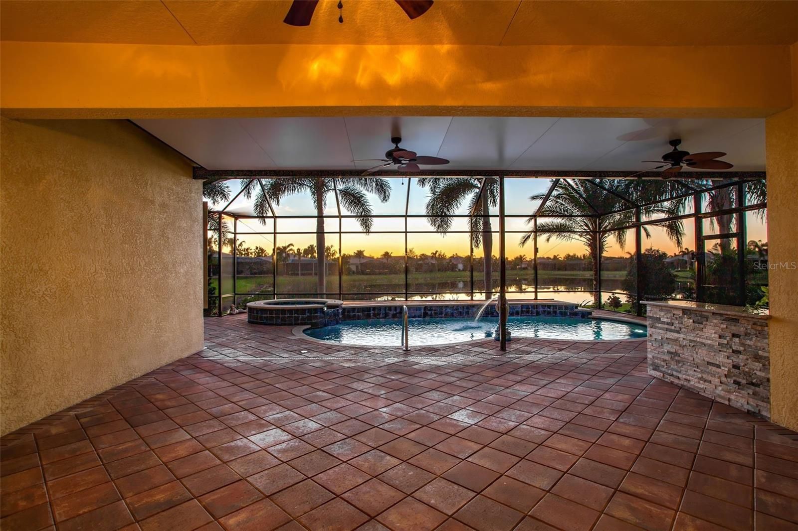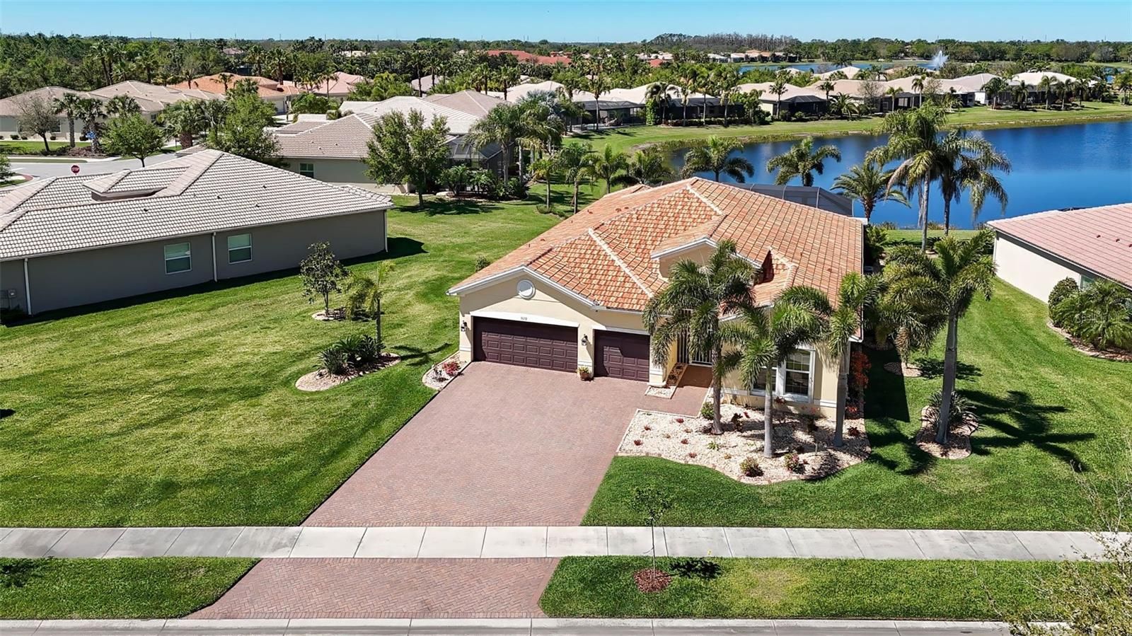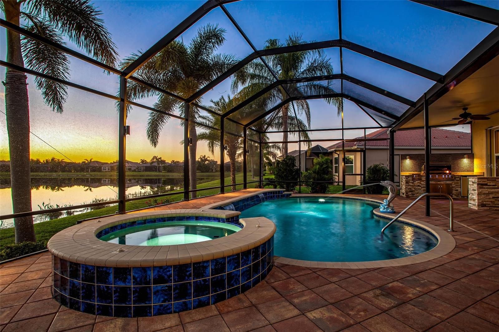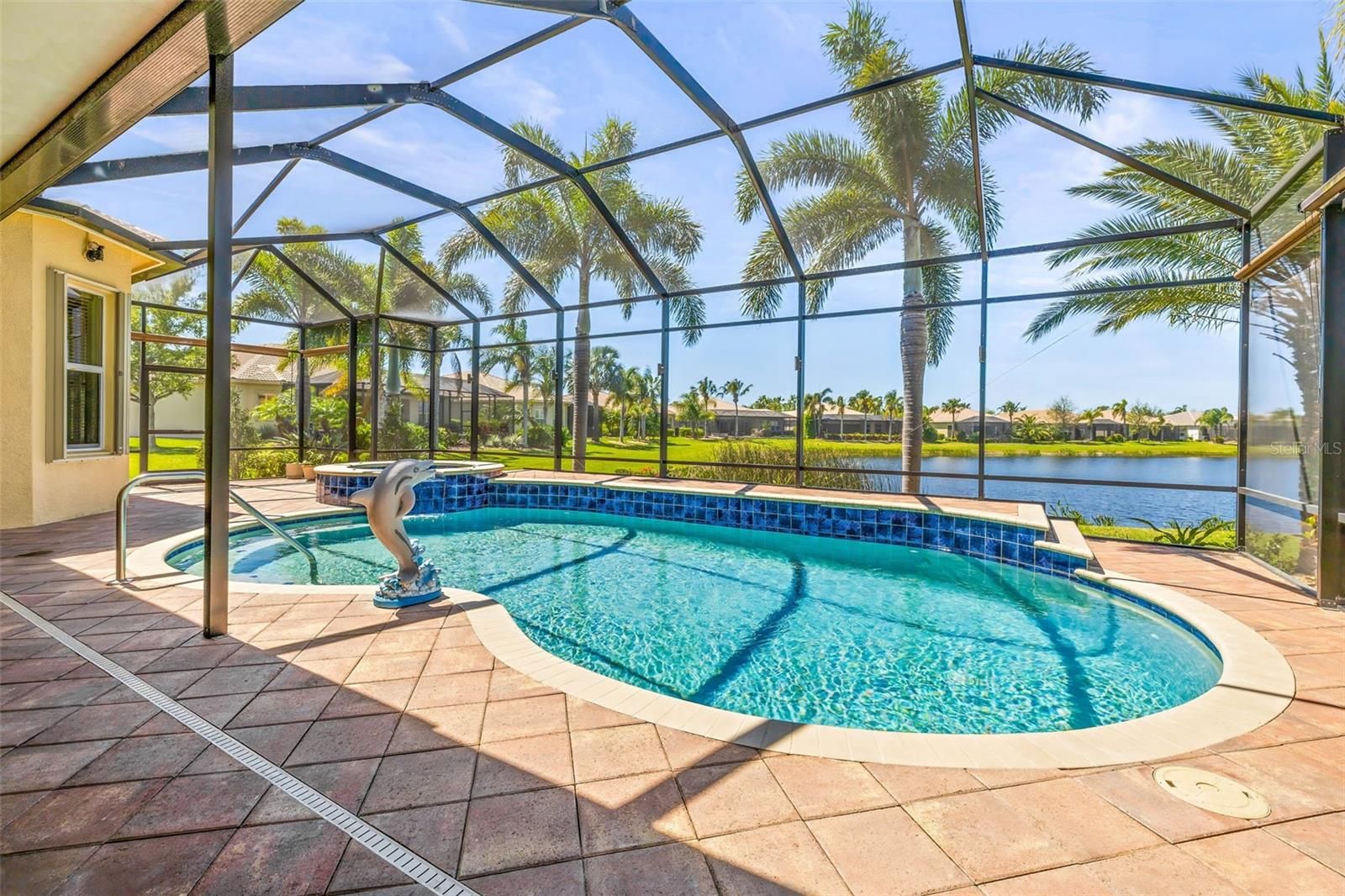 One or more photo(s) has been virtually staged. HUGE price reduction, don't miss out on this beautiful, spacious Vizcaya model home boasts over $200K in upgrades that enhance its elegant design. Situated on one of the largest lots in Valencia Lakes. As you step through the grand foyer, you'll immediately appreciate the custom woodwork, including crown molding, and the meticulously finished windows and sliding doors, which give this home a unique charm not found elsewhere. If the kitchen island or built in desks are not your cup of tea they can easily be removed. The chef’s kitchen offers abundant upgraded cabinet space and ample granite counter space, ideal for preparing meals or hosting gatherings. The highlight of the home is the outdoor living space. The pool area features an outdoor kitchen, providing ample space for lounging while taking in the tranquil view of the pond and listening to the soothing sound of the fountain. On cooler days, relax in the hot tub, making this backyard an ideal retreat year-round. This home is equipped with a range of top-tier features, such as an AC system with humidity control, a whole-house purifier, heat lamps in the bathroom, an insulated garage door, and upgraded garage storage. It also has added speaker wires on the lanai, is wired for cameras around the perimeter, and includes pool lighting, a waterfall, and a fountain. For peace of mind, the home is fitted with accordion hurricane shutters and outdoor security lights. In addition, there is a whole-house intercom system and easy-open self-driving sliding doors to the pool are added conveniences. Recent upgrades include a new water heater, pool filter, salt cartridge, air handler, and water softener, making this home an impressive blend of style, comfort, and functionality. Don't miss the chance to see this meticulously upgraded home today – it’s sure to impress! Start living the dream today in the Valencia Lakes community with amazing amenities like a 40,000 sq.foot clubhouse, 24-hour fitness center, fitness classes, clubs, events and concerts in the large social hall, game rooms, sauna/spa pools, softball field, RV/Boat storage, tennis, pickleball courts, community garden and much more. There is a fantastic clubhouse, pools, and social activities. Close to Sarasota, St. Petersburg, and Tampa, featuring professional sporting events, the arts, and America's Award-Winning Beaches. The Magic of Orlando is only 88 miles away. Now is the Best Time to buy in Tampa Bay, Florida. Live where others dream to vacation.
