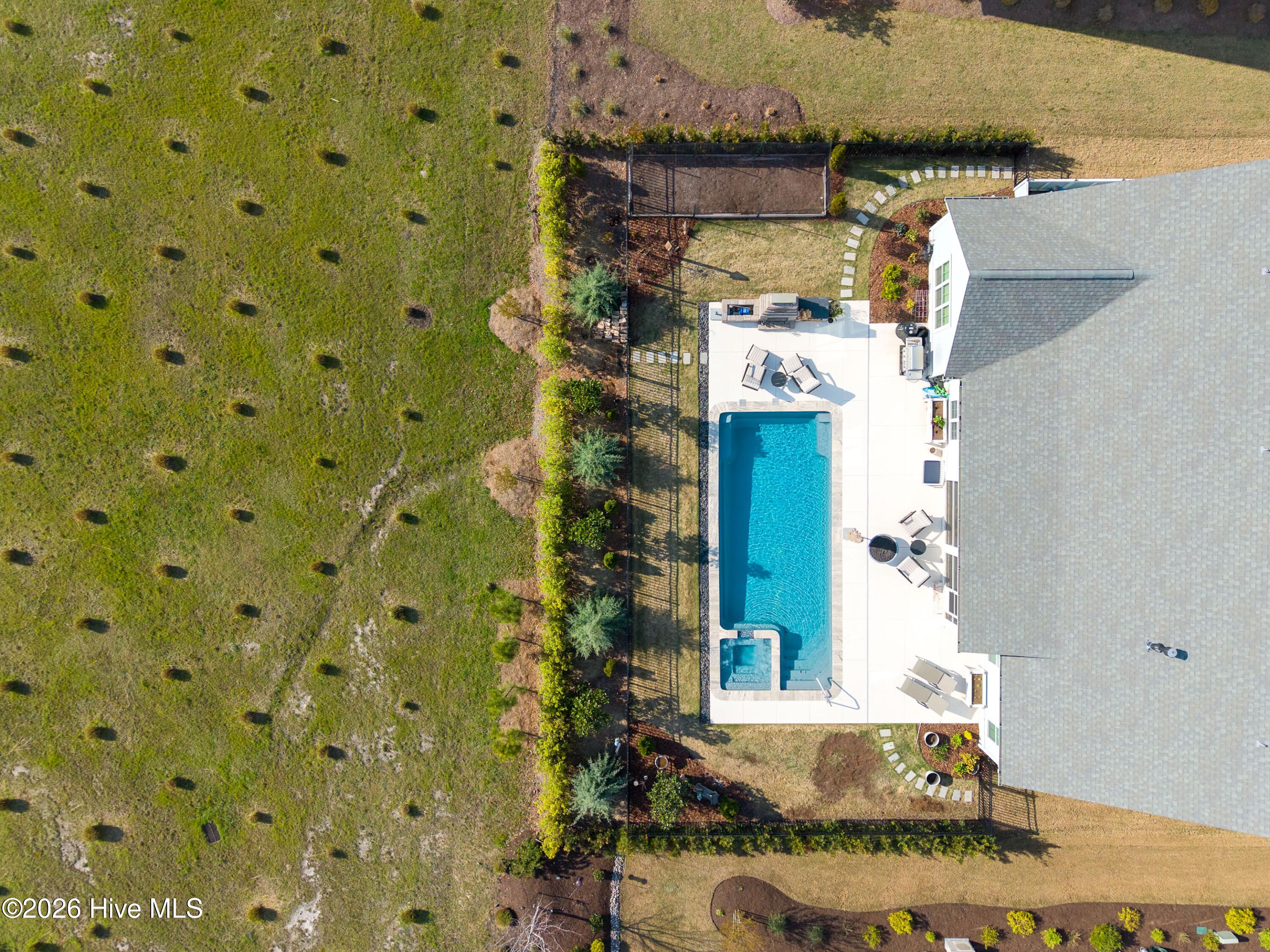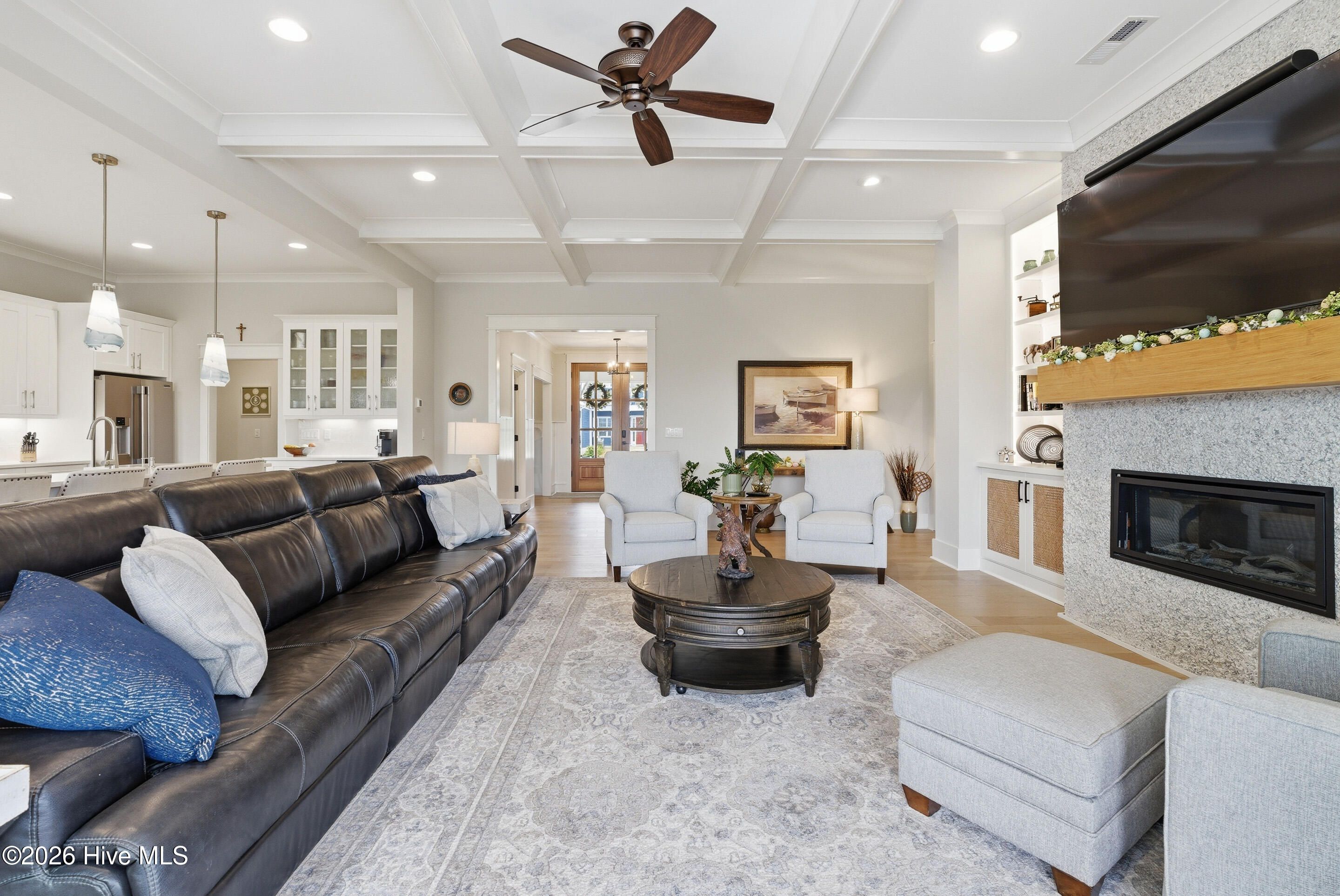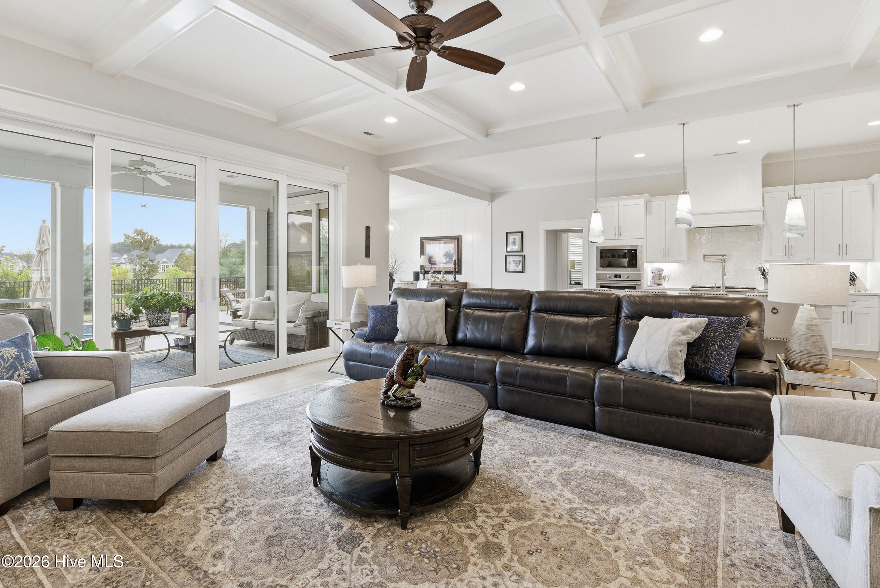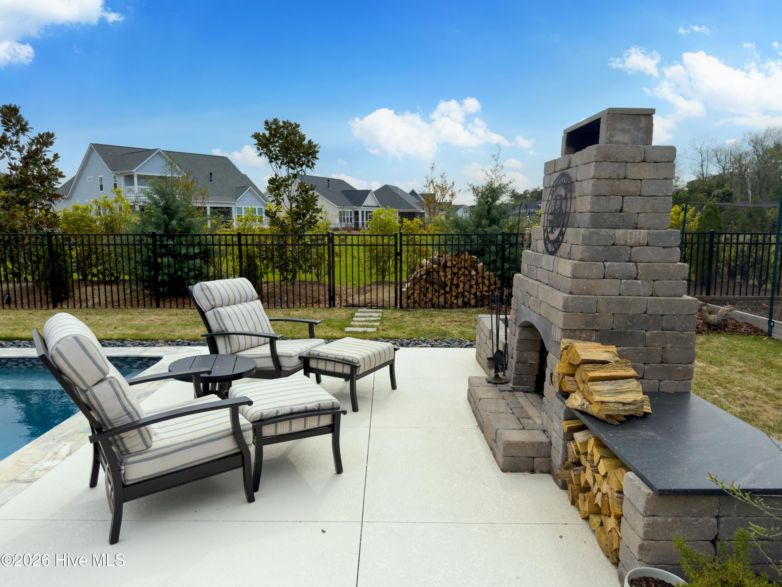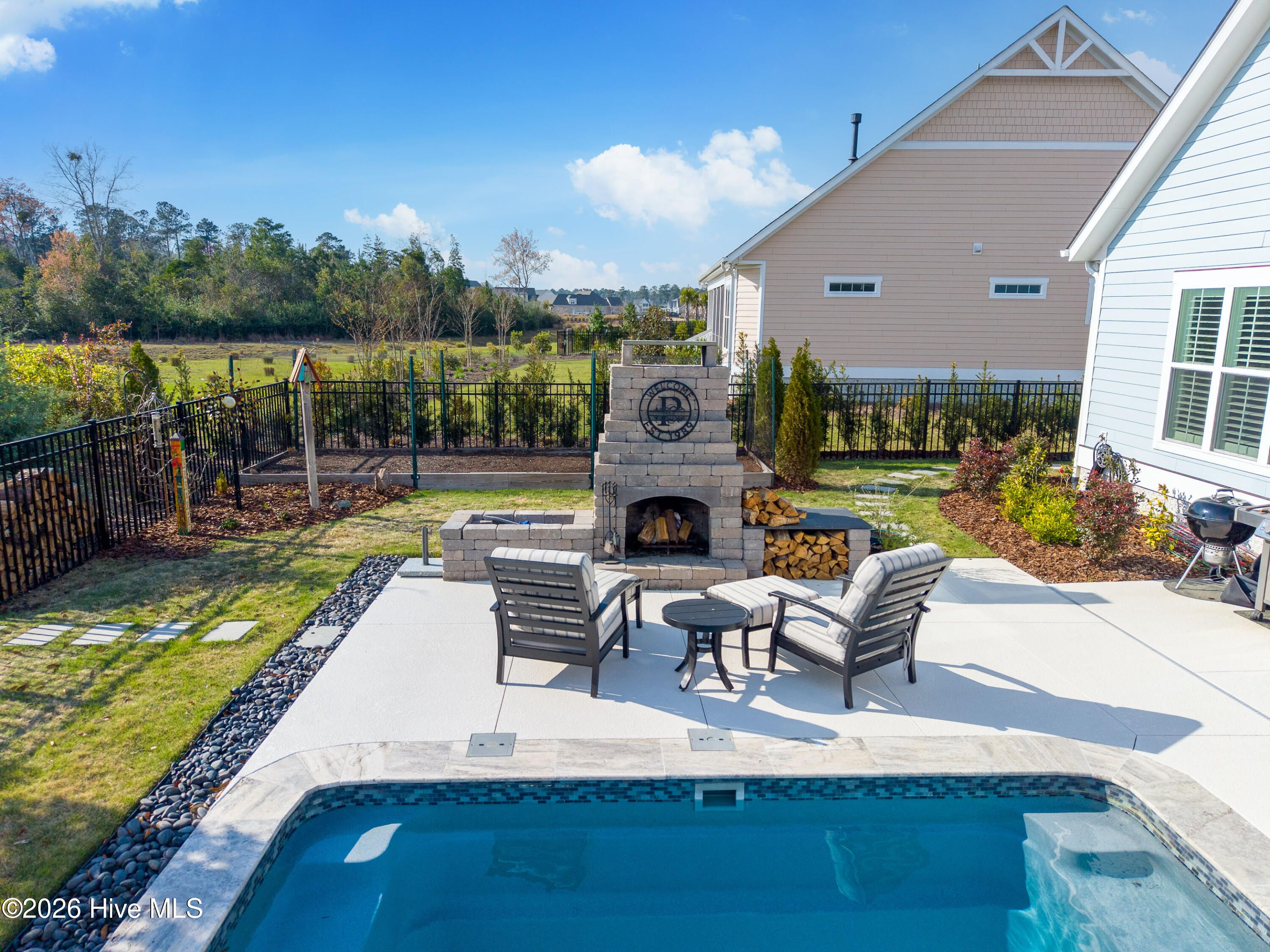 Located within the prestigious Cape Fear National community of Brunswick Forest, this exceptional Legacy Homes residence--The Montgomery--offers a refined blend of timeless design, elevated finishes, and resort-style outdoor living. Featuring 4 bedrooms, 4.5 baths, and 3,478 square feet, the thoughtfully designed floor plan also includes a spacious second-floor bonus suite with full bath. The home's striking curb appeal is defined by a tabby coat foundation, metal accent roofing, and an expansive front porch with ashlar slate-stamped concrete--setting the tone for the craftsmanship found throughout. Inside, a grand foyer is flanked by a formal dining room with coffered ceiling and a private study, leading into an impressive great room with custom built-ins, a coffered ceiling, and 8-foot center-meet sliders that seamlessly connect indoor and outdoor living. The designer kitchen is both sophisticated and functional, featuring a large island, custom cabinet hood, white cabinetry, quartz countertops, a white glazed tile backsplash, farm sink, pot filler, double ovens, and wine cooler--perfectly suited for both everyday living and entertaining. The main-level owner's suite is a private retreat, offering dual custom walk-in closets--one with direct access to the laundry room--and a spa-inspired bath with freestanding soaking tub, expansive tiled shower, and dual quartz vanities. Outdoor living has been elevated to a true resort-style experience. The screened-in porch and patio open to a beautifully curated backyard featuring a heated saltwater pool & hot tub, gas firepit, outdoor fireplace, fencing, and professional landscaping--creating a private oasis designed for year-round enjoyment. Additional enhancements include whole-house water filtration, upgraded lighting and fixtures, custom laundry room cabinetry with sink, and plantation shutters throughout. Offering a seamless blend of luxury, comfort, and lifestyle, this exceptional home presents a rare opportunity within one of the area's premier golf course communities.