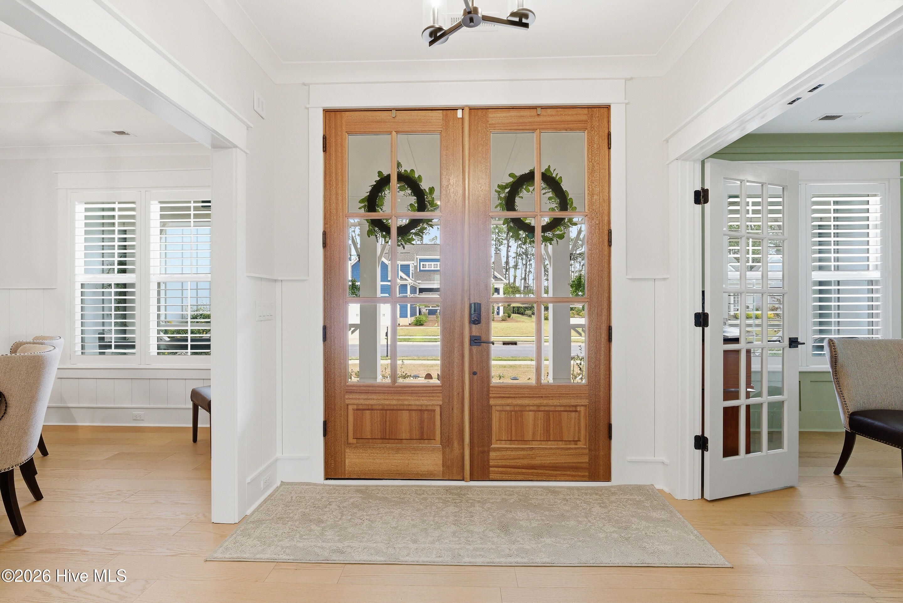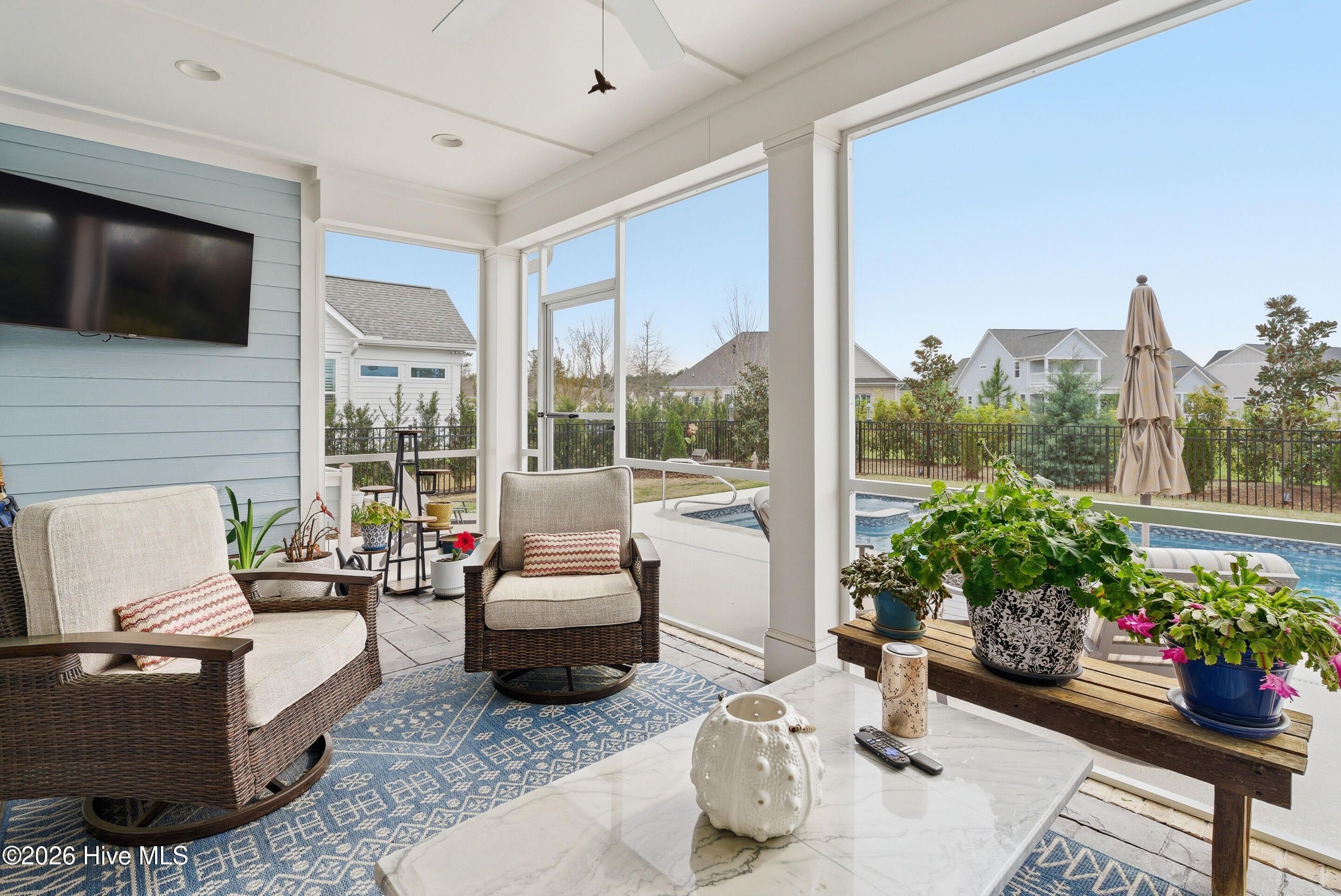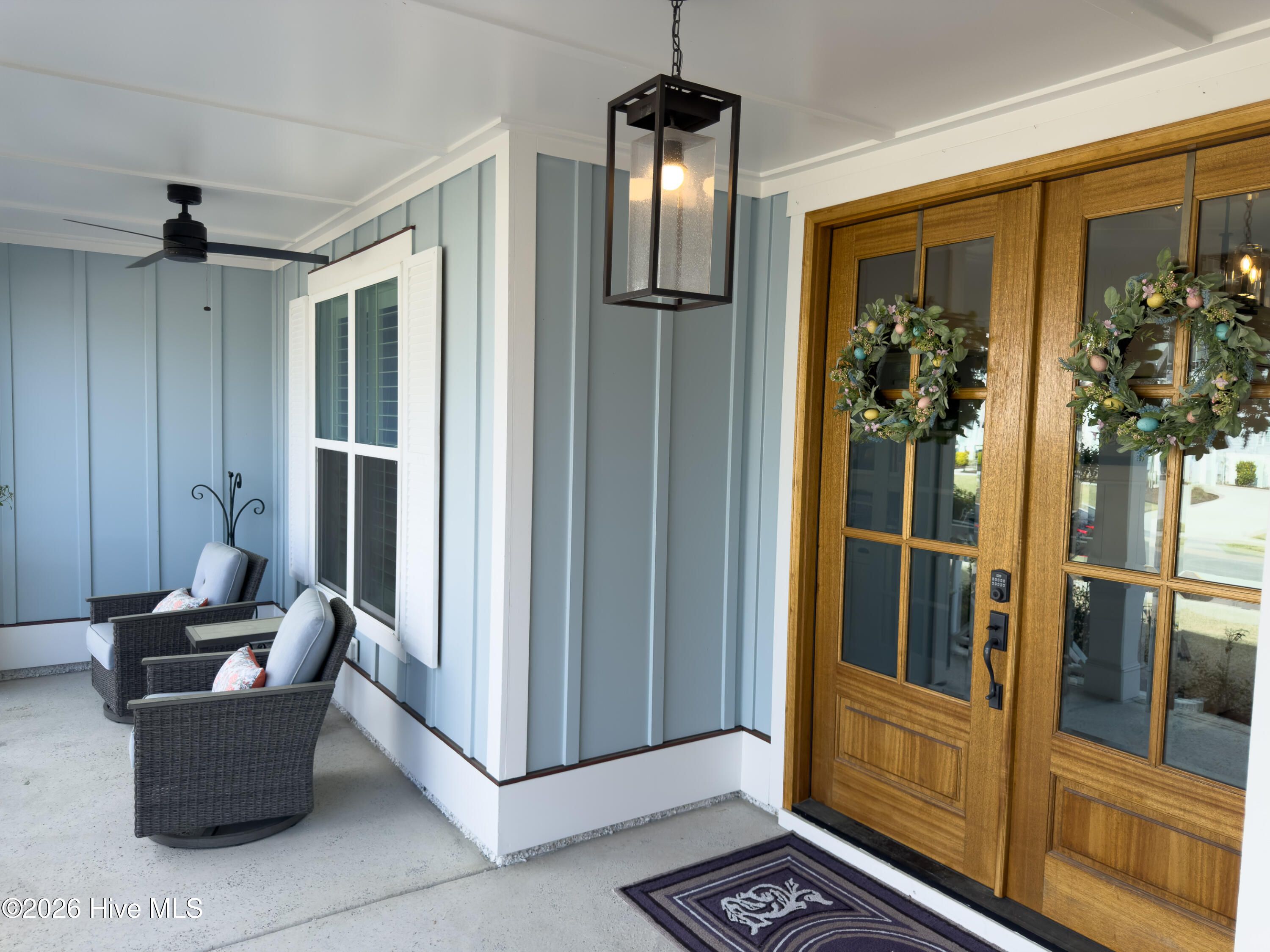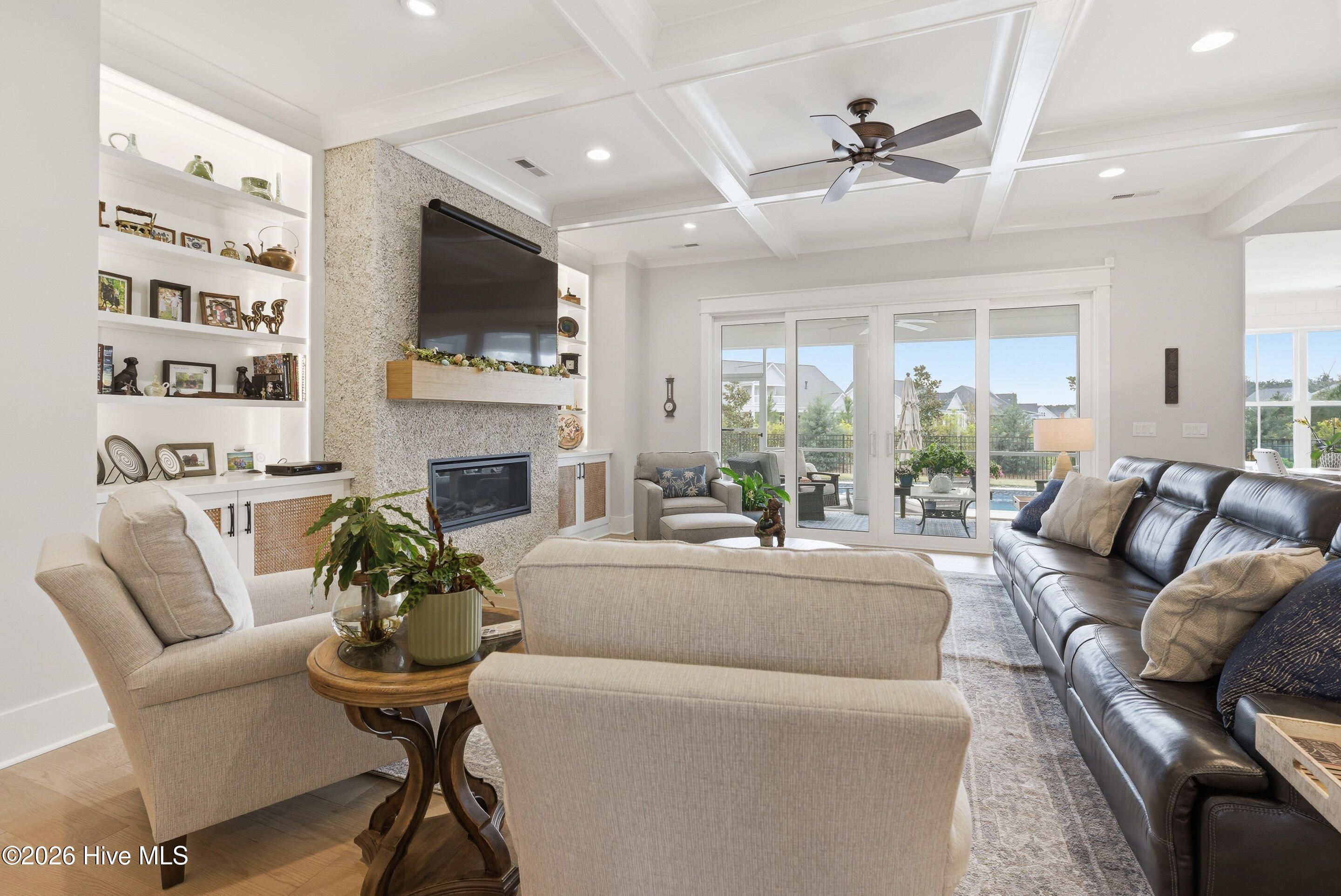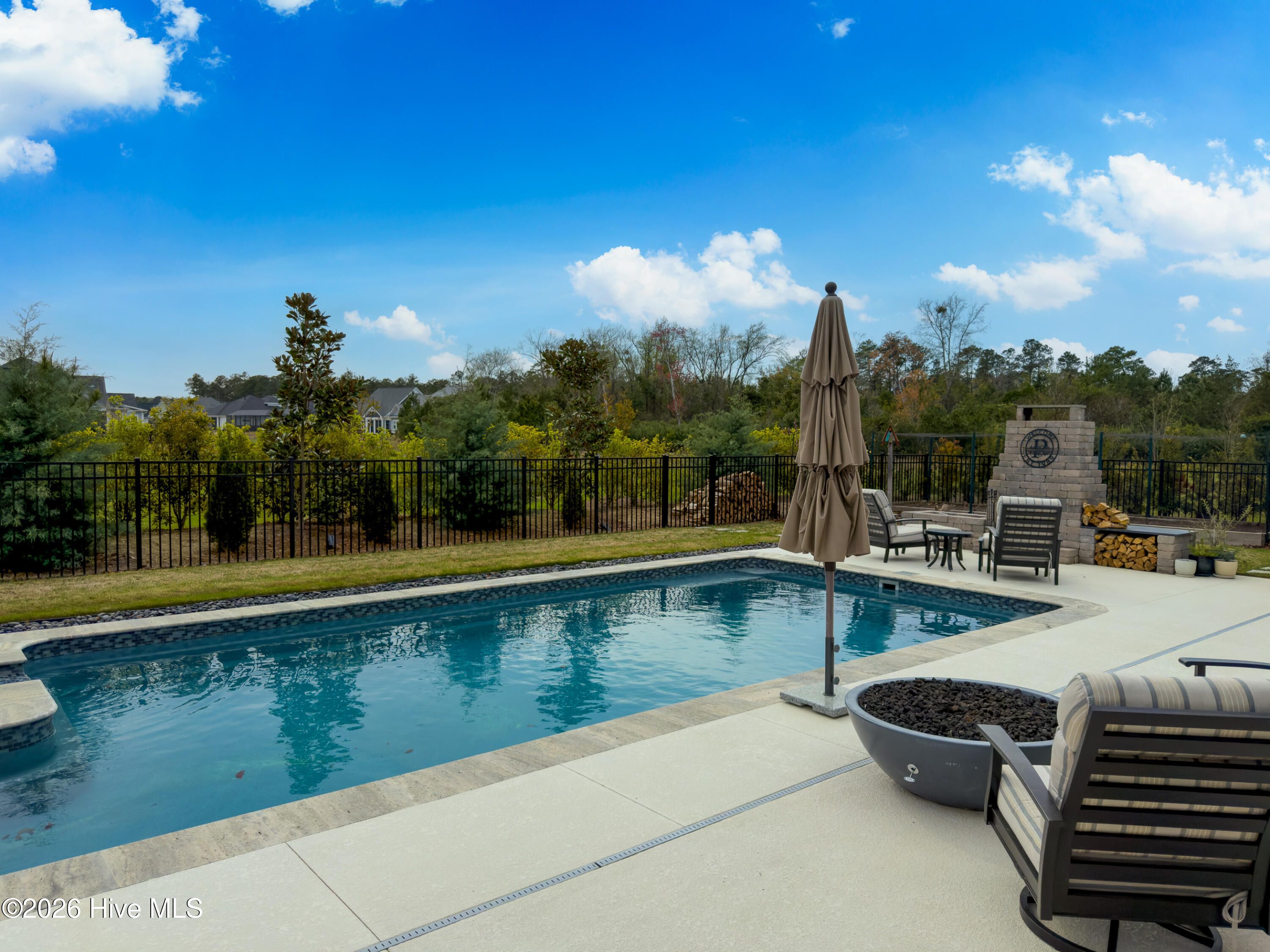 Located within the prestigious Cape Fear National community of Brunswick Forest, this exceptional Legacy Homes residence--The Montgomery--offers a refined blend of timeless design, elevated finishes, and resort-style outdoor living. Featuring 4 bedrooms, 4.5 baths, and 3,478 square feet, the thoughtfully designed floor plan also includes a spacious second-floor bonus suite with full bath. The home's striking curb appeal is defined by a tabby coat foundation, metal accent roofing, and an expansive front porch with ashlar slate-stamped concrete--setting the tone for the craftsmanship found throughout. Inside, a grand foyer is flanked by a formal dining room with coffered ceiling and a private study, leading into an impressive great room with custom built-ins, a coffered ceiling, and 8-foot center-meet sliders that seamlessly connect indoor and outdoor living. The designer kitchen is both sophisticated and functional, featuring a large island, custom cabinet hood, white cabinetry, quartz countertops, a white glazed tile backsplash, farm sink, pot filler, double ovens, and wine cooler--perfectly suited for both everyday living and entertaining. The main-level owner's suite is a private retreat, offering dual custom walk-in closets--one with direct access to the laundry room--and a spa-inspired bath with freestanding soaking tub, expansive tiled shower, and dual quartz vanities. Outdoor living has been elevated to a true resort-style experience. The screened-in porch and patio open to a beautifully curated backyard featuring a heated saltwater pool & hot tub, gas firepit, outdoor fireplace, fencing, and professional landscaping--creating a private oasis designed for year-round enjoyment. Additional enhancements include whole-house water filtration, upgraded lighting and fixtures, custom laundry room cabinetry with sink, and plantation shutters throughout. Offering a seamless blend of luxury, comfort, and lifestyle, this exceptional home presents a rare opportunity within one of the area's premier golf course communities.