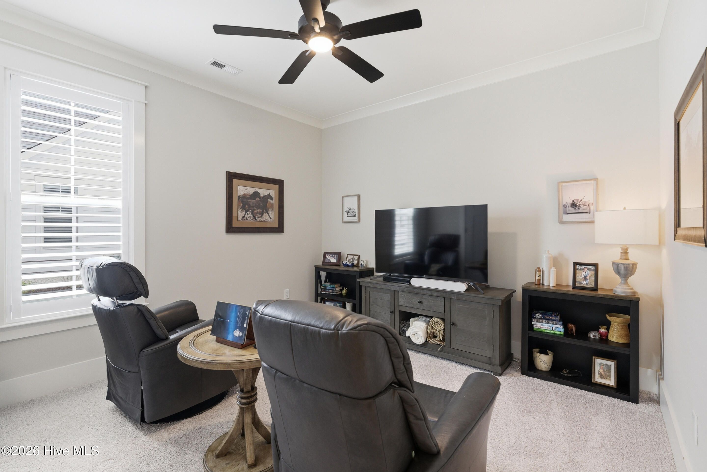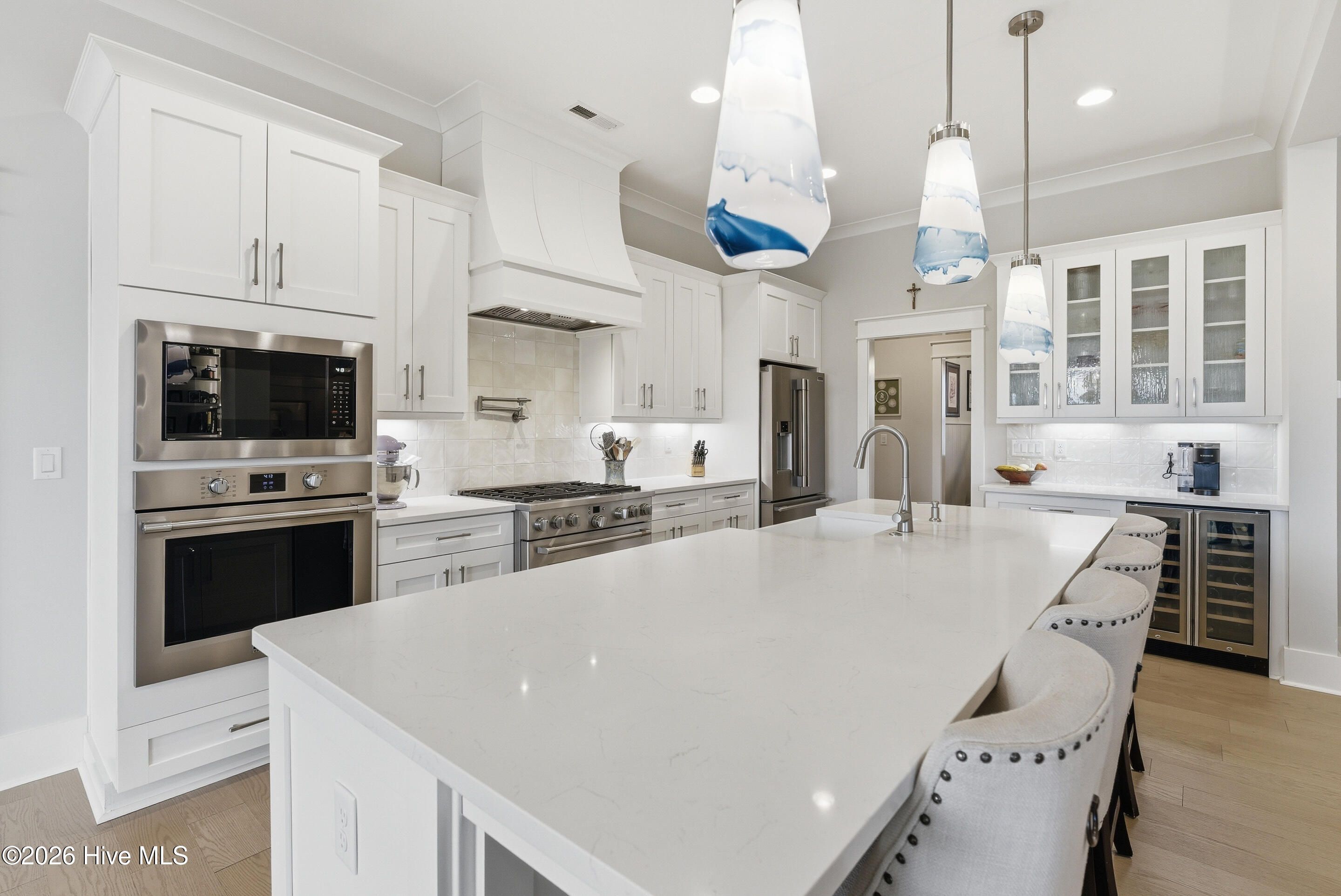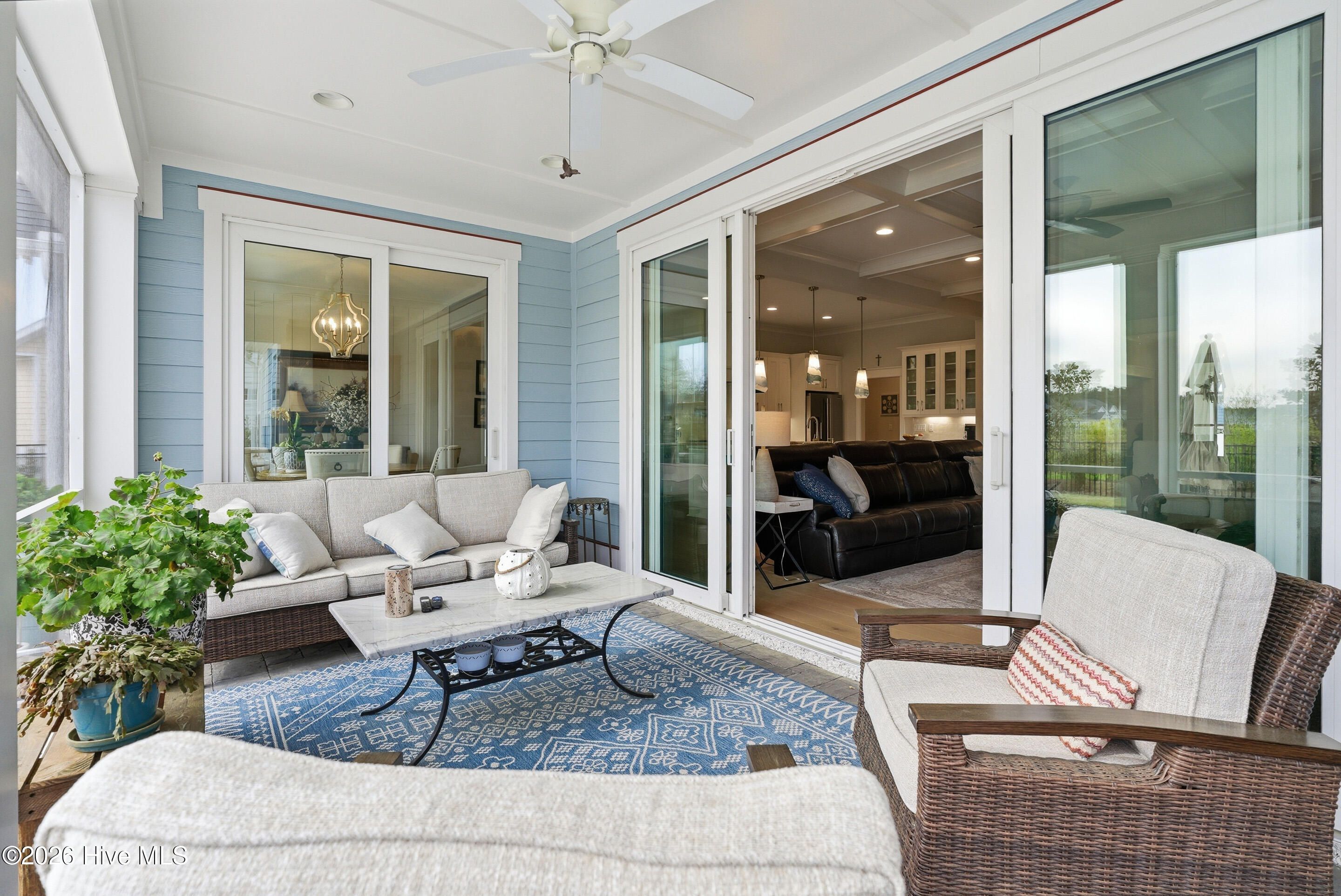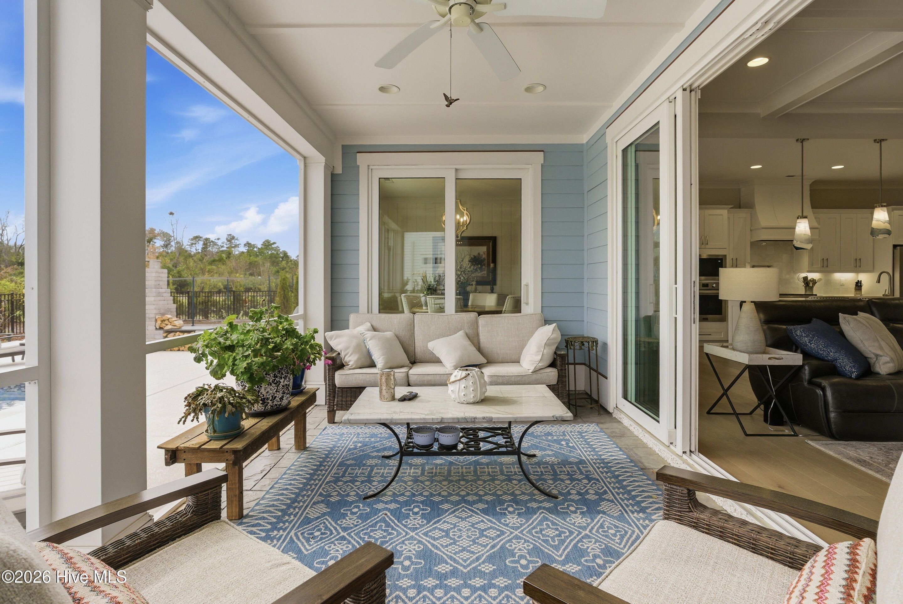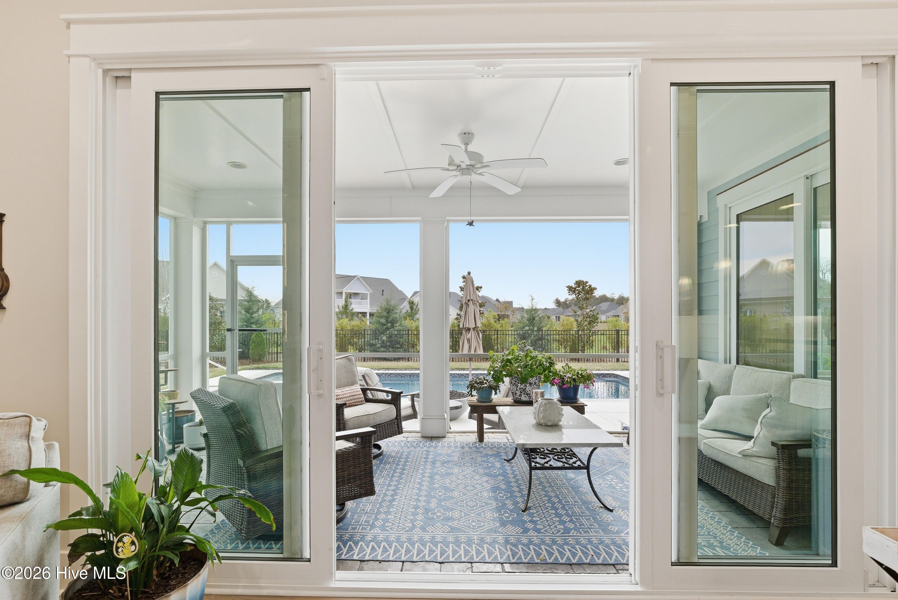 Located within the prestigious Cape Fear National community of Brunswick Forest, this exceptional Legacy Homes residence--The Montgomery--offers a refined blend of timeless design, elevated finishes, and resort-style outdoor living. Featuring 4 bedrooms, 4.5 baths, and 3,478 square feet, the thoughtfully designed floor plan also includes a spacious second-floor bonus suite with full bath. The home's striking curb appeal is defined by a tabby coat foundation, metal accent roofing, and an expansive front porch with ashlar slate-stamped concrete--setting the tone for the craftsmanship found throughout. Inside, a grand foyer is flanked by a formal dining room with coffered ceiling and a private study, leading into an impressive great room with custom built-ins, a coffered ceiling, and 8-foot center-meet sliders that seamlessly connect indoor and outdoor living. The designer kitchen is both sophisticated and functional, featuring a large island, custom cabinet hood, white cabinetry, quartz countertops, a white glazed tile backsplash, farm sink, pot filler, double ovens, and wine cooler--perfectly suited for both everyday living and entertaining. The main-level owner's suite is a private retreat, offering dual custom walk-in closets--one with direct access to the laundry room--and a spa-inspired bath with freestanding soaking tub, expansive tiled shower, and dual quartz vanities. Outdoor living has been elevated to a true resort-style experience. The screened-in porch and patio open to a beautifully curated backyard featuring a heated saltwater pool & hot tub, gas firepit, outdoor fireplace, fencing, and professional landscaping--creating a private oasis designed for year-round enjoyment. Additional enhancements include whole-house water filtration, upgraded lighting and fixtures, custom laundry room cabinetry with sink, and plantation shutters throughout. Offering a seamless blend of luxury, comfort, and lifestyle, this exceptional home presents a rare opportunity within one of the area's premier golf course communities.