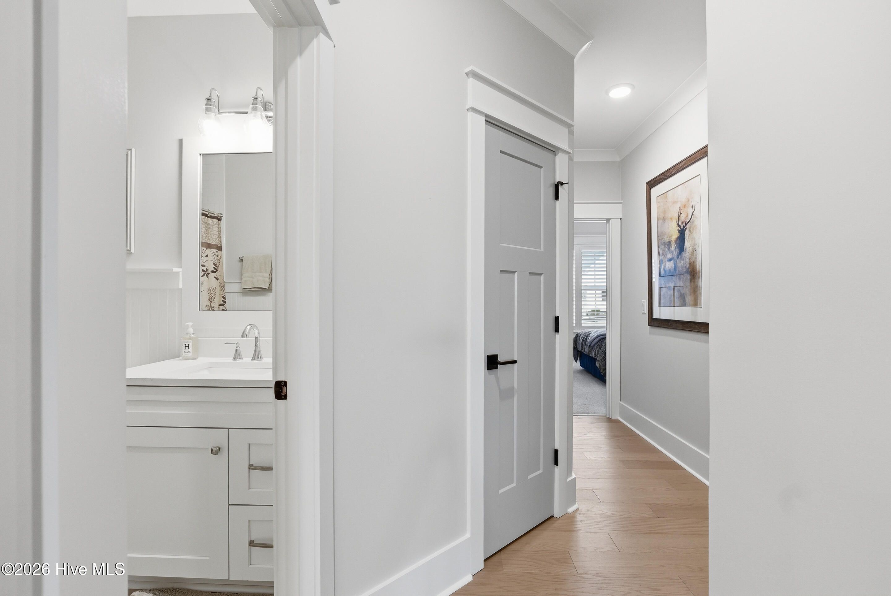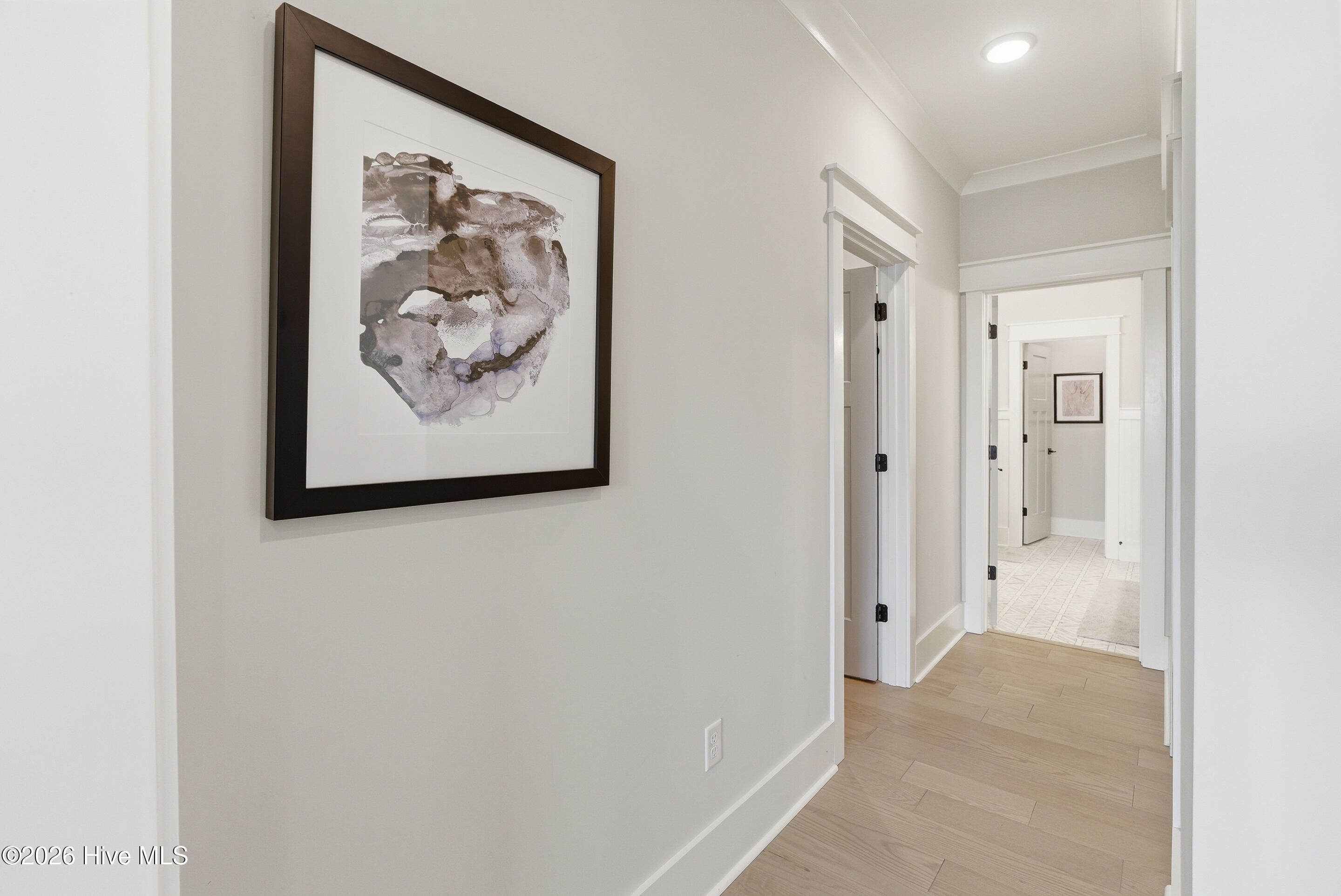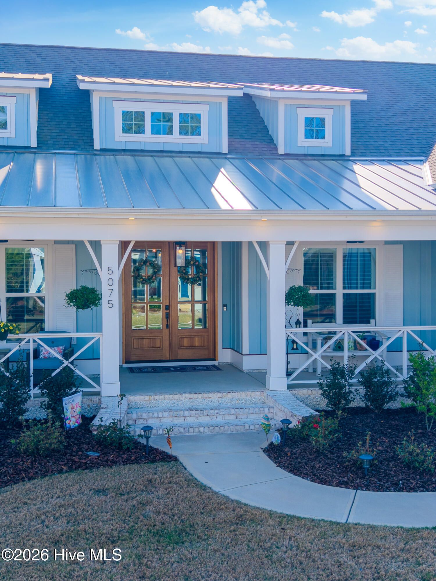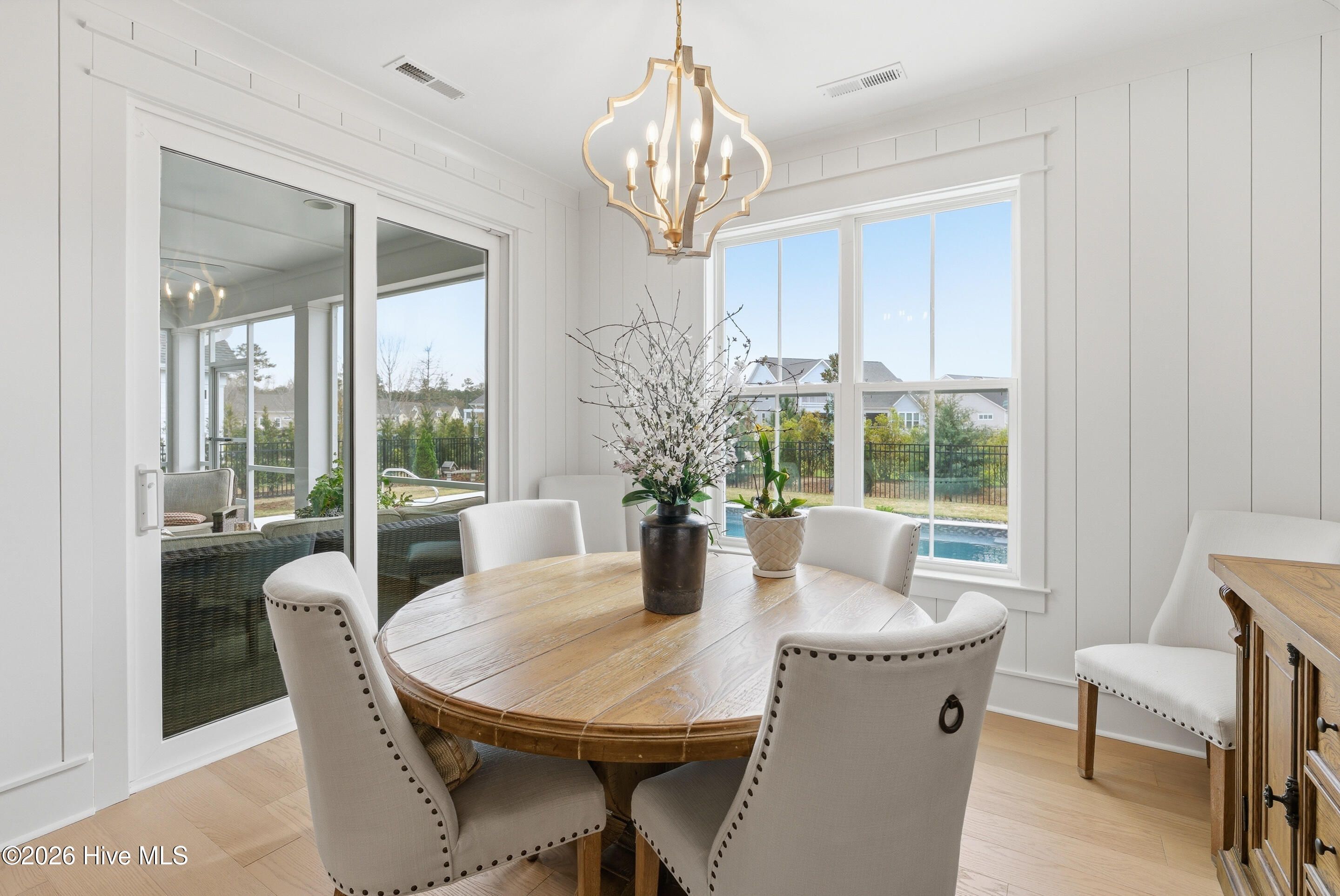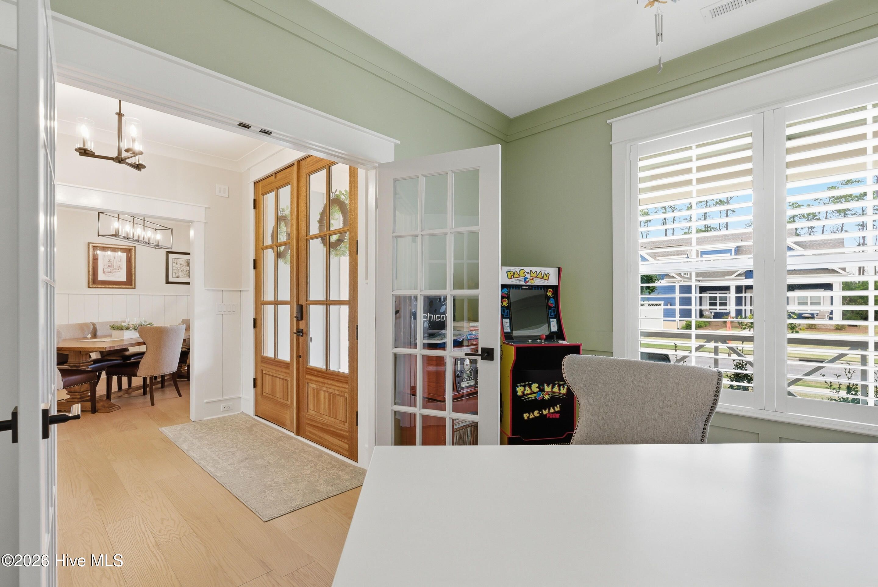 Located within the prestigious Cape Fear National community of Brunswick Forest, this exceptional Legacy Homes residence--The Montgomery--offers a refined blend of timeless design, elevated finishes, and resort-style outdoor living. Featuring 4 bedrooms, 4.5 baths, and 3,478 square feet, the thoughtfully designed floor plan also includes a spacious second-floor bonus suite with full bath. The home's striking curb appeal is defined by a tabby coat foundation, metal accent roofing, and an expansive front porch with ashlar slate-stamped concrete--setting the tone for the craftsmanship found throughout. Inside, a grand foyer is flanked by a formal dining room with coffered ceiling and a private study, leading into an impressive great room with custom built-ins, a coffered ceiling, and 8-foot center-meet sliders that seamlessly connect indoor and outdoor living. The designer kitchen is both sophisticated and functional, featuring a large island, custom cabinet hood, white cabinetry, quartz countertops, a white glazed tile backsplash, farm sink, pot filler, double ovens, and wine cooler--perfectly suited for both everyday living and entertaining. The main-level owner's suite is a private retreat, offering dual custom walk-in closets--one with direct access to the laundry room--and a spa-inspired bath with freestanding soaking tub, expansive tiled shower, and dual quartz vanities. Outdoor living has been elevated to a true resort-style experience. The screened-in porch and patio open to a beautifully curated backyard featuring a heated saltwater pool & hot tub, gas firepit, outdoor fireplace, fencing, and professional landscaping--creating a private oasis designed for year-round enjoyment. Additional enhancements include whole-house water filtration, upgraded lighting and fixtures, custom laundry room cabinetry with sink, and plantation shutters throughout. Offering a seamless blend of luxury, comfort, and lifestyle, this exceptional home presents a rare opportunity within one of the area's premier golf course communities.