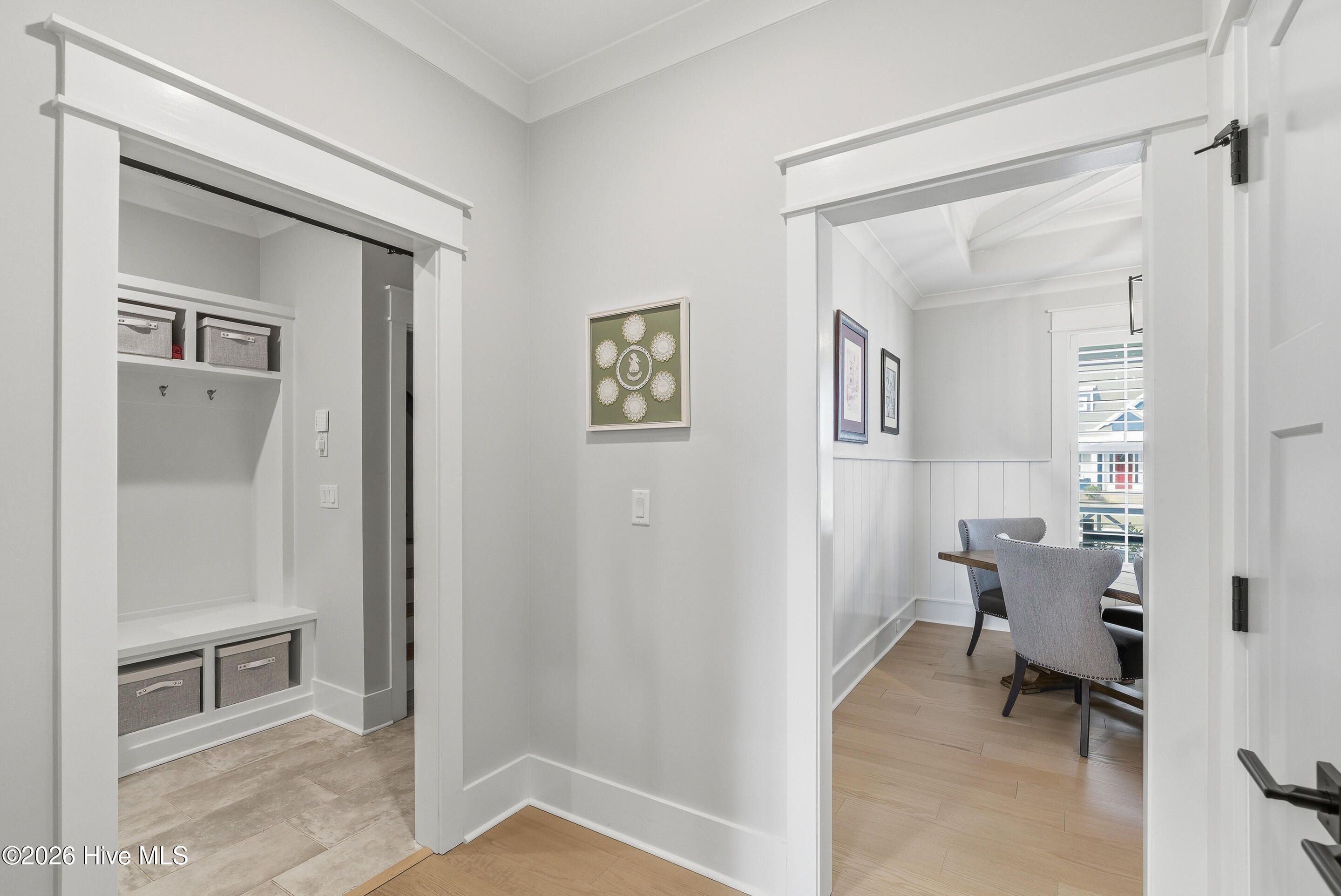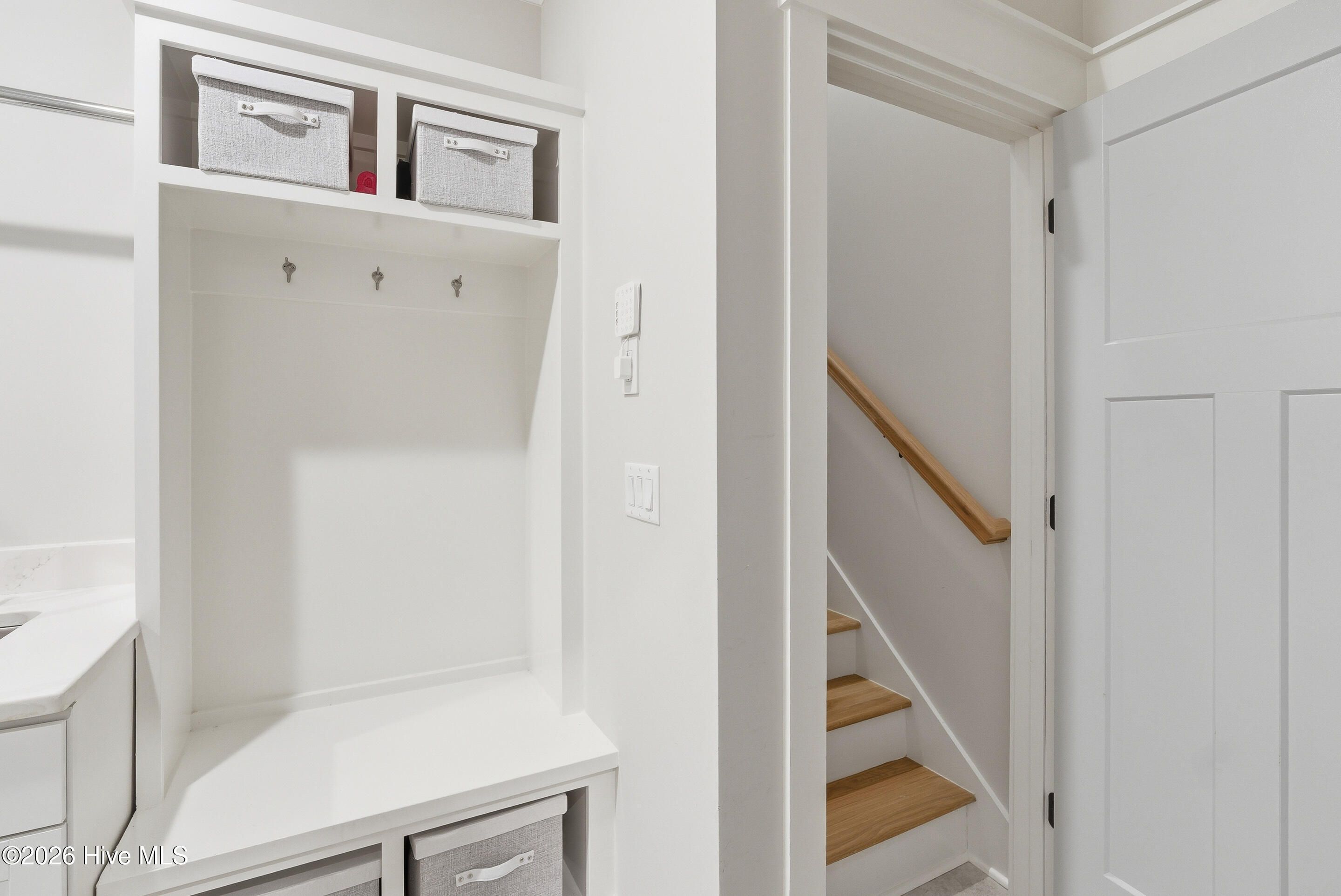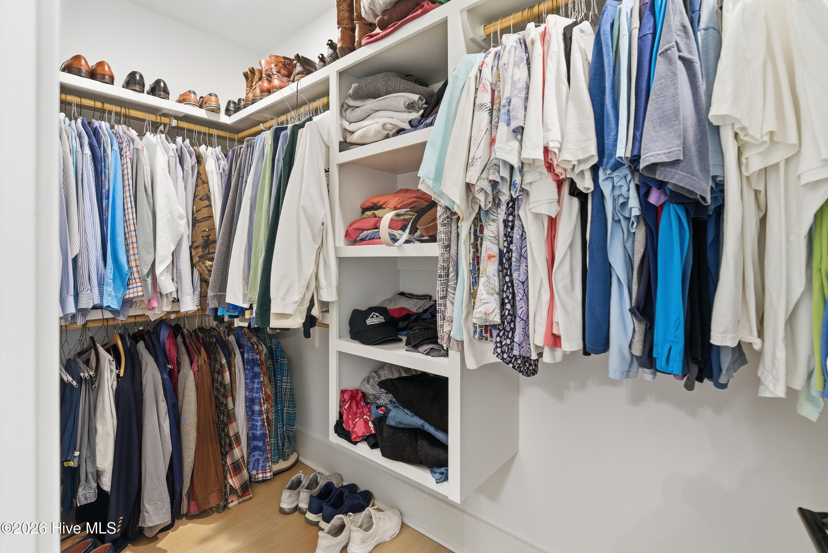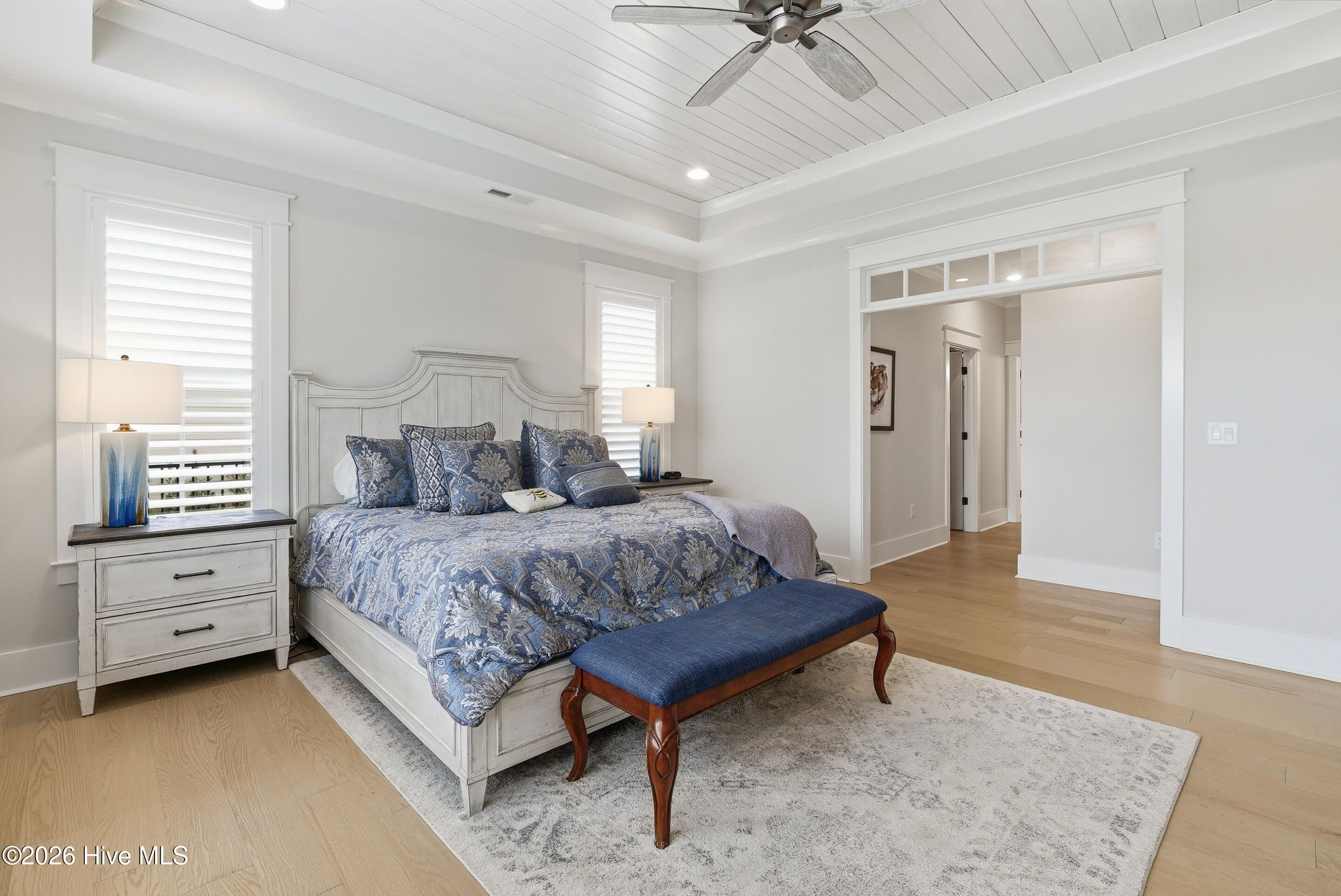 - Master Downstairs, Walk-In Closet(s), Tray Ceiling(s), High Ceilings, Entrance Foyer, Mud Room, Kitchen Island, Ceiling Fan(s), Pantry, Walk-In Shower, Blinds