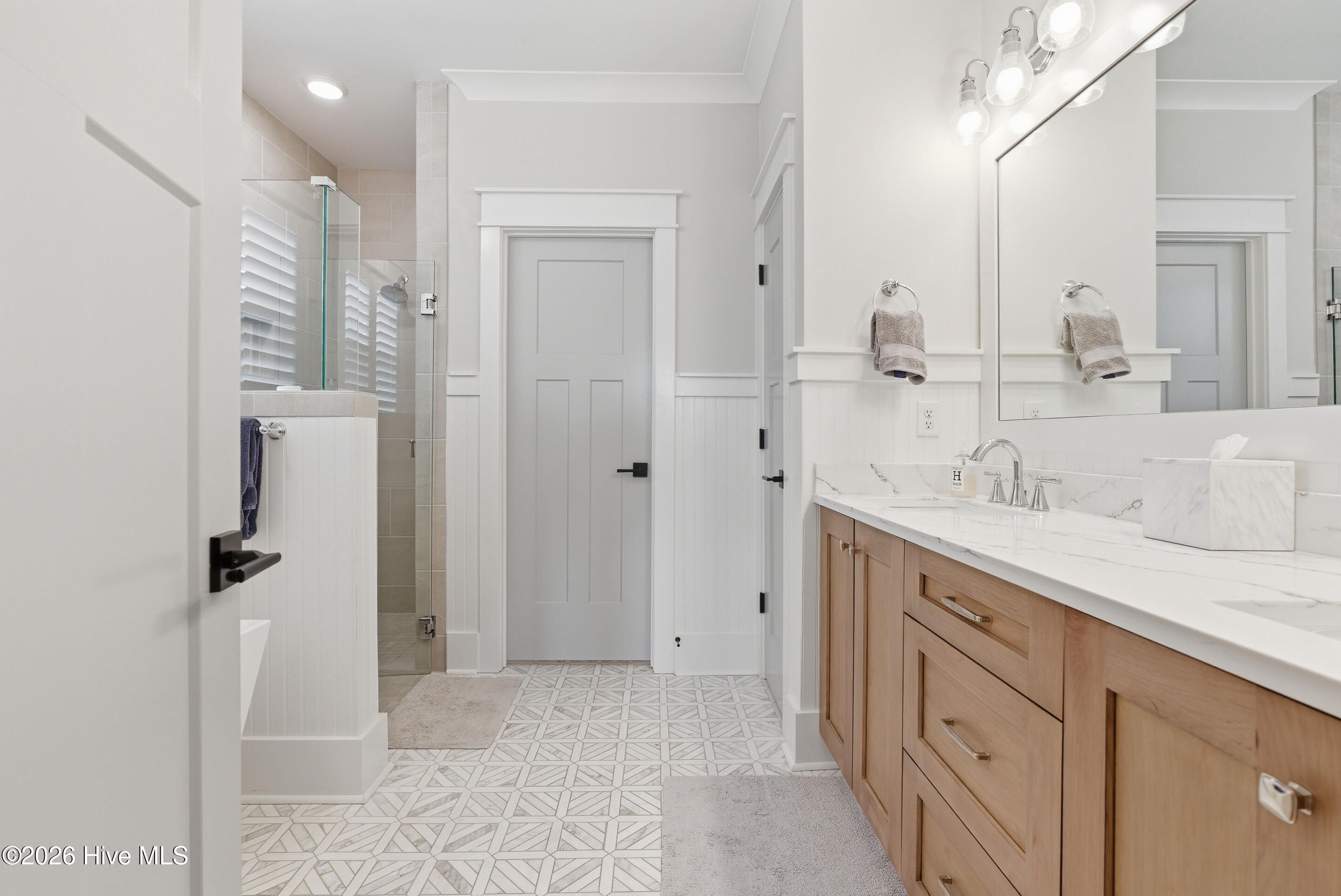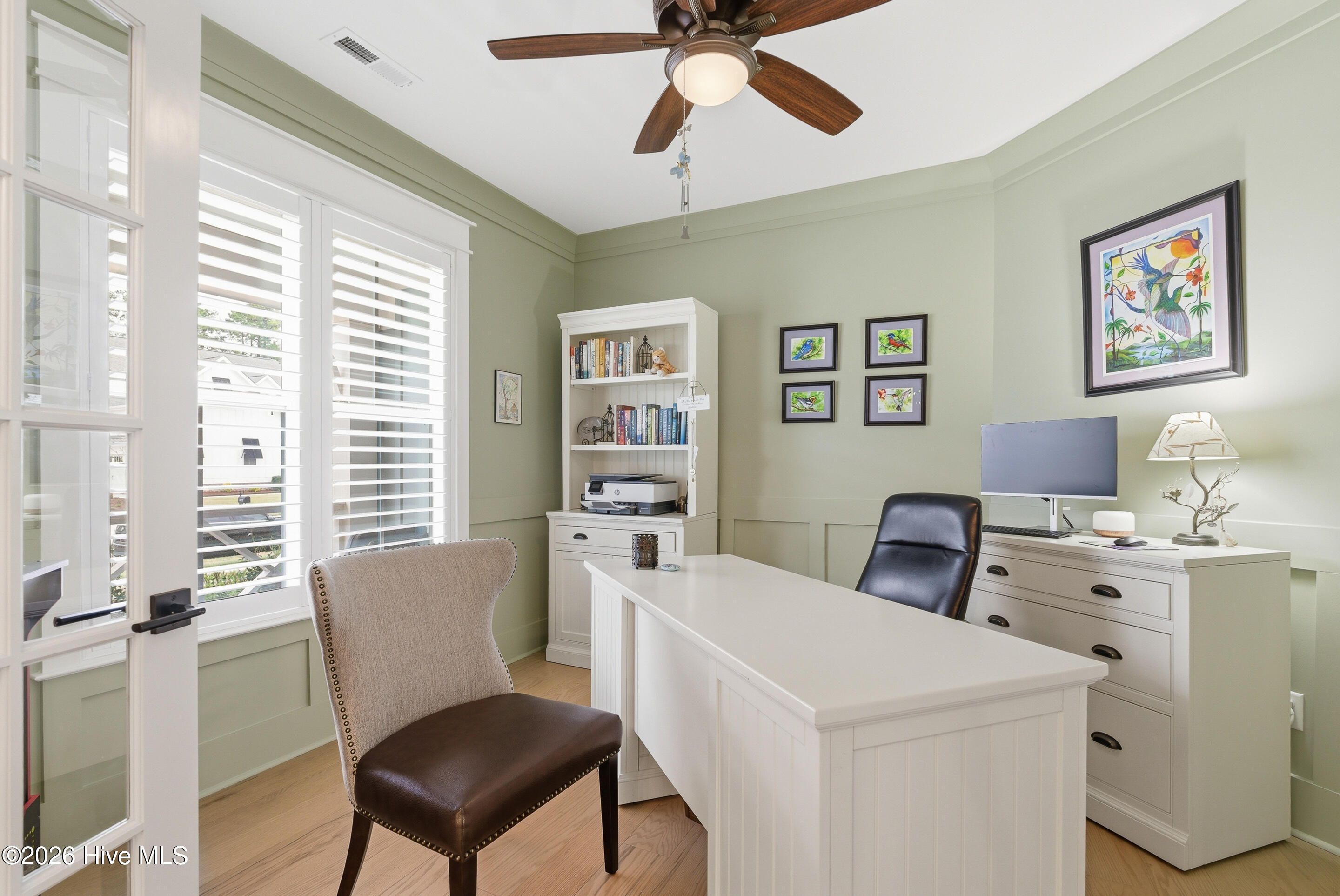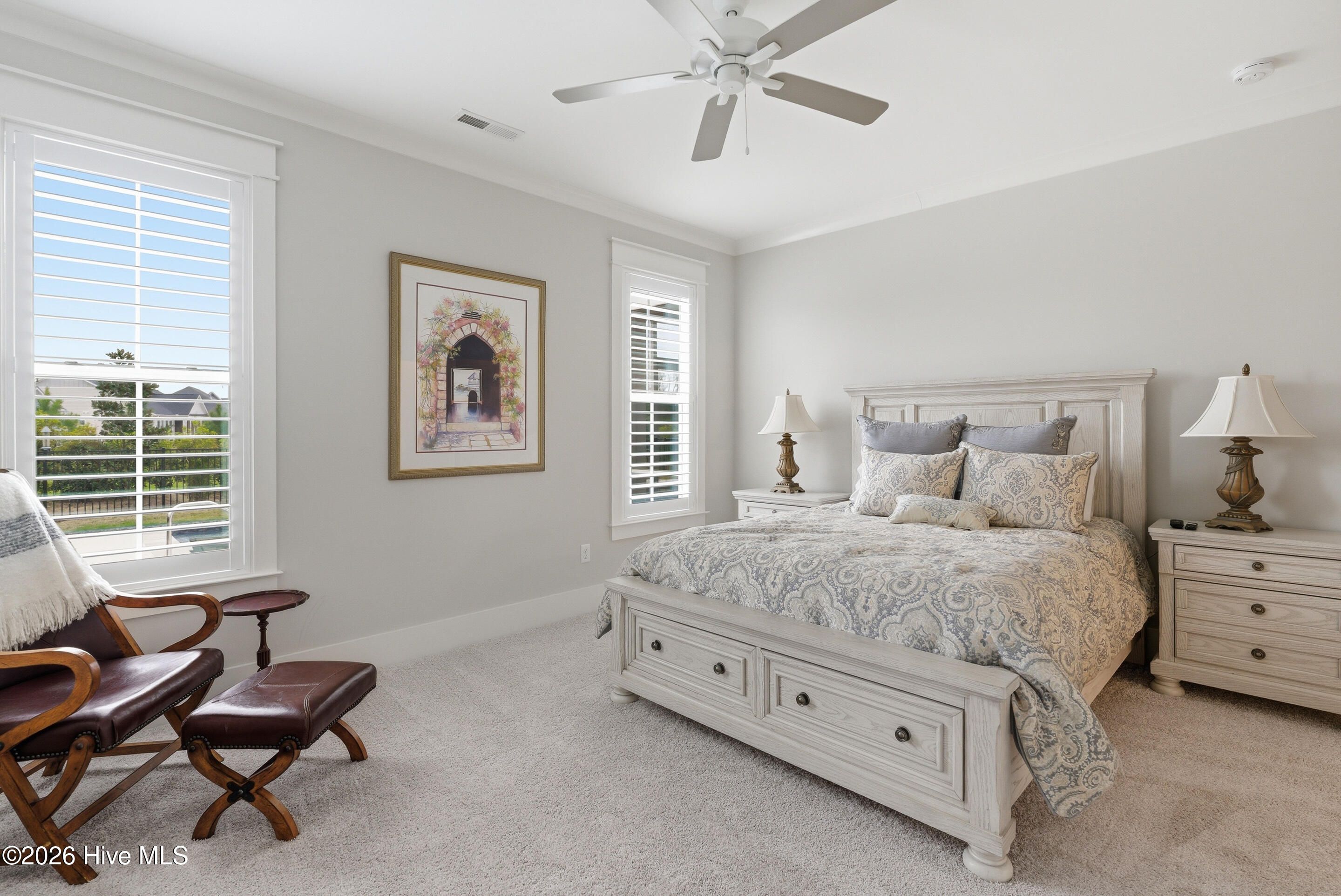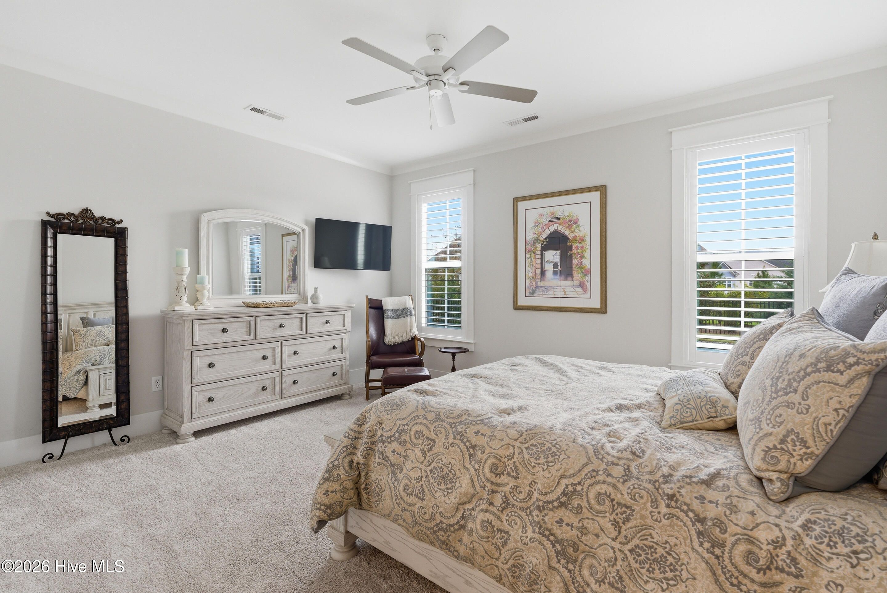 - Master Downstairs, Walk-In Closet(s), Tray Ceiling(s), High Ceilings, Entrance Foyer, Mud Room, Kitchen Island, Ceiling Fan(s), Pantry, Walk-In Shower, Blinds