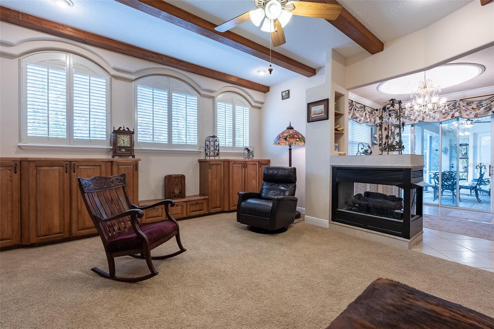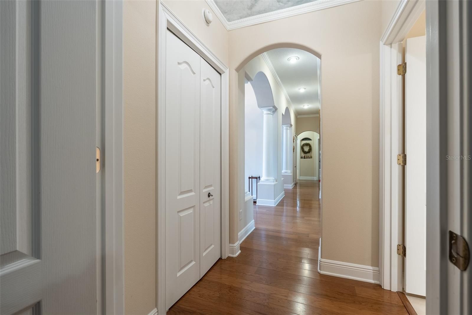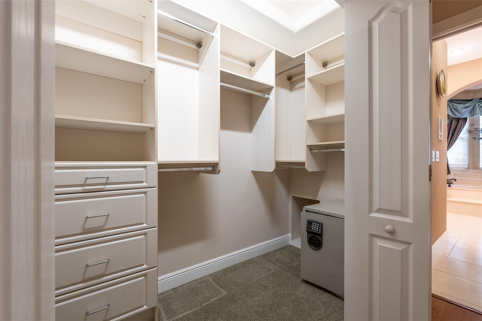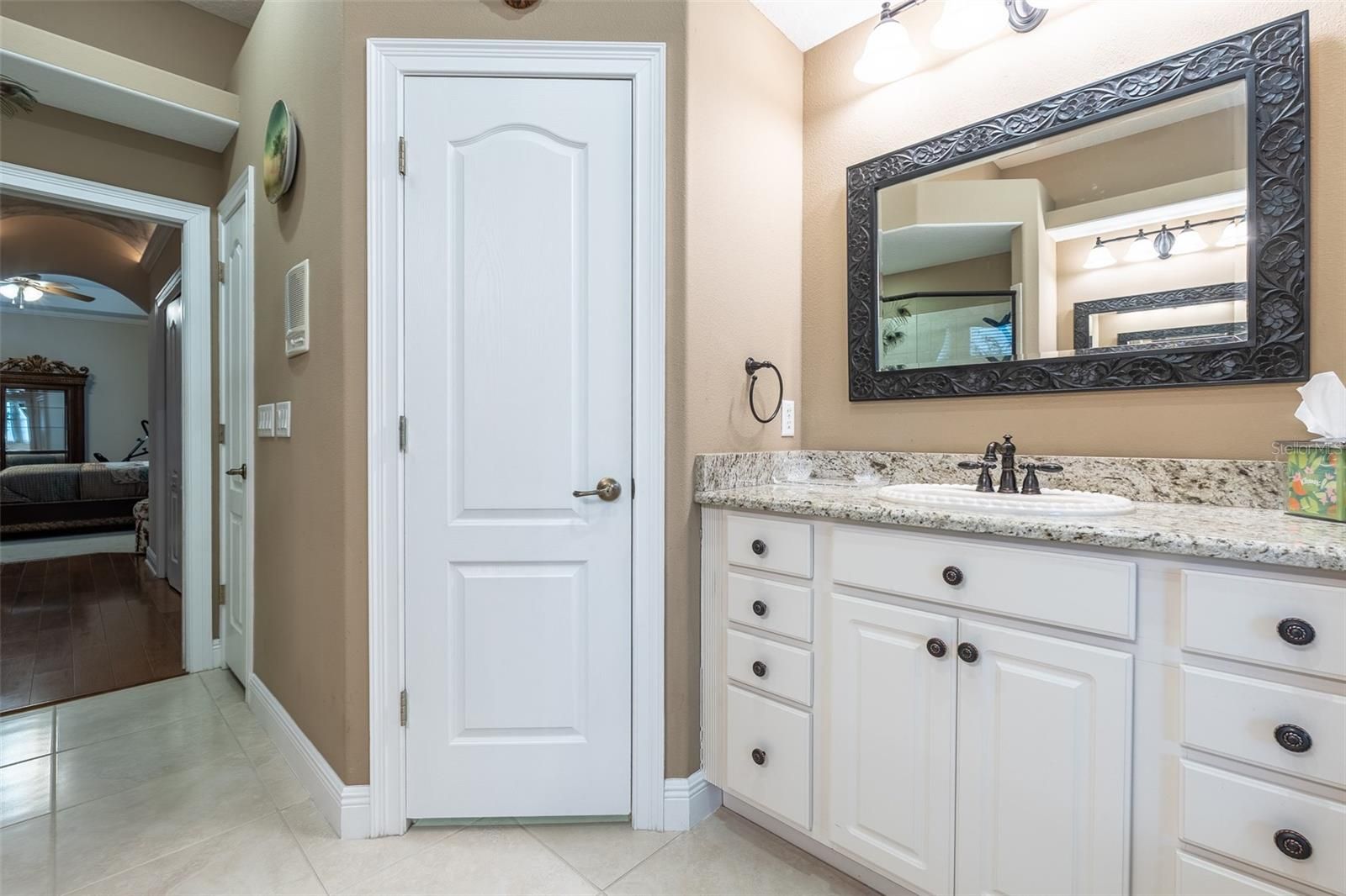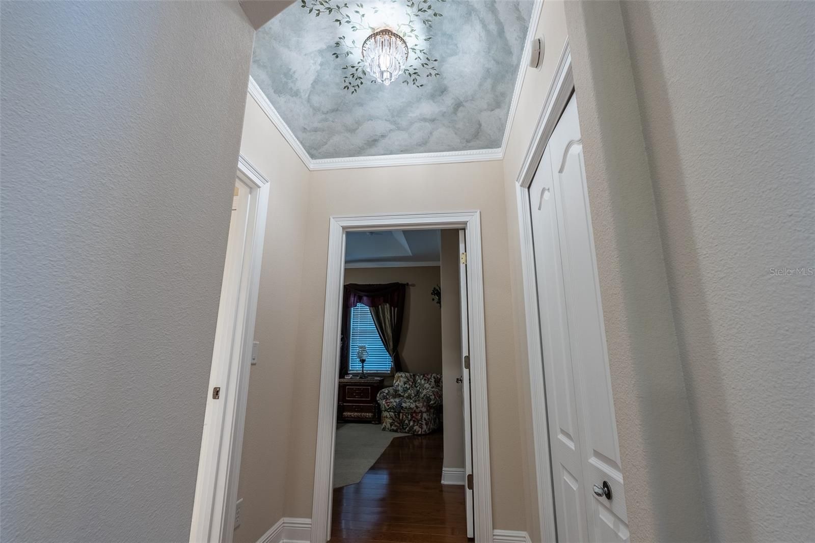 - Ceiling Fan(s), Central Vacuum, Chair Rail, Crown Molding, Eat-in Kitchen, High Ceilings, Main Level Primary, Split Bedrooms, Stone Counters, Tray Ceiling(s), Walk-In Closet(s), Window Treatments