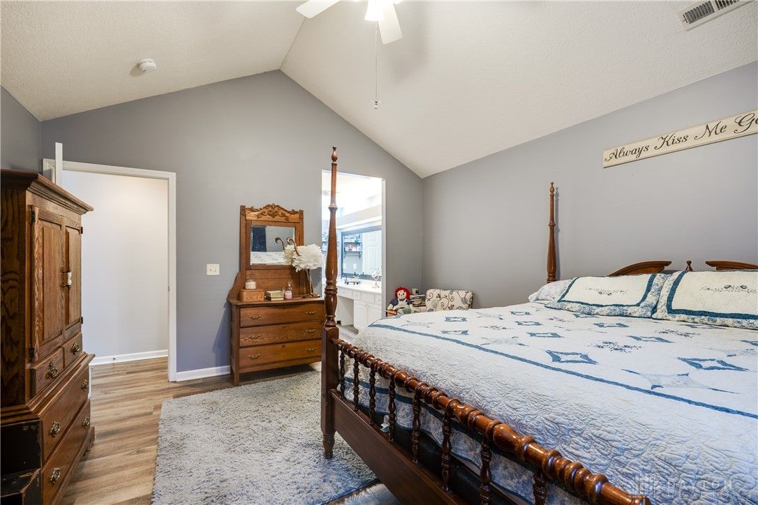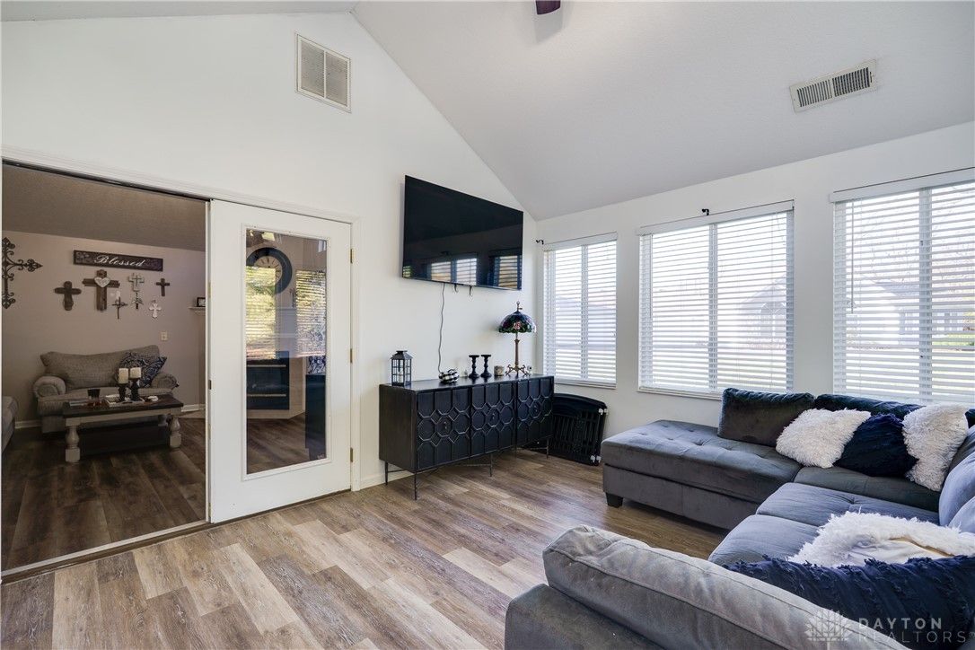 Welcome home to this fabulous open-concept, two-bedroom, two-full-bath, one-level condo in the highly desirable Hunters Glen at Northmont, offering effortless private entrance, no rear neighbors, quiet living and true move-in readiness. A versatile third room with cathedral ceilings makes an ideal guest bedroom or stunning home office. The inviting primary suite features a gorgeous walk-in closet, excellent storage, and a spacious double-sink vanity. The beautifully remodeled kitchen, completed in 2023, boasts leathered granite countertops and newer appliances, with a convenient laundry and mudroom just off the kitchen leading to the generous two-car garage. Updates include LVP flooring in 2022, all new ceiling fans, a new furnace in 2025, and a new roof in 2025, giving you peace of mind for years to come. The association covers yard care, landscaping, snow removal, water and sewer, plus access to a clubhouse, pool, walking trails, and an exercise room. This exceptional condo is ready for its next owner, and opportunities like this in Hunters Glen do not come often. Don’t miss it!