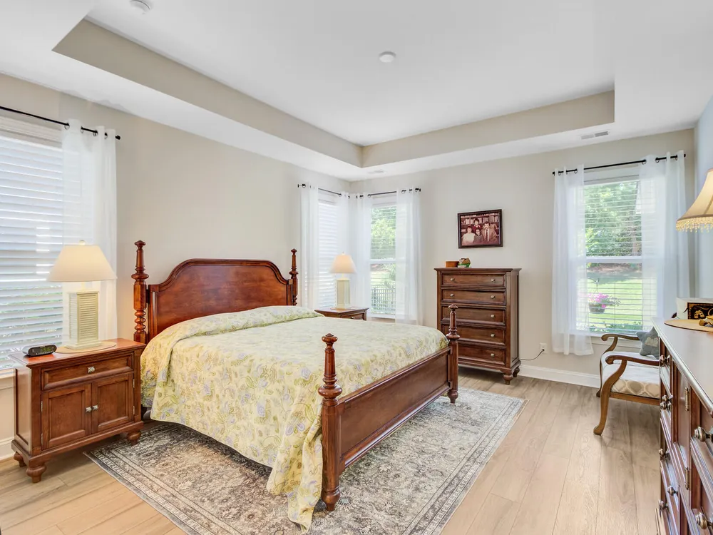 Welcome to this beautifully maintained 2 bedrooms, 2 bath ranch-style home located in a sought-after active adult community. Designed with comfort and functionality in mind, this open-concept floorplan offers seamless flow between the living, dining and kitchen areas - perfect for both everyday living and entertaining. The home features luxury vinyl plank flooring throughout the main living area and bedrooms with elegant tile in both bathrooms. The kitchen is a chef's dream, boasting modern cabinetry and ample counter space. Enjoy year-round relaxation in the airy sunroom or unwind in the spacious 12x23 three-season room, with tile floors and serene views. Situated on a private wooded lot which provides a peaceful, natural setting. The extended garage offers space for extra storage.