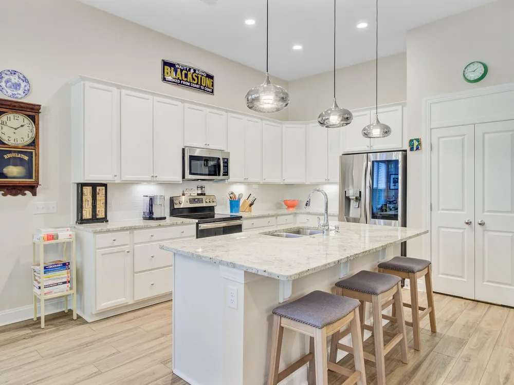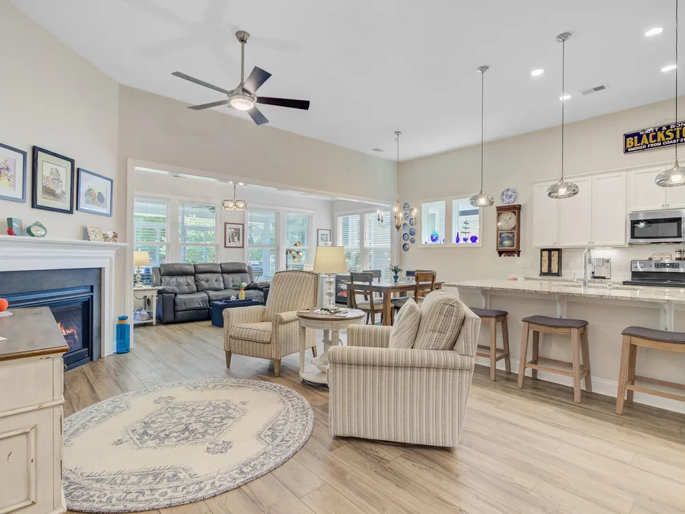 - Smooth Ceilings, Tray Ceiling(s), High Ceilings, Kitchen Island, Walk-In Closet(s), Family Room, Entrance Foyer, Living/Dining Room, Pantry, Sunroom