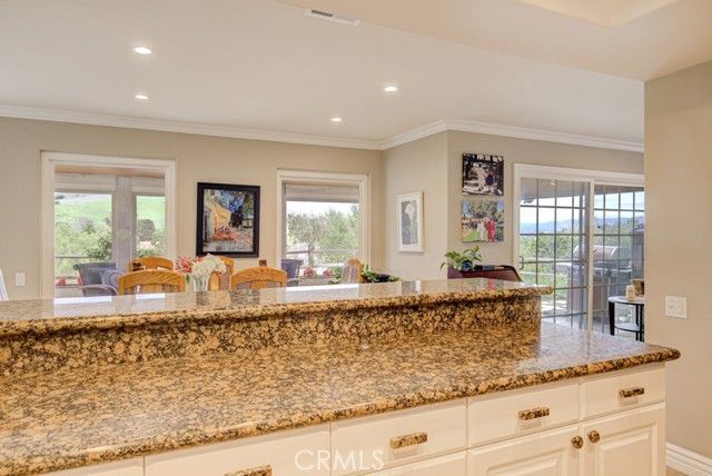 - Crown Molding, Granite Counters, Recessed Lighting, Stone Counters, Unfurnished, Kitchen, Laundry Facility, Living Room, Bedroom on Main Level, Main Level Primary, Primary Bathroom, Primary Bedroom, Primary Suite