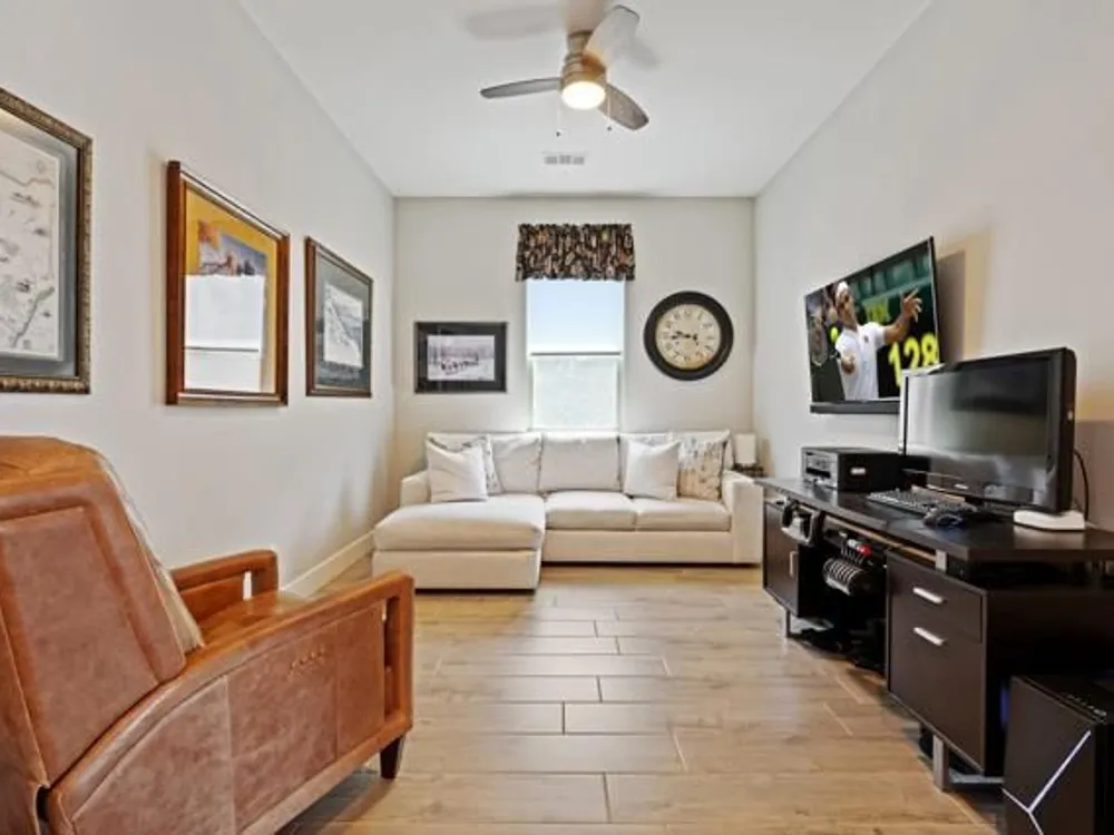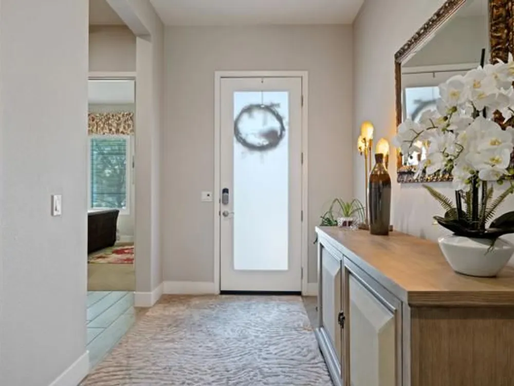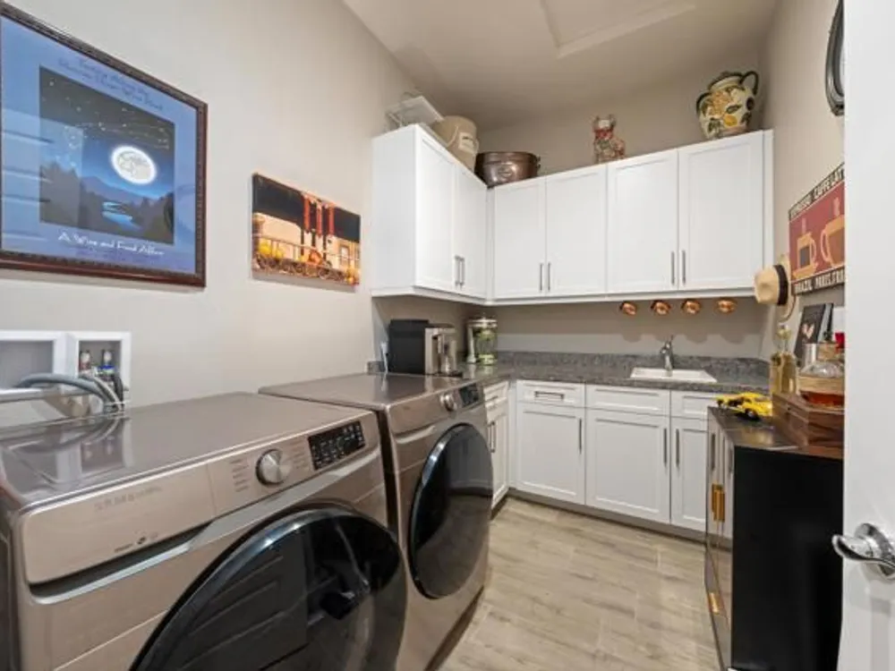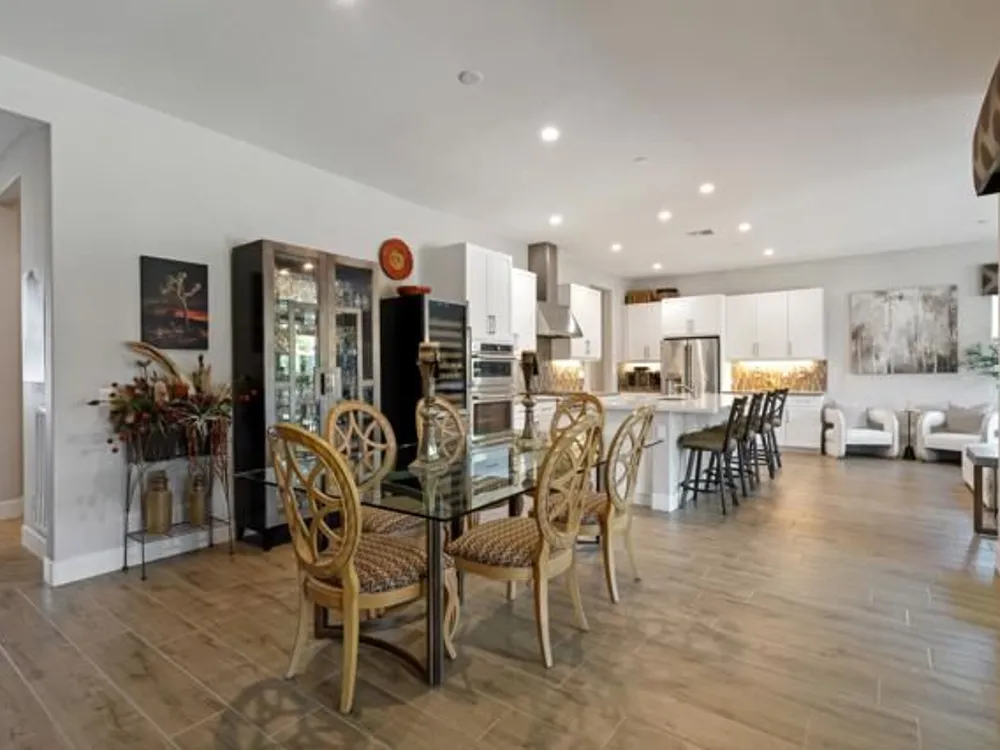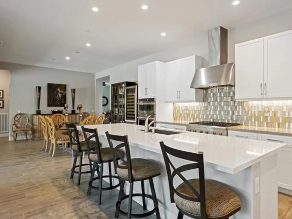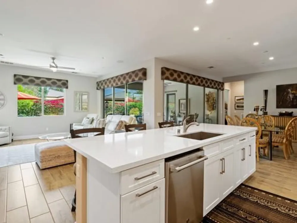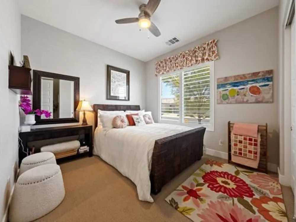 Welcome to a stunning residence at 50780 Harps Canyon Drive, nestled within the prestigious gated community of Trilogy at the Polo Club. This exquisite home exudes both charm and sophistication, offering 2 bedrooms and 2.5 bathrooms spread across a generous 2,039 square feet of living space. As you step inside, you'll be captivated by the grandeur of 10-foot ceilings and 8-foot doors, complemented by elegant tile flooring throughout the common areas. The heart of this home is the chef's kitchen, boasting a commercial-grade gas cooktop and hood, sleek stainless steel appliances, soft-close cabinets, and convenient pull-out shelves--an entertainer's dream. The seamless indoor-outdoor flow is accentuated by two rolling glass doors that open to a beautifully paved patio, perfect for hosting gatherings or simply relaxing. Enjoy the lush, low-maintenance backyard, while an electric screen on the patio ensures year-round comfort and maximizes indoor/outdoor living. With upgraded bathrooms, custom valances, electric window shades, and 5-inch base molding, every detail has been meticulously crafted. Custom paint adds a touch of elegance, creating a warm and inviting atmosphere. There is an oversized two car garage that is EV ready, with an additional golf cart garage. Adjacent to a scenic walking path, this home offers a perfect blend of privacy and community living, making it an ideal retreat for those seeking a tranquil yet vibrant lifestyle. Your dream home awaits! A Polo Club membership is available with $1,875 transfer fee. Membership includes access to the Polo Club, fitness center, pickleball & tennis courts, resort pool, lap pool, artisan studio, card room, banquet facilities, golf simulator, billiards, and so much more.