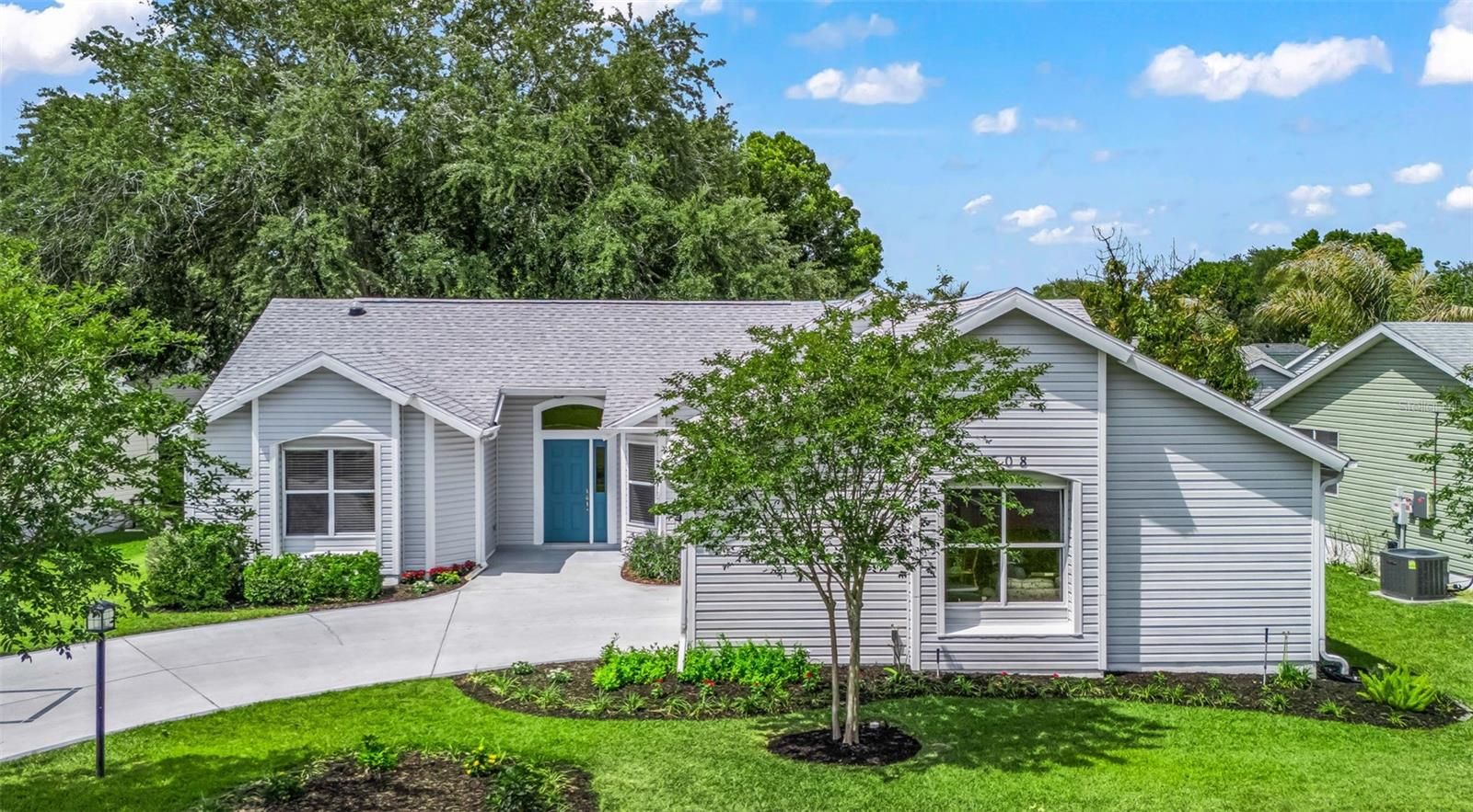 Wow! CHARMING, MOVE-IN READY 2/2 plus office Coronado MUST SEE home offers BRIGHT, AIRY, spacious floor plan in PRIME LOCATION!!! NO BOND!!! New luxury vinyl flooring and high ceilings greet you as you walk into the living room/dining room combo perfect for entertaining. Cooks will love the large kitchen with QUARTZ COUNTERTOPS and beautiful OAK CABINETRY. From your kitchen step into the office/florida room to your private deck where you can enjoy your morning coffee or afternoon cocktail. HOME IS NESTLED BETWEEN 2 GOLF COURSES (Mira Mesa & Chula Vista) just 4 minutes to nightly entertainment, dining and boutique shopping at Spanish Springs Town Square and 3 minutes to the preferred Chula Vista recreation area equipped with pickle ball courts, pool, tennis courts, bocce and beach tennis. Retail shopping on 441, Lake Sumter Marketplace Square, Spanish Plaines Medical Center and UF Hospital are minutes away. NEWER ROOF 2020, NEWER A/C 2023, NEWER WATER HEATER 2020! Home features new landscaping in large front yard with beautiful trees, expanded garage (26 x 23) and extra long driveway for additional parking. Solatubes, inside laundry, new blinds, Florida friendly berber carpet in bedrooms, shelving, storage, sink and folding stairs to floored attic in garage. Kitchen is large enough to add window seating and floor to ceiling cabinetry for enthusiastic cooks. This Mira mesa charmer is a must see! BOND is paid in full. Monthly amenities fee: $204. All measurements are approximate and to be verified by buyer.