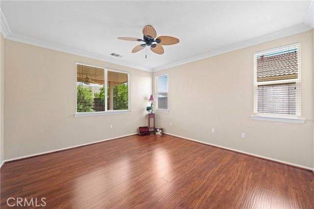 - Ceiling Fan(s), Crown Molding, Granite Counters, Open Floorplan, All Bedrooms on Lower Level, Great Room, Main Level Primary, Primary Bathroom, Home Office, Walk-In Closet(s)