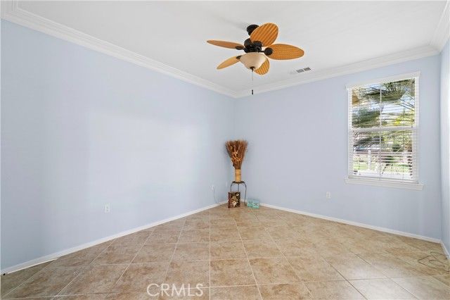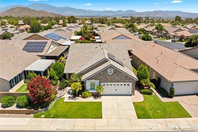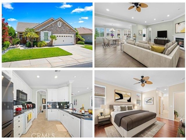 Discover this immaculate turnkey single-level Invitational 2 property, perfectly situated in the vibrant “OVER 55” gated community of Four Seasons Hemet. With a leased solar system for energy efficiency, this home is designed for both comfort and convenience. As you step through the elegant double doors adorned with leaded glass, you will be greeted by a bright and airy open floor plan that’s ideal for relaxation and entertaining. Retractable screens on the front and back doors provide a seamless blend of indoor and outdoor living. This charming residence features two spacious bedrooms and two luxurious full baths. Elegant wood floors grace the bedrooms and office, while stylish tile with decorative borders enhances the main living areas. Enjoy the ambiance created by plantation shutters, crown molding, and ceiling fans throughout the home. The kitchen is a chef’s delight, boasting a generous oversized island with convenient pull-out drawers, stunning granite countertops, and a brand-new refrigerator. The dining room, located just across the island, offers the perfect setting for family meals. The cozy great room features a fireplace, providing a warm ambiance for gatherings. Retreat to your opulent primary suite, complete with a luxurious ensuite featuring a walk-in tub, bidet, and a separate shower equipped with grab bars. The guest bathroom is equally impressive, showcasing an upgraded tiled shower that seamlessly complements the bathroom design. The guest bedroom features mirrored closet doors for added style and functionality. The garage is a true standout, featuring sleek epoxy flooring, a ceiling fan, a workbench, ample cabinet storage, a shop vac, and an electric car charger—perfect for the modern homeowner. Step outside to your private oasis in the backyard, where an Alumawood patio cover with a fan, stamped concrete, and lush grass create the ultimate outdoor relaxation space. Enjoy low-maintenance landscaping with automated sprinklers and a drip system, allowing you to spend more time enjoying your beautiful surroundings. As a resident of Four Seasons Hemet, you’ll gain access to an incredible range of amenities, including 24-hour security, a bistro, ballroom, theater, game and billiards room, library, gym, salon, BBQ area, pool, spa, bocce courts, shuffleboard, tennis, and pickleball courts. Make this exquisite home yours today and begin the next chapter of your life in paradise!