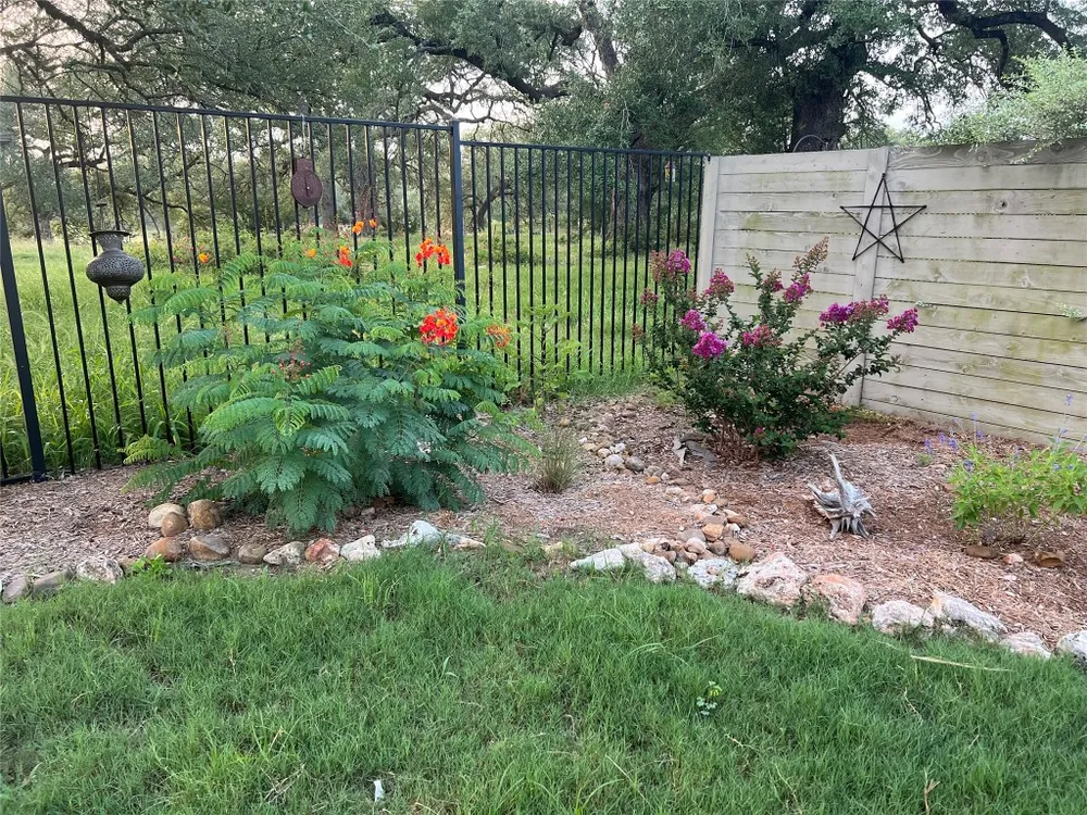 This jewel of a home in The Grove section of Vintage Oaks, with a rare peaceful backyard greenbelt view, includes a seasonal pond and ranch view beyond. As you enter home from the foyer the arched windows immediately offer a striking view of the heritage oak tree and greenbelt beyond. This Perry Homes open floor plan with great natural light, was build with many custom upgrades including limestone gas fireplace, formal dining chandelier, front apron Kohler sink, BOSCH DW, water softener (owner paid off), Elite water purification system, tankless water heater, some Xeriscaping and native plant landscaping, water barrels for summer watering, sprinkler system, high ceilings, mother in law ensuite. Window treatments, side by side fridge (needs a temp sensor), Ring bell, Nest thermostat all included in sale. Enjoy the ear ringing quiet of this house with neighborhood amenities galore. Tuscan style amenity center, trails, fitness center, three pools, lazy river, seasonal outdoor performances at Timber Ridge. Schedule showing now before this beauty is snatched up.