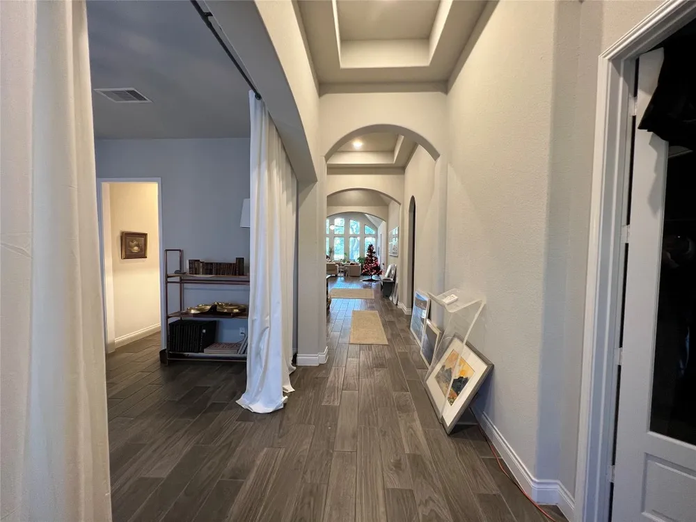 - Breakfast Bar, Ceiling Fan(s), Chandelier, Dry Bar, Coffered Ceiling(s), Separate/Formal Dining Room, Double Vanity, Entrance Foyer, French Door(s)/Atrium Door(s), High Ceilings, High Speed Internet, Kitchen Island, Low Flow Plumbing Fixtures, Multiple Living Areas, Multiple Dining Areas, Main Level Primary, NoInteriorSteps, Pantry, Quartz Countertops, Recessed Lighting, Smart Thermostat