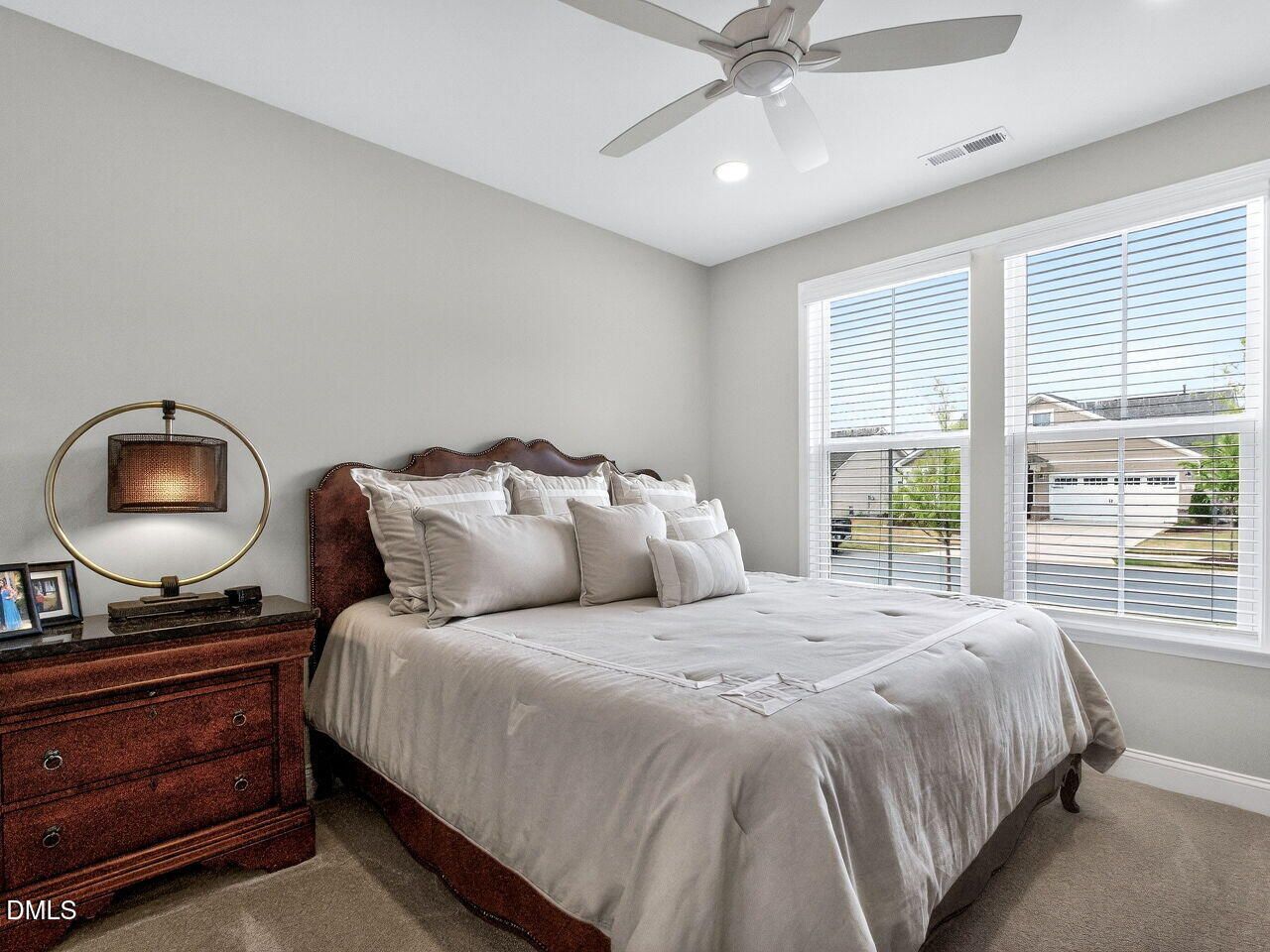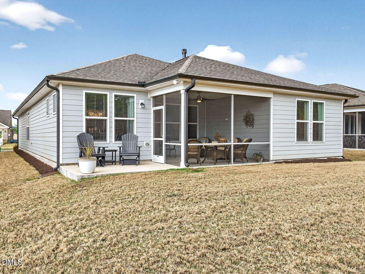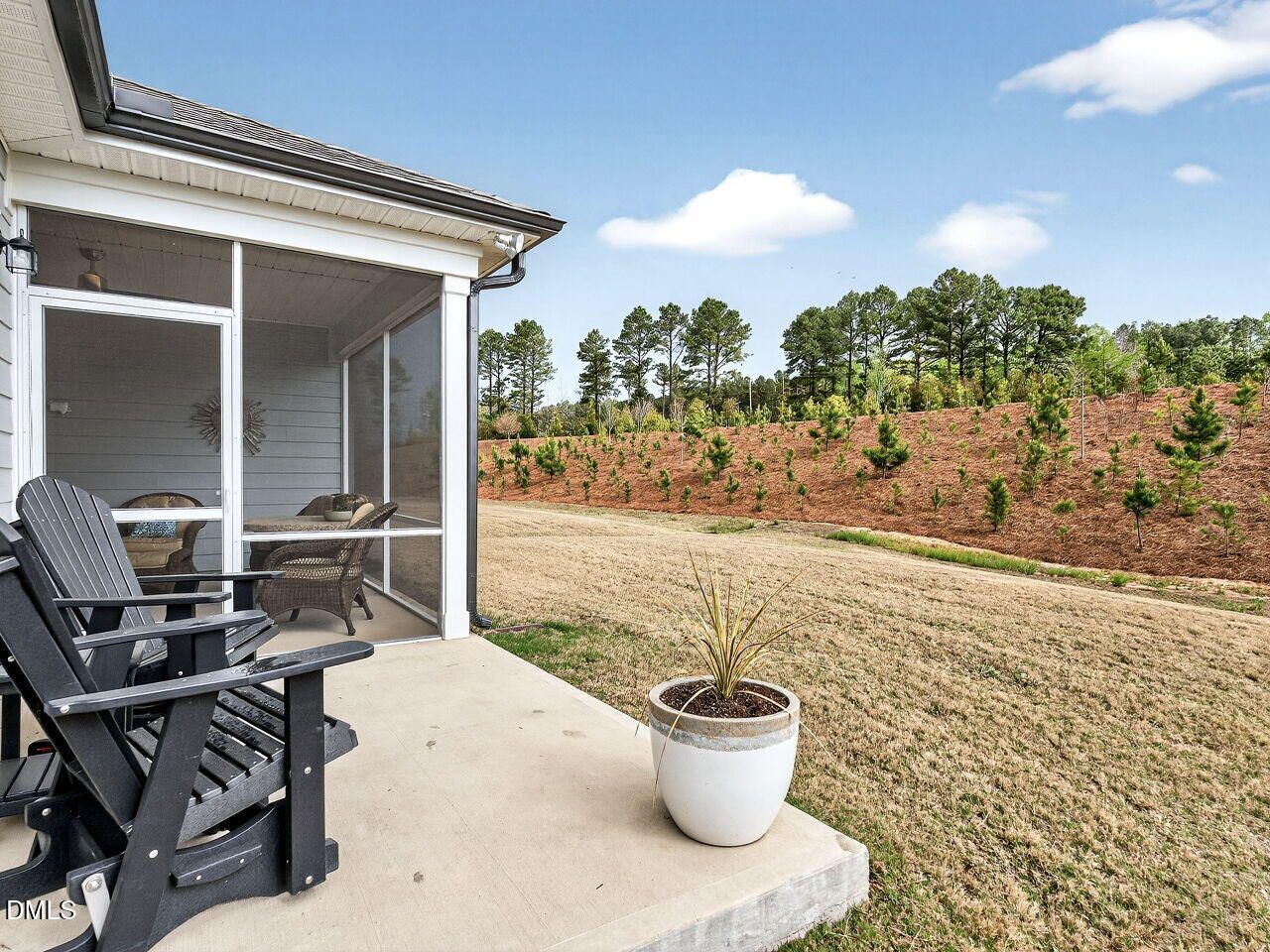 Welcome to this beautifully maintained home in the desirable 55+ community of Carolina Overlook! This thoughtfully designed residence offers both comfort and privacy, with the owner's suite and guest suite ideally positioned on opposite sides of a spacious great room--perfect for hosting visitors while maintaining your own retreat. The home features a well-appointed kitchen complete with a large center island and walk-in pantry, ideal for storage and organization. A versatile first-floor flex space provides endless possibilities--whether you need a home office, hobby room, or additional sitting area. This home features custom built-in storage in every closet--maximizing space and keeping everything beautifully organized. From spacious walk-ins to secondary closets, each area has been upgraded with tailored shelving and storage solutions, providing convenience and a polished, high-end feel throughout. Enjoy the ease of having a place for everything, making everyday living both efficient and clutter-free. Enjoy relaxing or entertaining on the screened patio overlooking a very private backyard, offering a peaceful outdoor escape. This home truly stands out with its meticulous upkeep and numerous upgrades throughout. As part of the Carolina Overlook community, you'll enjoy low-maintenance living with HOA fees that include cable, internet, and lawn care. Residents also have access to an impressive 20,000 sq ft clubhouse featuring both indoor and outdoor pools, along with a variety of amenities, fitness and social opportunities. Enjoy an active and connected lifestyle in this vibrant community designed with outdoor living in mind. Residents can take advantage of miles of sidewalks throughout the neighborhood--perfect for daily walks, jogging, or biking. Spend time by the scenic lake, where a dedicated walking trail offers a peaceful setting to stay active and unwind. Plus, with direct access to the greenway, you'll have even more opportunities to explore nature, exercise, and enjoy the outdoors right from your doorstep. This community makes it easy to stay active, social, and connected every day. Don't miss your chance to enjoy easy, active living in one of the area's most sought-after 55+ communities!