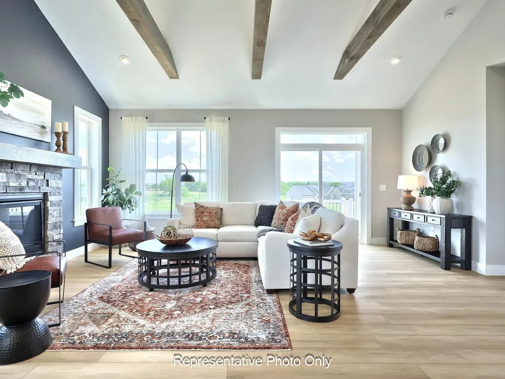 UNDER CONSTRUCTION – AVAILABLE THIS WINTER: This lovely new duplex at Winding Creek 55+ is a thoughtfully designed 1-story home with 2 bedrooms, 2 full baths, and a 2-car garage with a mudroom entry. The front entry opens to the foyer, secondary bedroom and bathroom, perfect for guests. Stylish vinyl plank flooring flows throughout the main living areas. The kitchen, well-appointed with quartz countertops, a tile backsplash, stainless steel appliances and a large pantry, is adjacent to the dining area and great room to create an open plan. The great room makes a grand impression with its cathedral ceiling and a beautiful fireplace with floor-to-ceiling stone. Sliding glass door access in the great room leads to a composite deck. Tucked quietly to the back of the home, the owner’s suite features an oversized closet and a private bathroom with a tile shower and double bowl vanity.