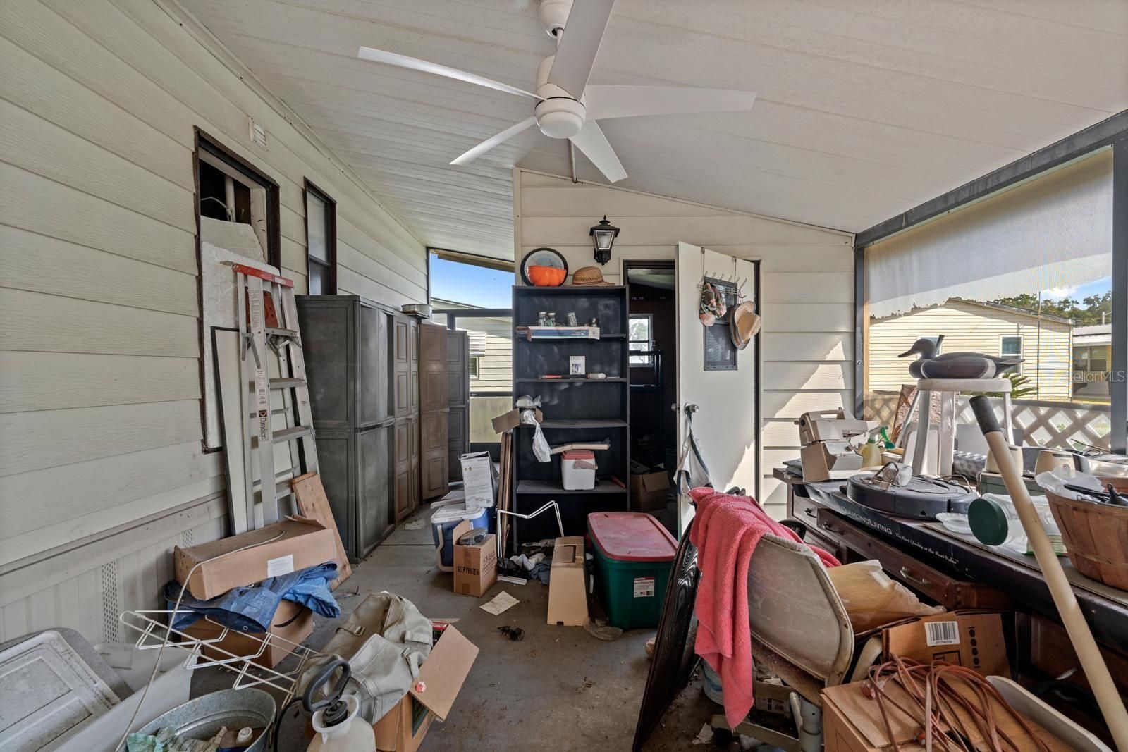Welcome to Foxwood Lake Estates, a highly sought-after 55+ community where you own the land! This beautiful 2-bedroom, 2-bath home offers a spacious open floor plan featuring a large breakfast bar that seamlessly connects the kitchen, dining, and living areas—perfect for entertaining. The kitchen is a true highlight, showcasing all-wood cabinets, soft-close drawers, quartz countertops, and stainless steel appliances. Stylish laminate flooring flows throughout the main living spaces, adding warmth and easy maintenance. Enjoy extra living space in the comfortable Florida room with acrylic windows and air conditioning (not included in the 1,352 sq. ft. of living area), plus an additional screened room that wraps around the storage area—ideal for a workshop, hobby space, or relaxing retreat. Residents can take advantage of a variety of amenities, including a spacious clubhouse, game and billiards rooms, fitness center, library, sauna, and a heated pool with hot tub. Outdoor recreation abounds with pickleball, shuffleboard, bocce ball, basketball, and horseshoe courts, plus a scenic paved walking trail that winds around the lake. There’s always something happening here—from social gatherings and themed dinners to live entertainment, dances, fitness classes, and holiday celebrations. Whether you enjoy morning coffee with neighbors, pool aerobics, Zumba, or golf cart parades, this friendly community offers an abundance of ways to stay active, social, and engaged year-round.