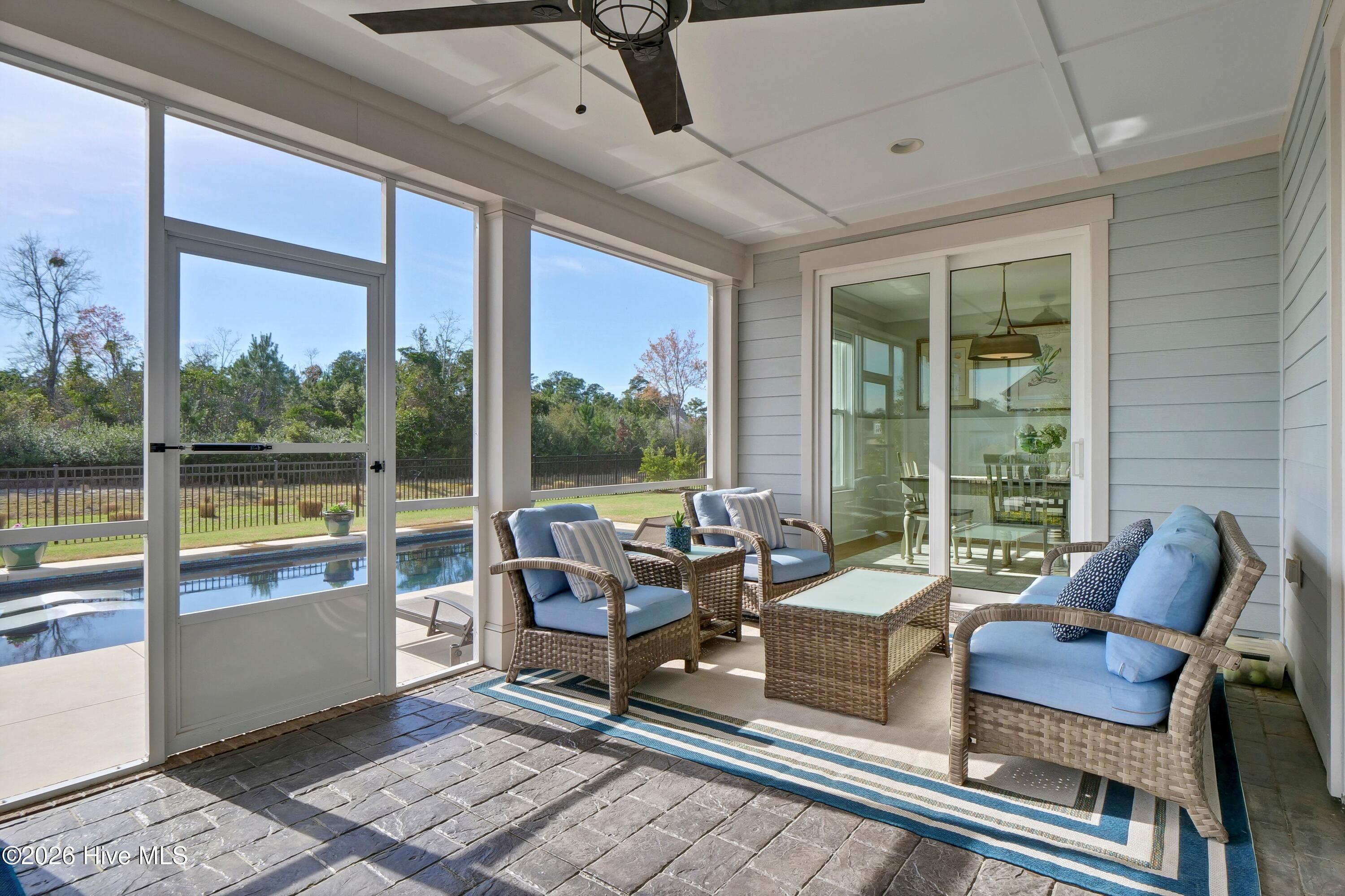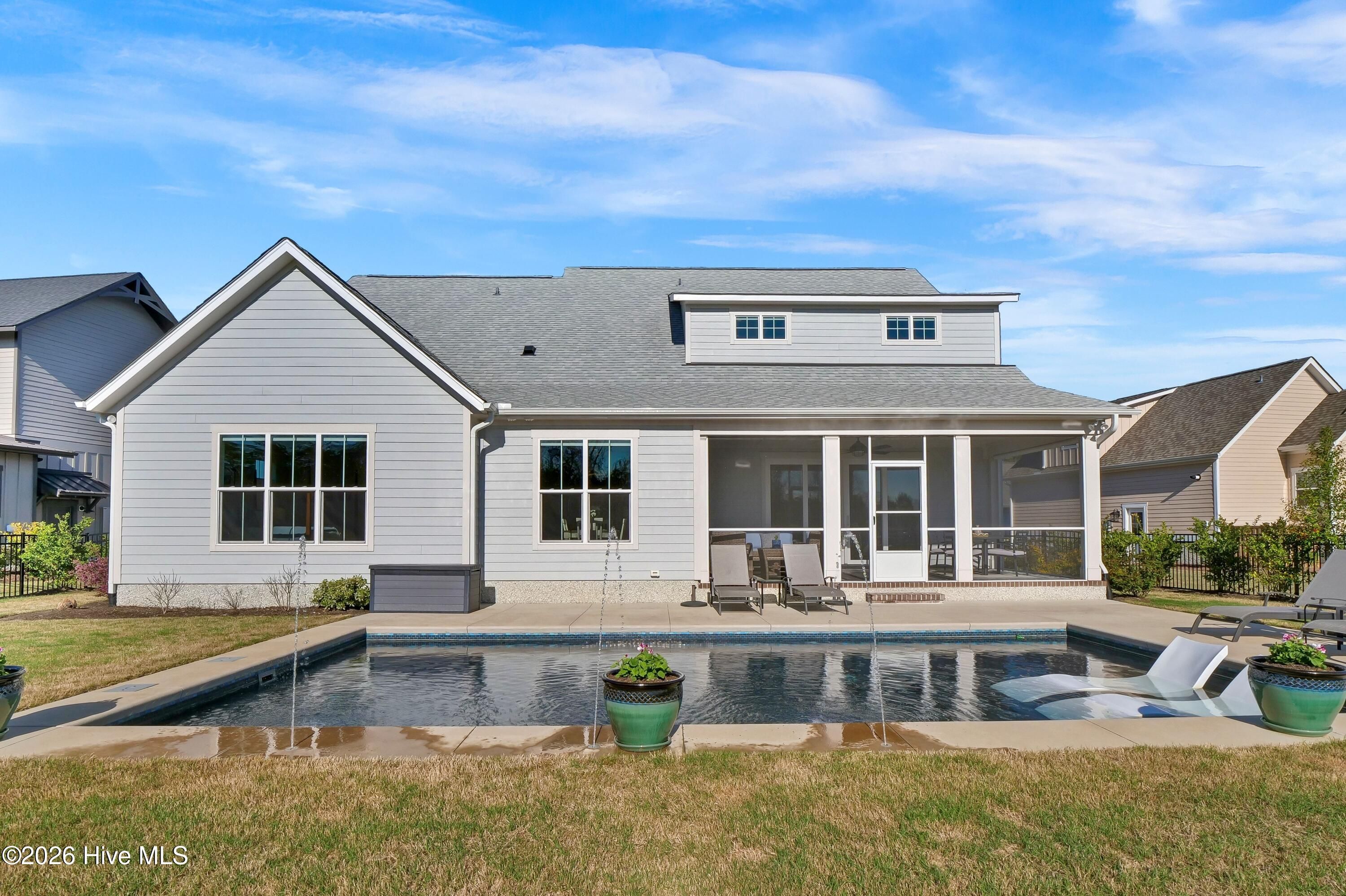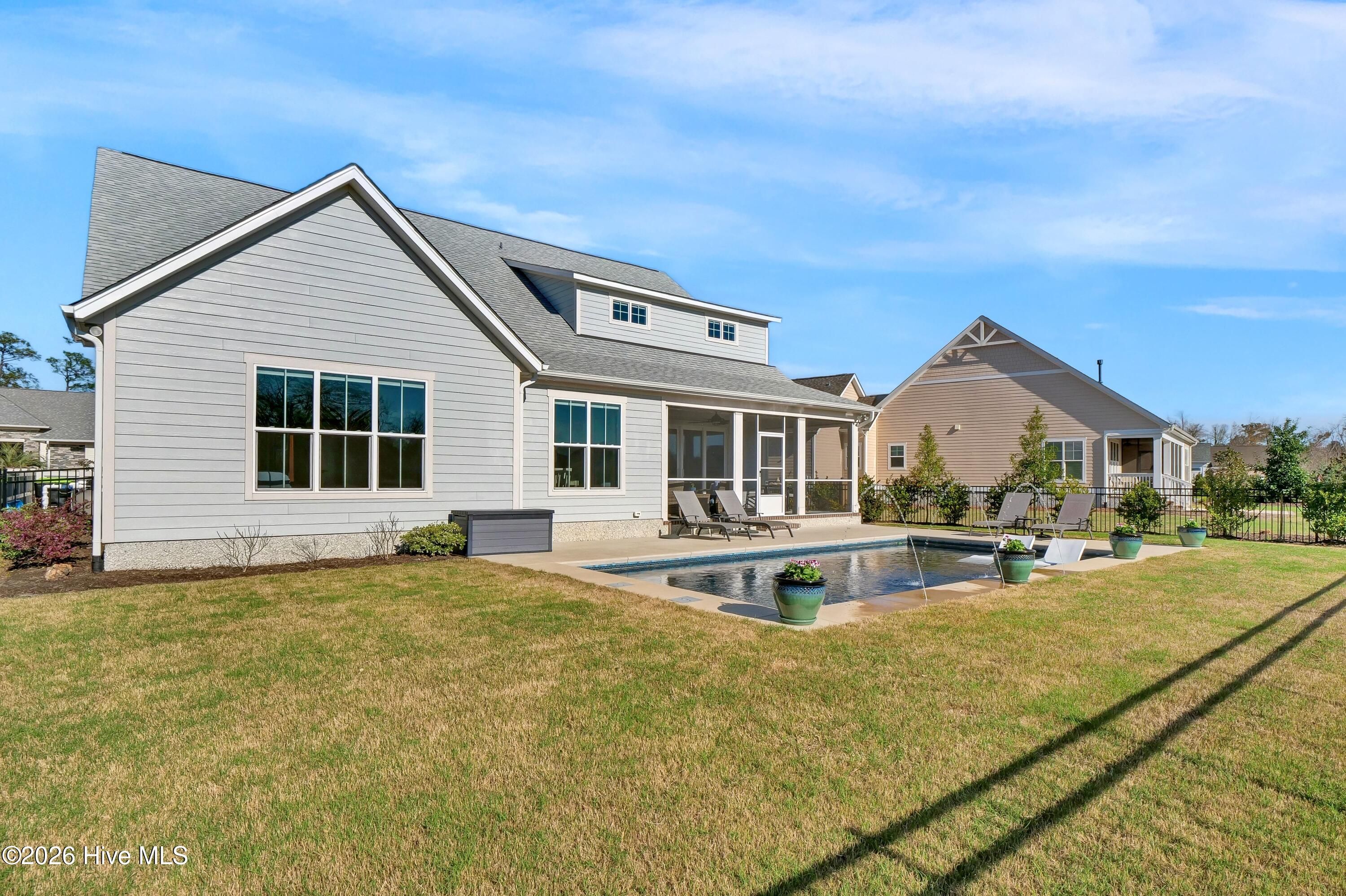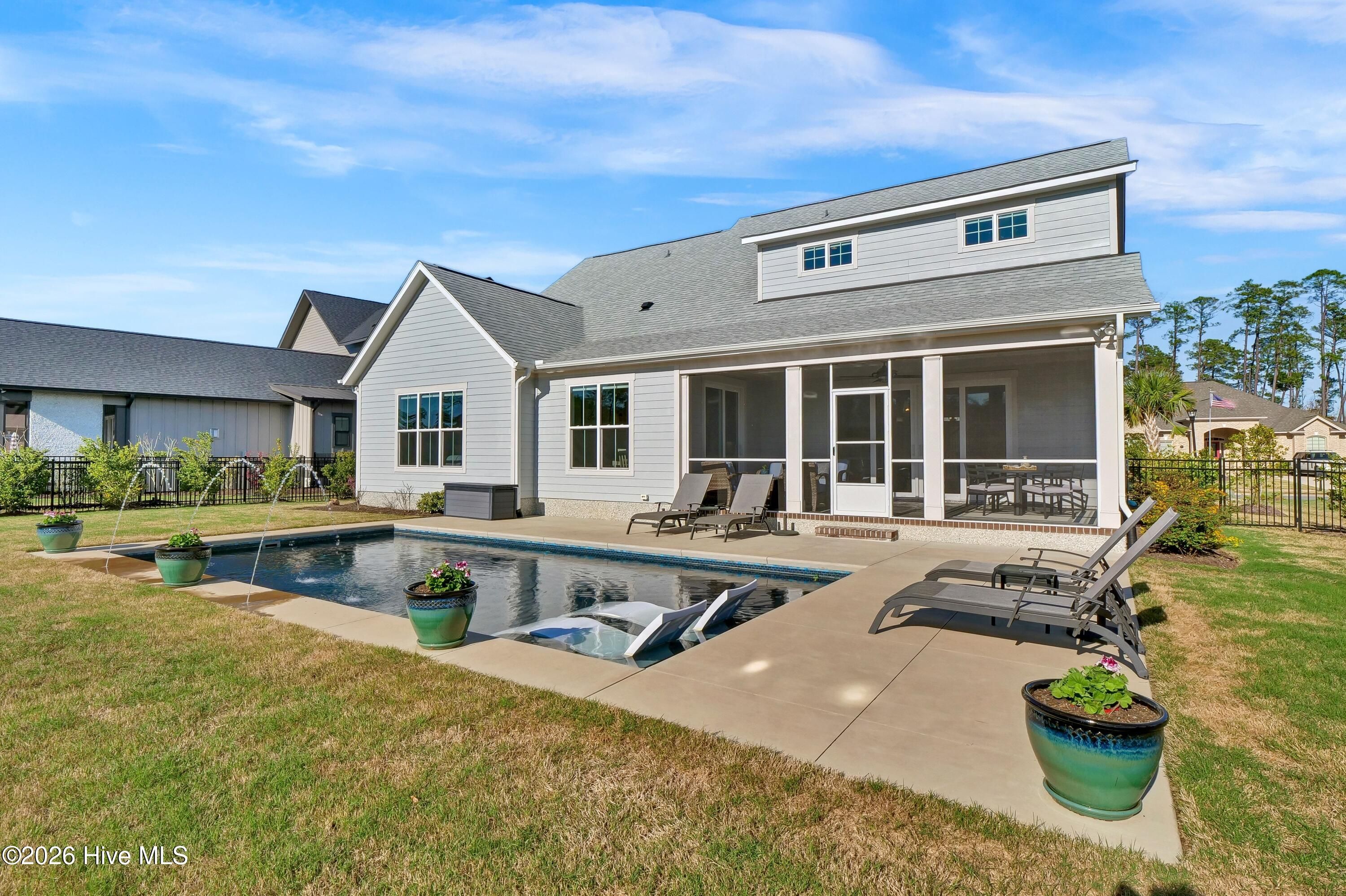 Welcome to this exceptional home in Brunswick Forest, where refined finishes and thoughtful design come together to create a truly turnkey luxury living experience. Located within the prestigious Cape Fear National, this 4-bedroom, 3 full and 1 half bath residence offers elegance, comfort, and resort-style amenities. Step inside to an open-concept living space where the living room flows seamlessly into the kitchen and breakfast area, complete with custom built-in bookcases and sliding doors leading to a screened-in porch. The gourmet kitchen is a chef's dream, featuring a large island, porcelain farmhouse sink, reverse osmosis system for water and ice, stainless steel appliances, wall oven, built-in microwave, 6-burner hooded gas cooktop, and a beveridge fridge. Designed for both work and entertaining, the home includes engineered hardwood floors throughout, a private office with French doors, coffered ceiling, and wainscoting, as well as a formal dining room with matching architectural detail. The primary suite is a luxurious retreat with a tray ceiling, cozy sitting area, custom walk-in closets, and a spa-like bath complete with soaking tub, walk-in shower, quartz countertops, water closet, and linen storage. Upstairs, a bright and spacious bonus room with a wet bar and beverage refrigerator offers the perfect setting for movie nights, games, or entertaining. Two generously sized bedrooms share a bathroom, while a third bedroom and full bath provide ideal accommodations for guests, a home office, or fitness space. A walk-in attic with full-door access adds valuable storage. Step outside to your private backyard oasis featuring a saltwater pool with lights, deck jets and large tanning deck, screened-in porch, full fencing, and protected green space where no future building will occur--offering both privacy and tranquility. With the award-winning golf course winding throughout the community and ownership by Heritage Golf Group, this home delivers an unparalleled lifestyle in one of the area's most sought-after neighborhoods. Don't miss your opportunity to experience luxury living at its finest--schedule your private showing today!