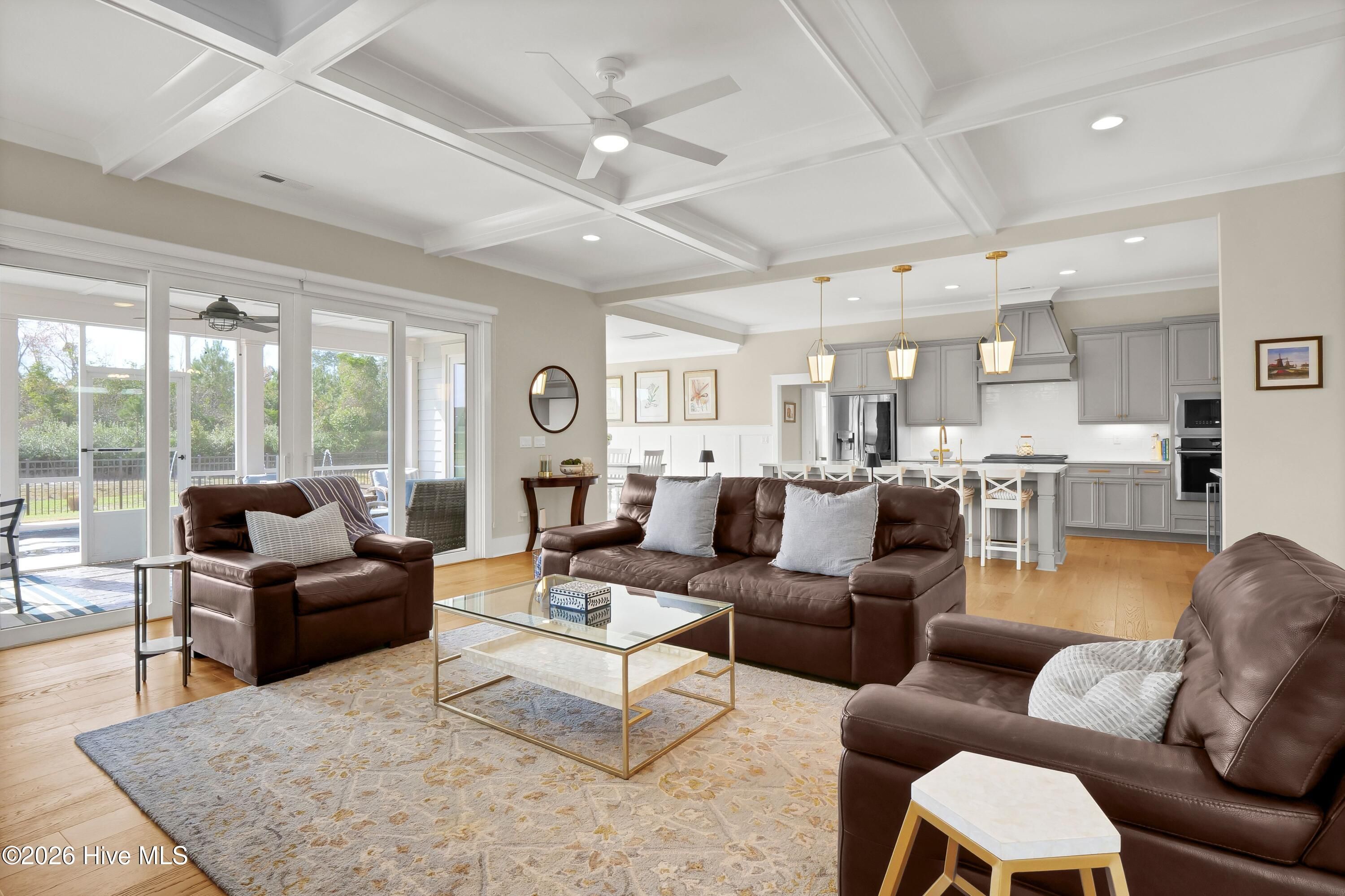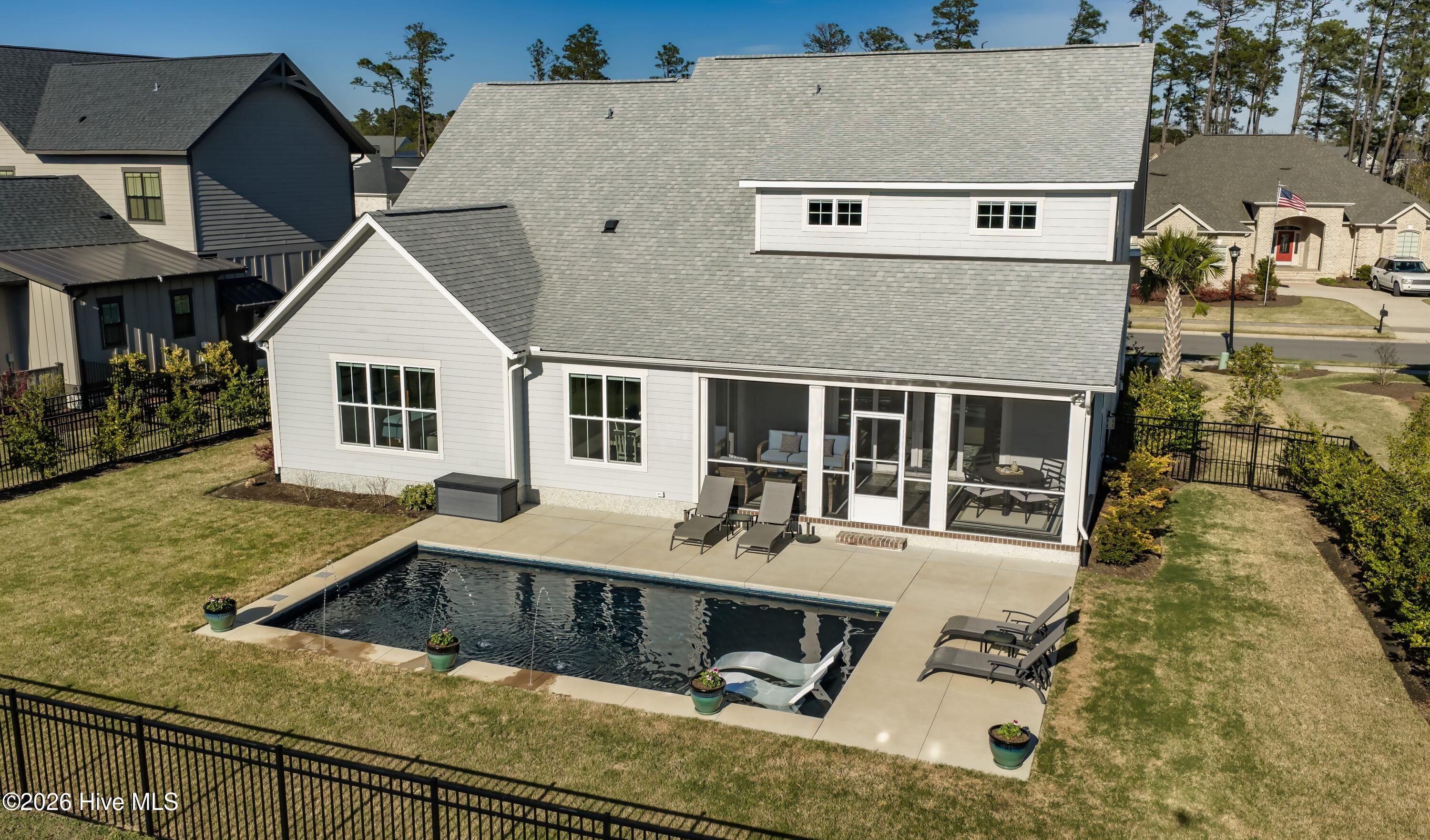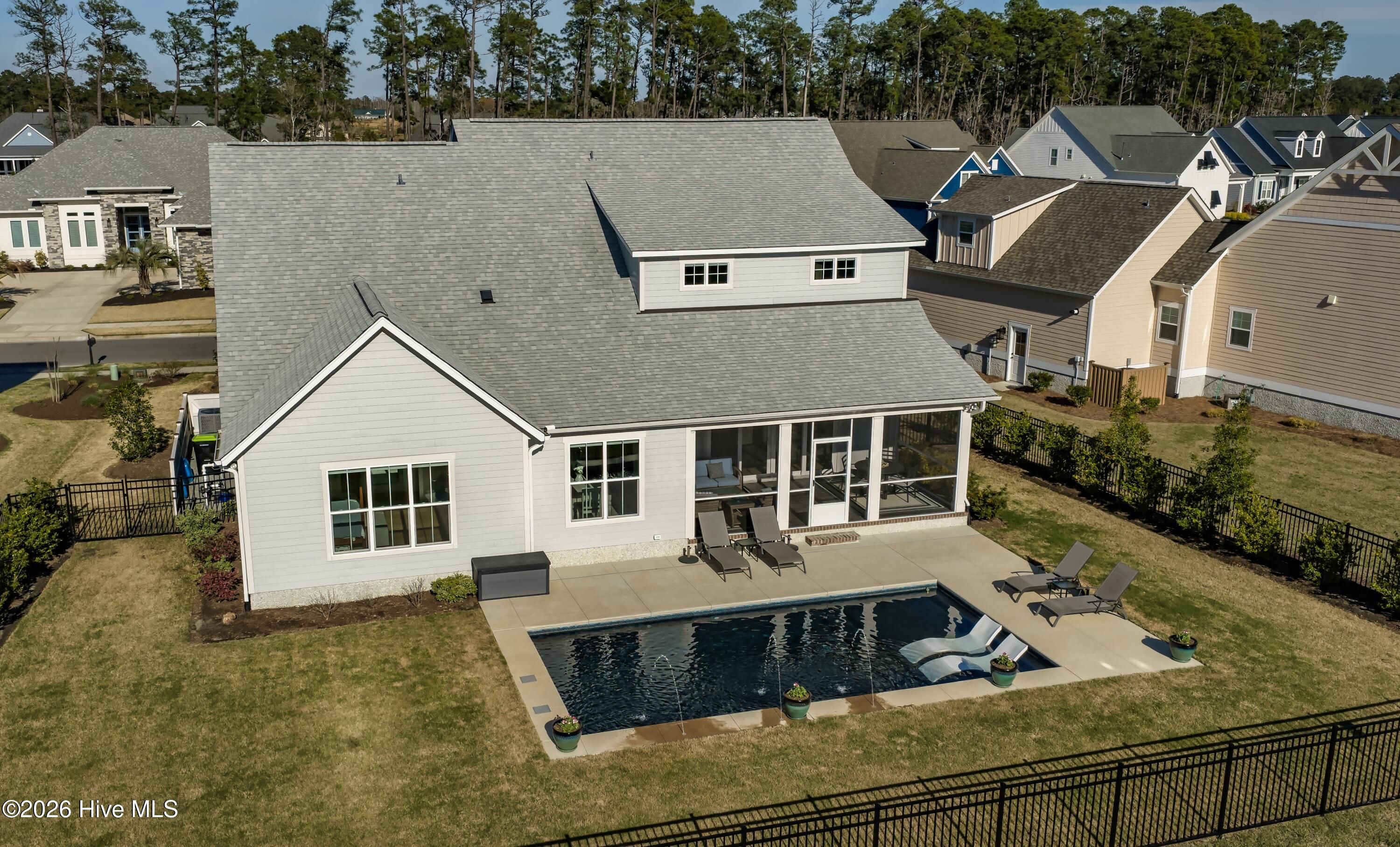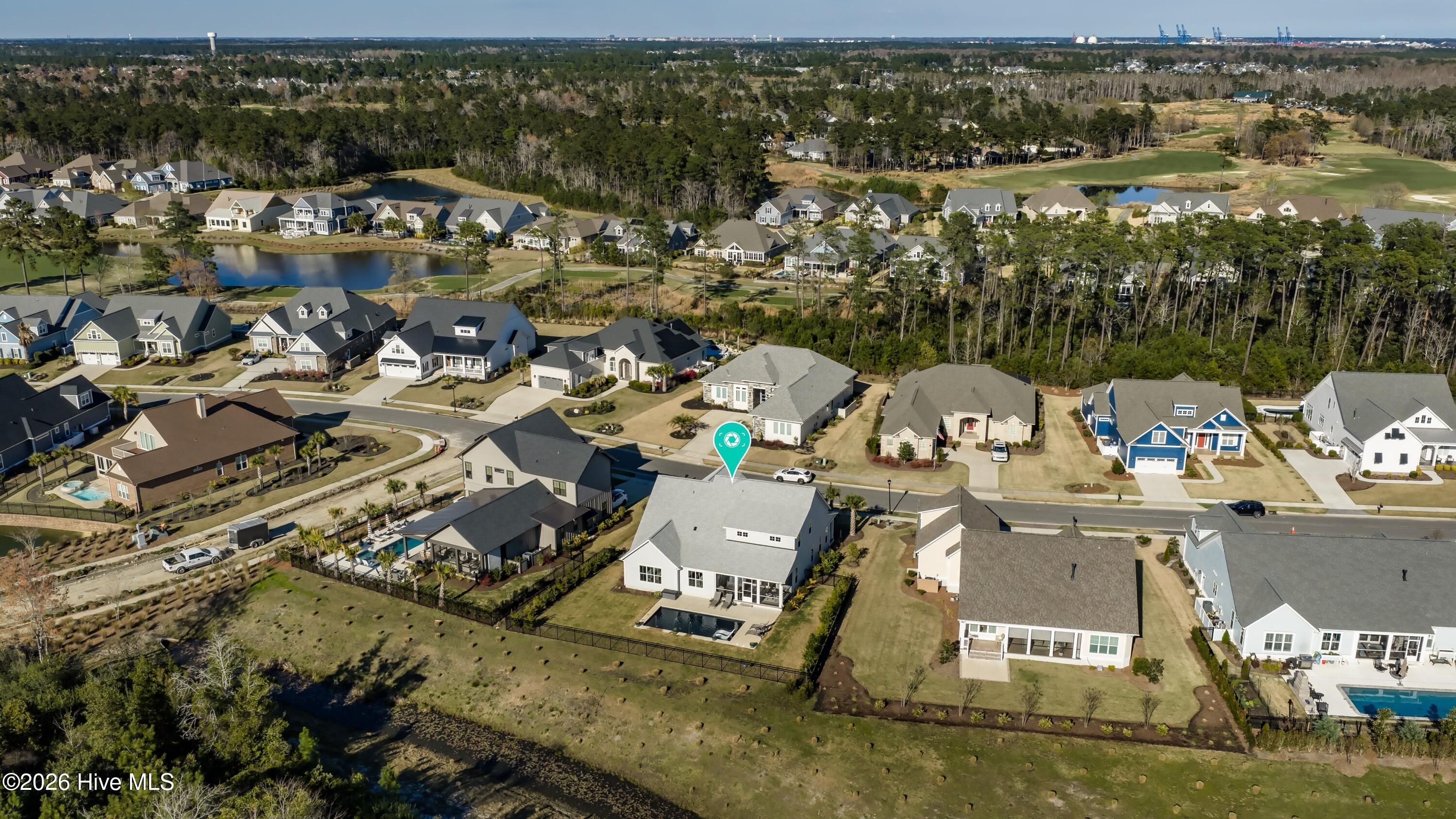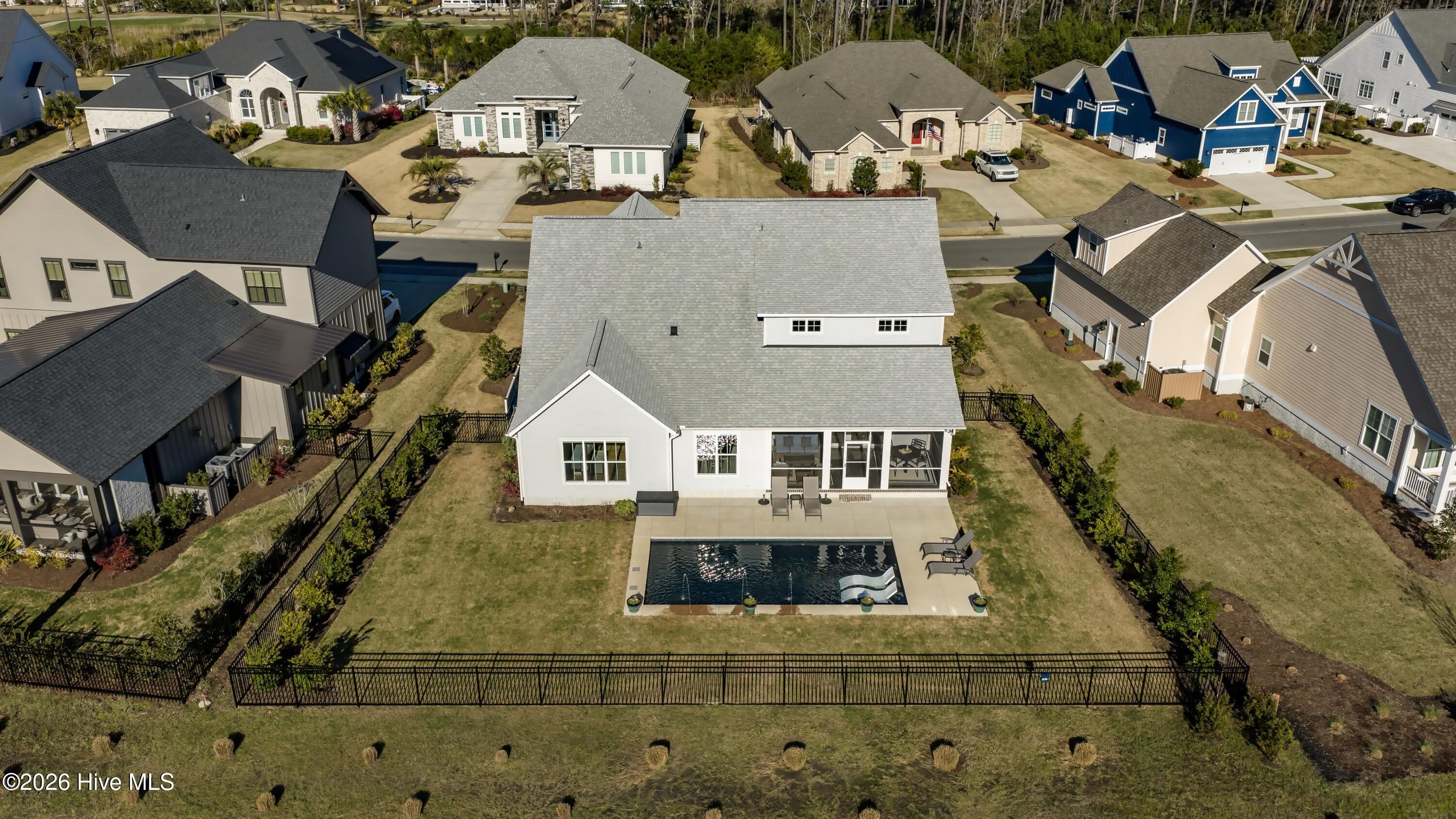 Welcome to this exceptional home in Brunswick Forest, where refined finishes and thoughtful design come together to create a truly turnkey luxury living experience. Located within the prestigious Cape Fear National, this 4-bedroom, 3 full and 1 half bath residence offers elegance, comfort, and resort-style amenities. Step inside to an open-concept living space where the living room flows seamlessly into the kitchen and breakfast area, complete with custom built-in bookcases and sliding doors leading to a screened-in porch. The gourmet kitchen is a chef's dream, featuring a large island, porcelain farmhouse sink, reverse osmosis system for water and ice, stainless steel appliances, wall oven, built-in microwave, 6-burner hooded gas cooktop, and a beveridge fridge. Designed for both work and entertaining, the home includes engineered hardwood floors throughout, a private office with French doors, coffered ceiling, and wainscoting, as well as a formal dining room with matching architectural detail. The primary suite is a luxurious retreat with a tray ceiling, cozy sitting area, custom walk-in closets, and a spa-like bath complete with soaking tub, walk-in shower, quartz countertops, water closet, and linen storage. Upstairs, a bright and spacious bonus room with a wet bar and beverage refrigerator offers the perfect setting for movie nights, games, or entertaining. Two generously sized bedrooms share a bathroom, while a third bedroom and full bath provide ideal accommodations for guests, a home office, or fitness space. A walk-in attic with full-door access adds valuable storage. Step outside to your private backyard oasis featuring a saltwater pool with lights, deck jets and large tanning deck, screened-in porch, full fencing, and protected green space where no future building will occur--offering both privacy and tranquility. With the award-winning golf course winding throughout the community and ownership by Heritage Golf Group, this home delivers an unparalleled lifestyle in one of the area's most sought-after neighborhoods. Don't miss your opportunity to experience luxury living at its finest--schedule your private showing today!