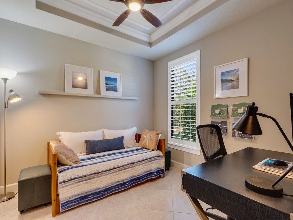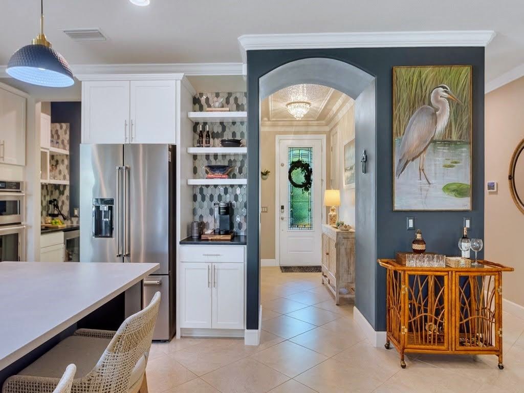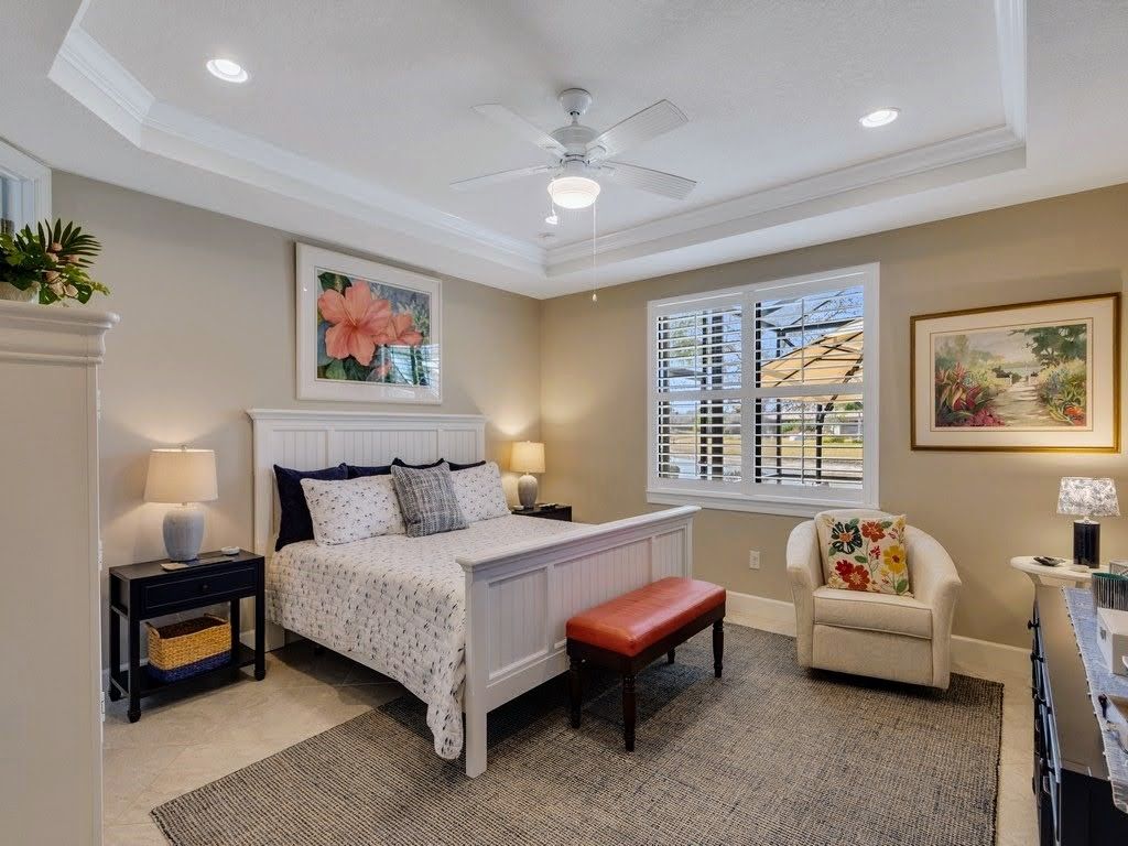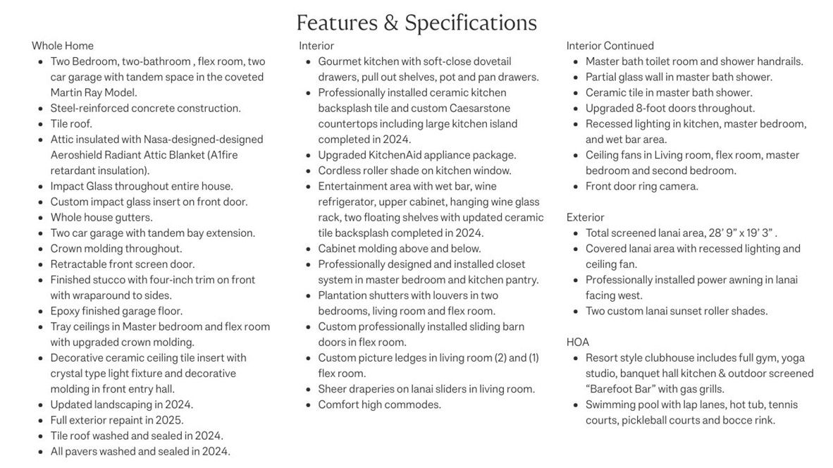 Discover this immaculately maintained 2017 rare Martin Ray model located in the highly sought-after Lakes at Waterway Village. Enjoy lake views from the spacious extended screened lanai with motorized retractable shade awning. 2 bedroom, 2 bathrooms plus den/office in this generous 2094 Sq Ft open-concept layout with multiple upgrades throughout. Impact glass. 2-car garage + bonus golfcart/workshop space. Chef’s kitchen w/butler’s pantry. It's just a short stroll from resort-style full amenities. The HOA also covers cable, internet, and individual yard care for a hassle-free Florida lifestyle
