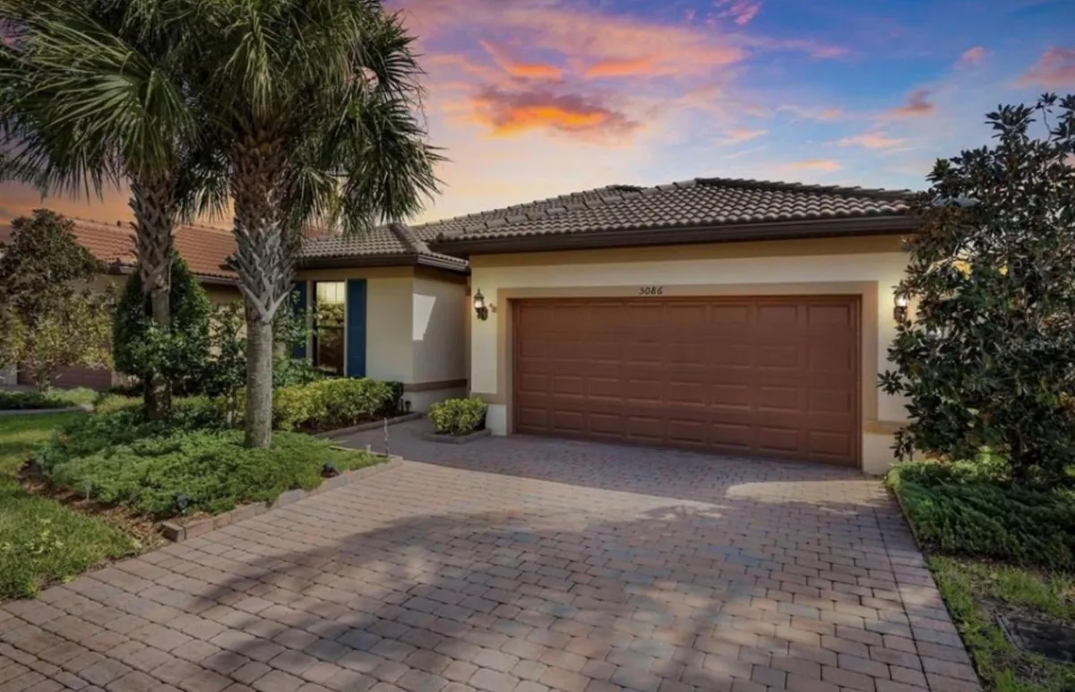 Enjoy a relaxed, resort-style lifestyle just minutes from the beach, where everyday living feels easy and effortless with no lawn or exterior maintenance to worry about. This beautifully updated 3-bedroom, 2-bath home with a 2.5-car garage conveys a durable barrel tile roof with a special roof treatment and a bright, open-concept layout designed for comfort and connection. The extended great room flows seamlessly into the main living areas, with ceramic tile in the common areas and new vinyl plank flooring in all bedrooms. A spa-like retreat in the renovated primary suite bathroom with a frameless glass shower, marble finishes, and sleek flush-mounted fixtures, while cordless window treatments throughout the home add a clean, modern touch. Hurricane impact windows and expansive 16-foot sliding glass doors open to the screened lanai, filling the home with natural light and highlighting peaceful lake views. Step outside to your private screened lanai with extended pavers for your morning coffee or quiet evenings while enjoying exceptional privacy with no rear neighbors for over 100 yards. Located just 3-minutes to the clubhouse, resort-style pool, and amenities, this home is well suited for both full-time living and a seasonal retreat. Homes in this community are highly sought after. 6 person jacuzzi conveys. Select images may be virtually staged to illustrate the home's layout and potential.