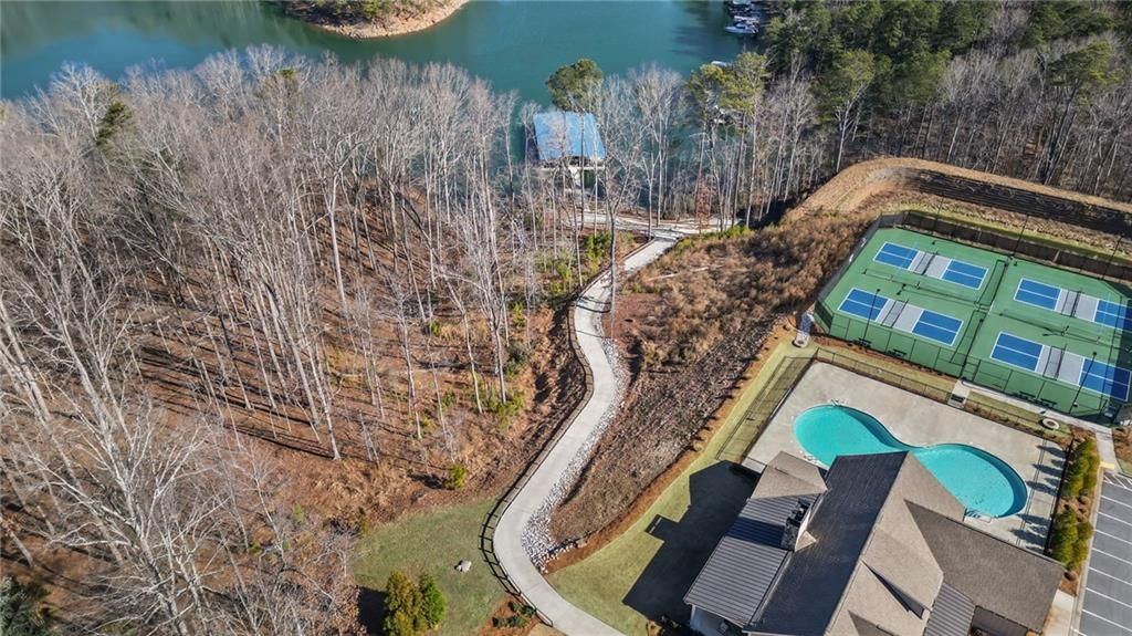 - Clubhouse, Dock, Curbs, Gated, Lake, Shopping, Pickleball, Pool, Sidewalks, Tennis Court(s)