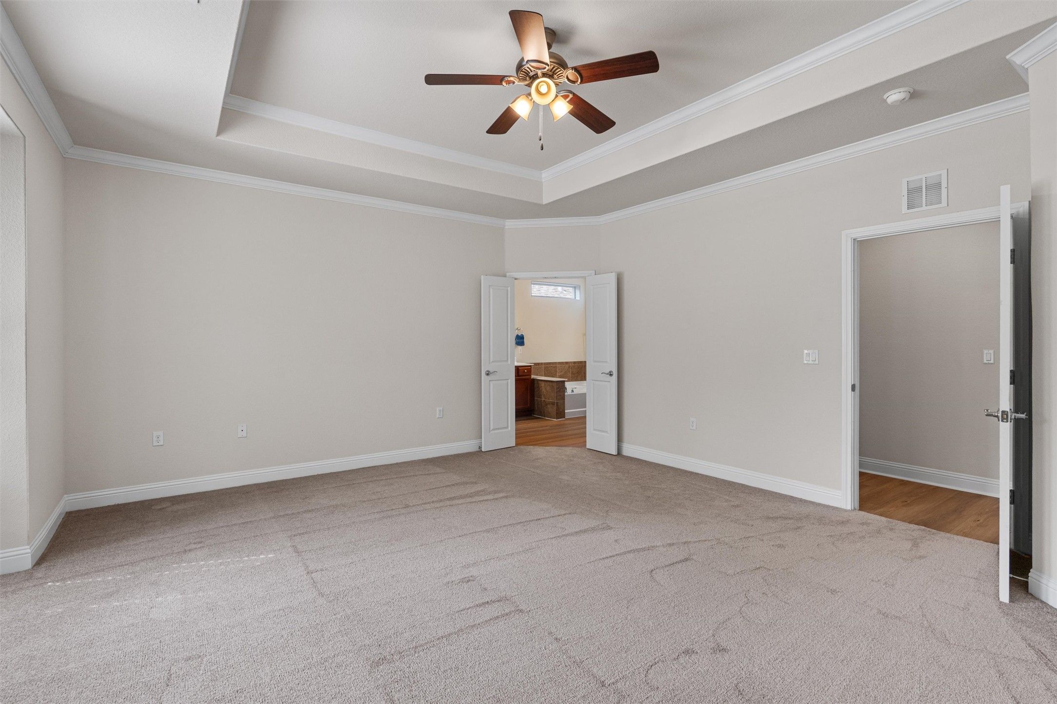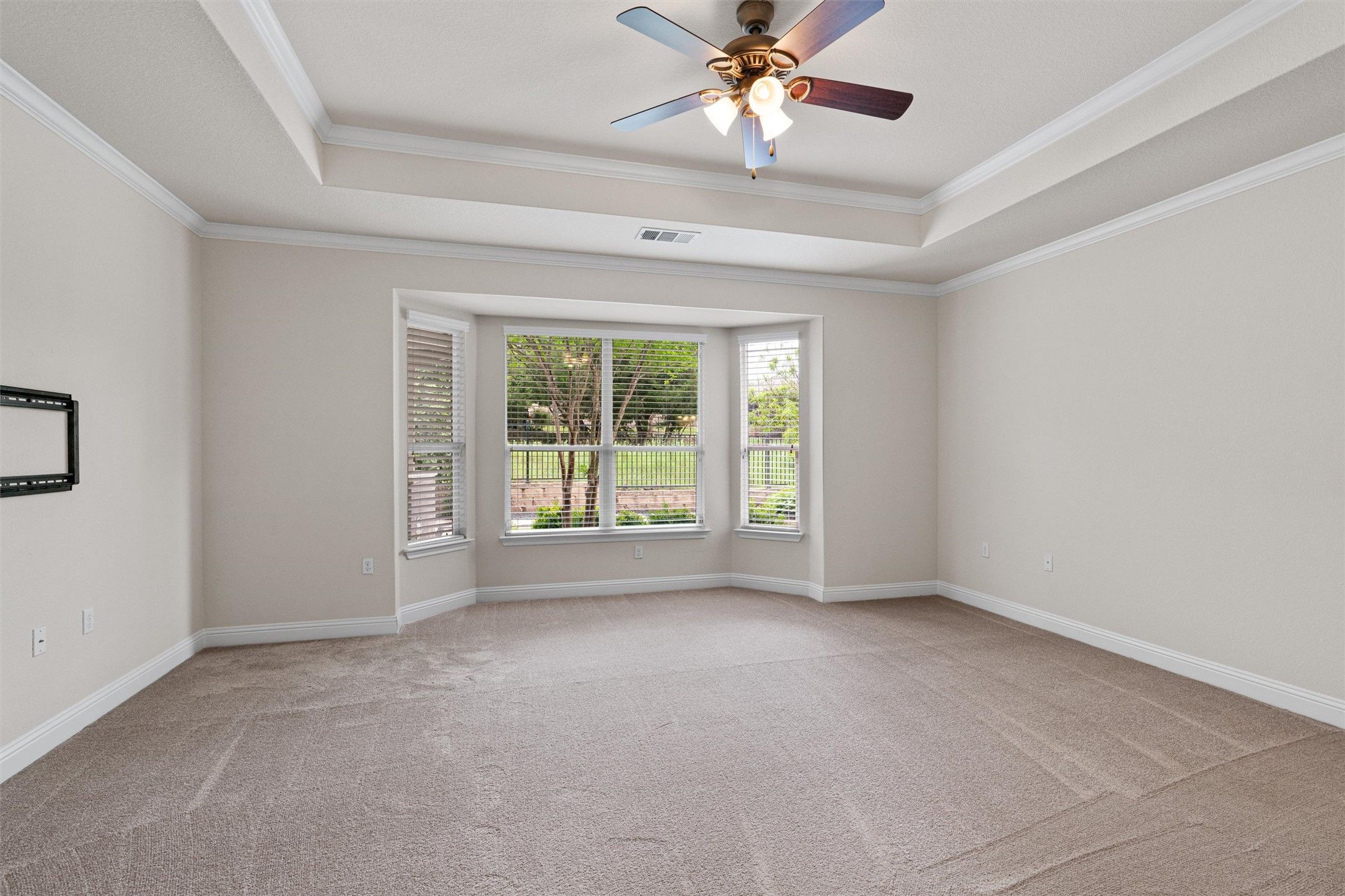 - Breakfast Bar, Built-in Features, Tray Ceiling(s), Ceiling Fan(s), Crown Molding, Separate/Formal Dining Room, Double Vanity, Entrance Foyer, Granite Counters, Multiple Dining Areas, Main Level Primary, Open Floorplan, Pantry, Recessed Lighting, Solar Tube(s), Study, Walk-In Closet(s)