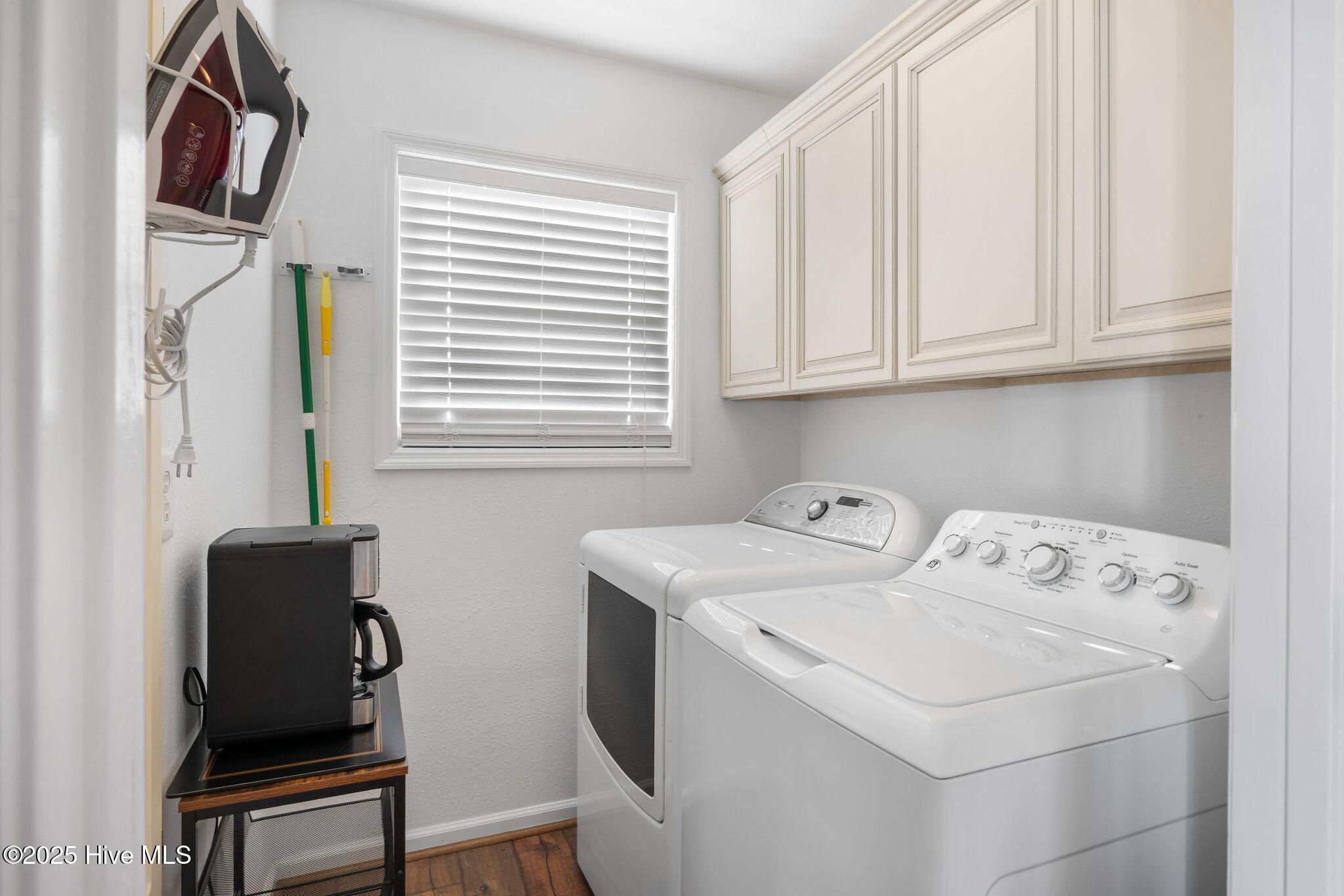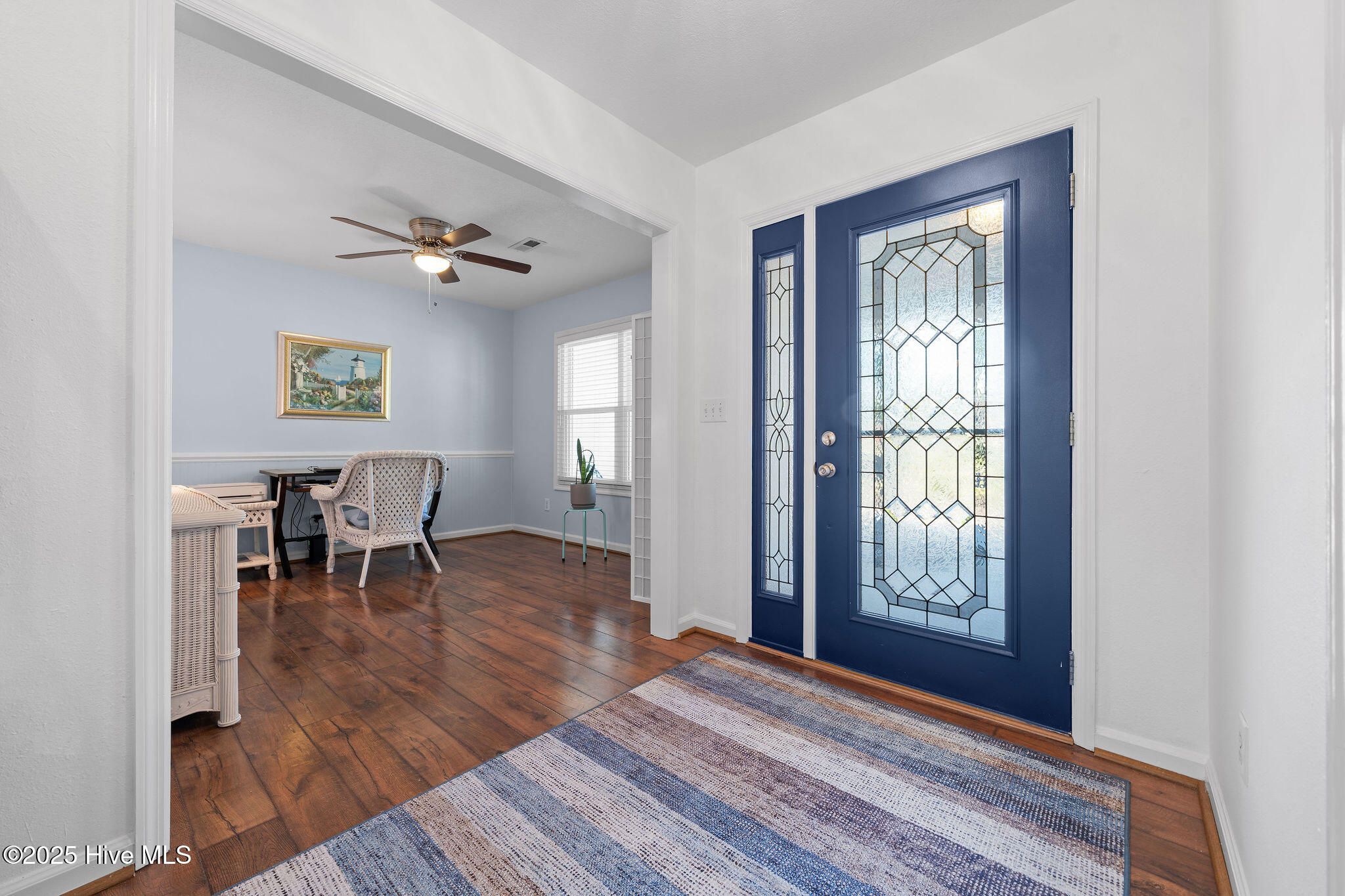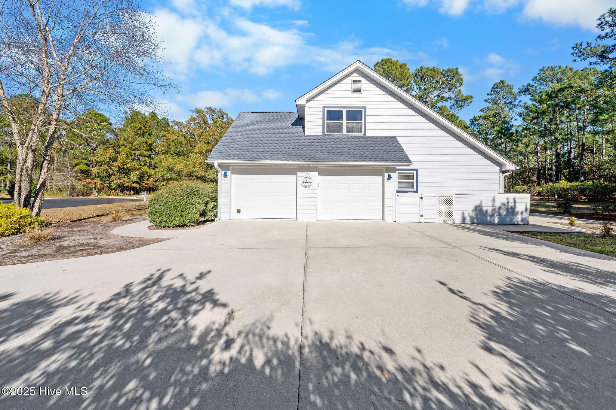 Welcome to this beautifully refreshed coastal residence set on a quiet cul-de-sac in the highly sought-after Winding River Plantation community. Offering approximately 1,700 square feet of comfortable living space and a peaceful back-to-nature setting, this home delivers exceptional privacy with mature trees and natural surroundings framing the rear of the property. A freshly painted exterior (2024), new 2023 roof, and crisp white coastal styling create strong curb appeal. A long, private driveway leads to an oversized side-load two-car garage with a new motor (2025) and excellent storage. New downstairs windows and updated landscaping further enhance the home's clean, modern presentation. Inside, the home feels bright and renewed thanks to a full interior repaint in February 2025 including ceilings, walls, trim, closets, and doors. The welcoming foyer leads into spacious living areas with attractive flooring and abundant natural light. A flexible front room is ideal as an office, den, or sitting room. The kitchen has been significantly updated with newer appliances (2022-2023), soft-close cabinetry (2025), and pending Lazy Susan additions for the final finishing touch. A dedicated laundry room with built-ins adds everyday convenience. The main-level primary suite feels private and comfortable, offering a large walk-in closet, double vanity, soaking tub, and walk-in shower. Two additional bedrooms both with charming chair rail accents share the layout with a renovated full bath upstairs featuring a refreshed vanity (2025) and added storage. Step outside to the screened-in porch, with a newly painted floor, overlooking a serene backyard surrounded by natural buffers. It's the perfect spot for morning coffee, afternoon reading, or evening relaxation with nature all around. If you are looking for a privately situated home in the amenity rich neighborhood of Winding River Plantation you have found it.