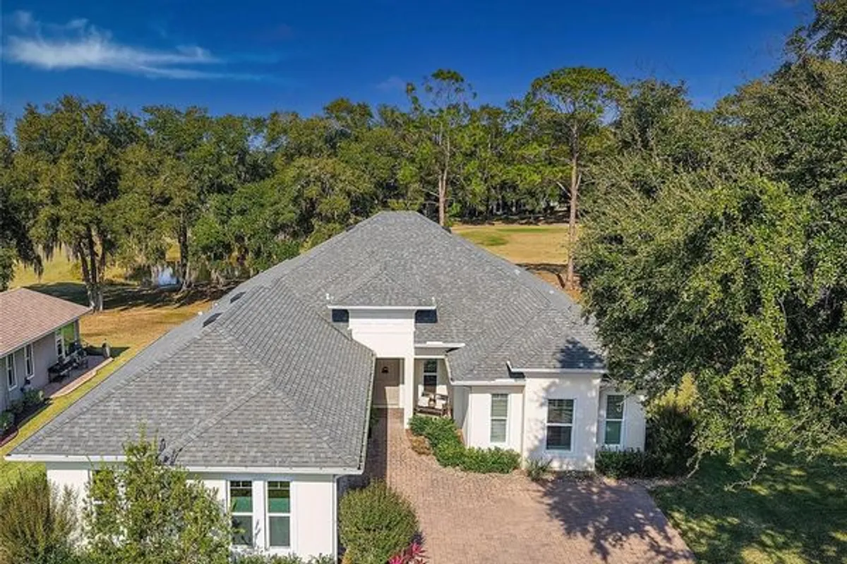 Welcome Home to luxury living in the double-gated Bella Vista area of the Harbor Hills Country Club, where this Craftsman Inspired home offers 4 bedrooms, 3 bathrooms, and 2,532 square feet of beautifully designed living space. Built in 2021 and positioned with stunning views of the Championship Golf Course, this pristine home captures tranquil views of two ponds and a greenspace surround for added privacy. BONUS: Seller is offering to pay the initiation fee to join the Club Membership of your choice with the purchase of this lovely home. The pavered driveway, neighborhood sidewalks, and mature landscaping create inviting curb appeal that complements the home’s Craftsman architecture. Inside you'll find tall ceilings, recessed lighting, and modern fixtures that highlight the bright, open design. The chef-inspired kitchen features an oversized island, natural stone countertops, expanded custom cabinetry for additional storage and workspace, cabinet pullouts, a walk-in pantry, double refrigerators, a bar sink, stainless-steel appliances, bar-top seating, and a dining area overlooking the golf course. The spacious living room is filled with abundant natural light and flows seamlessly to the expanded screened rear lanai where fairway and pond views create a peaceful space to relax or entertain. The extra-large primary suite offers room for a sitting area, dual walk-in closets, and a dramatic light filled bath with double vanities, a soaking tub , a walk-in shower, and a linen closet. Two additional bedrooms each offer en-suite bathroom access and walk-in closets, Bedroom 3 offers a built-in closet and en-suite bathroom access as well... with Bedroom 4 providing the flexibility to serve as an office or den, still providing a walk-in closet with an interior window. The side-loading garage includes two-car parking plus a golf cart garage, bike storage, natural light from windows, and a convenient side entry door. Harbor Hills Country Club enhances the lifestyle with an exceptional array of amenities available through membership. Residents enjoy championship golf, tennis, pickleball, a resort-style pool, gym, sauna, a full-service clubhouse with dining and social events, and marina access on Lake Griffin, which connects to the Harris Chain of Lakes for boating and fishing. The community is known for its rolling hills, mature landscaping, scenic elevation changes, and vibrant clubs and social activities. Conveniently located just minutes from The Villages, residents have quick access to dining, shopping, and entertainment while enjoying the peaceful, upscale quiet setting of Harbor Hills. CHECK OUT THE VIDEO TOUR BY CLICKING ON VIDEO TOUR 1 LINK.