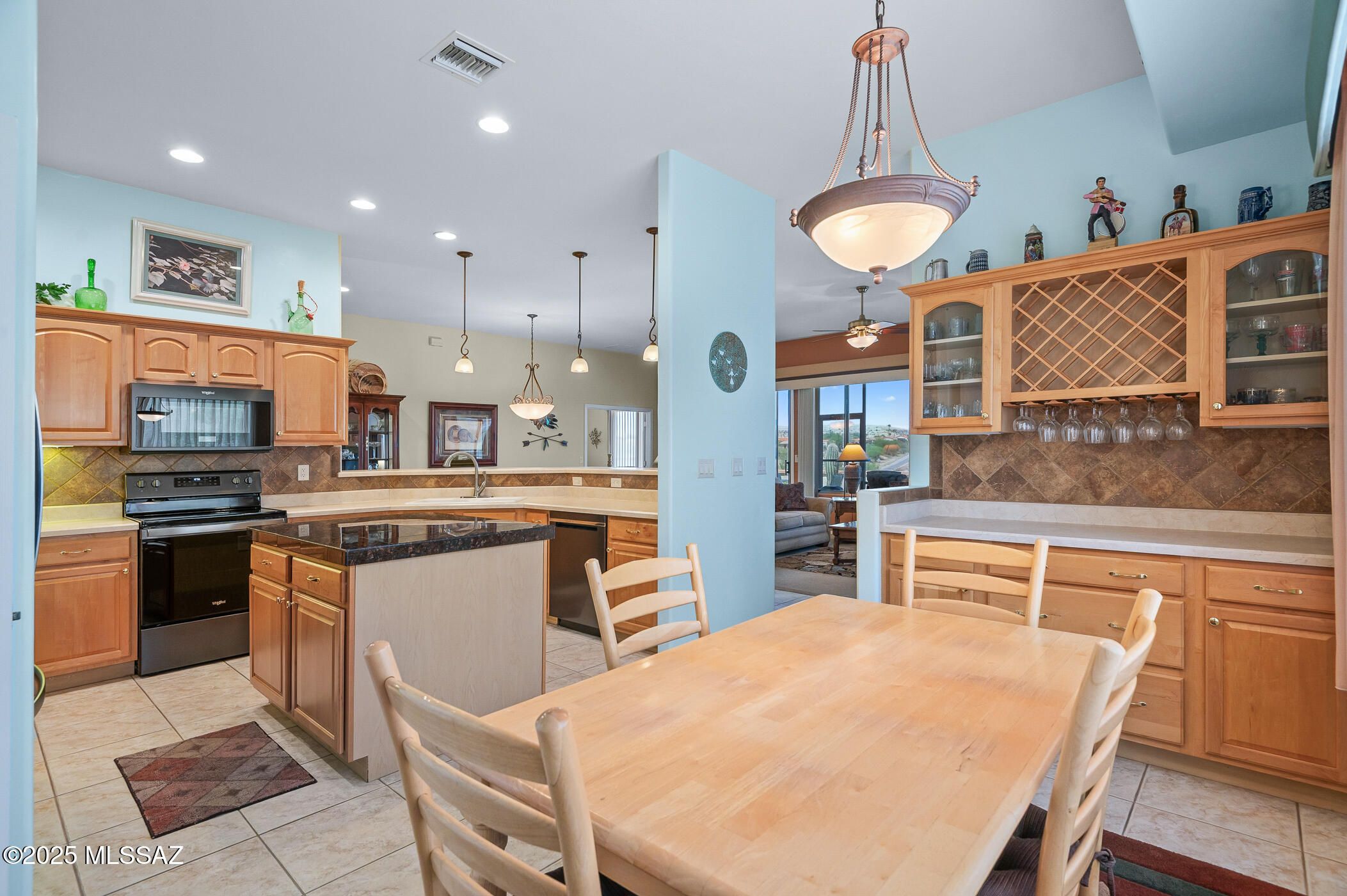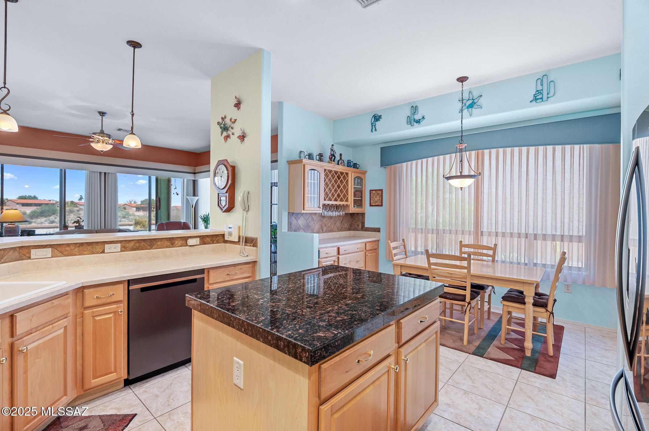 Experience the epitome of the serene Arizona lifestyle in this immaculate single-family residence, nestled in a prestigious gated community--a haven for retirees seeking tranquility and comfort. The original owner's loving attention is evident in every corner of this carefully maintained abode. Step inside to discover the expansive great room, boasting a 10-foot ceiling and large windows that frame the breathtaking desert panorama, inviting the natural splendor inside. The spacious kitchen is a culinary delight, featuring a generous center island, sleek black stainless steel appliances, and stylish pendant lighting. A charming breakfast nook, thoughtfully expanded, offers the perfect spot to enjoy your morning coffee or lighter fare meals. Double French doors lead to a versatile office