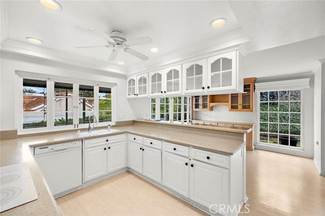 Welcome to 5092 Tero, a beautifully expanded residence nestled within the prestigious Gate 11 enclave of Laguna Woods. This highly sought-after Villa Terraza model offers approximately 1,950 square feet of thoughtfully designed living space, featuring two bedrooms, two bathrooms, and three fully enclosed additions that create a rare sense of openness, versatility, and comfort. Soaring vaulted ceilings enhanced by solar tubes bathe the home in natural light, while the elegant living room is centered around a warm wood-burning fireplace, creating an inviting atmosphere for relaxating or entertaining. Double French doors lead to a spacious, versatile room, ideal for hosting gatherings or intimate dinners. The enclosed additions provide remarkable flexibility, easily accommodating a sophisticated home office, sunroom, fitness studio, creative space, or private retreat - allowing the home to evolve with your lifestyle. Built-in cabinetry throughout offers exceptional storage while maintaining a clean, refined aesthetic. The gated front courtyard is a true sanctuary, featuring lush landscaping that creates a serene, resort-like setting for morning coffee or peaceful evenings under the California sky. The primary suite is equally impressive, highlighted by an oversized, walk-in closet d
