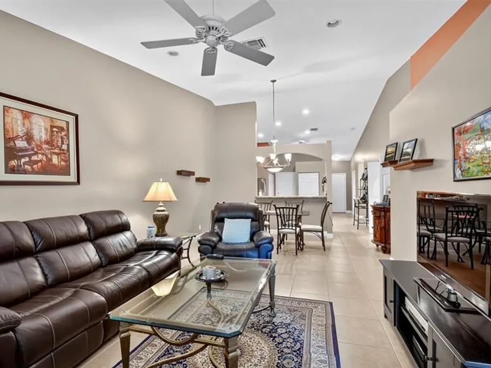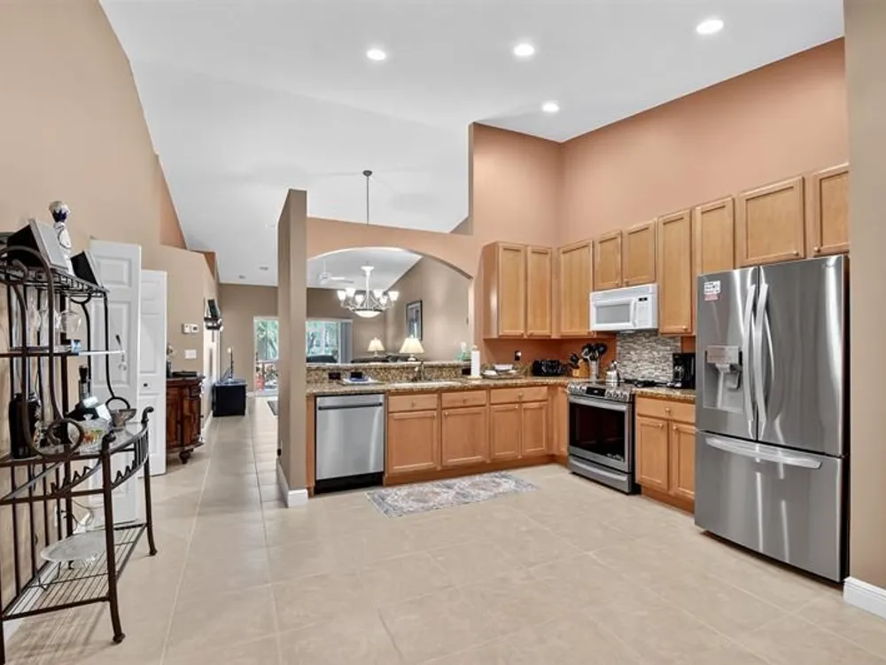 Newly priced for immediate sale! Welcome to this beautifully maintained villa with a lovely serene lake view! Enjoy lush tropical landscaping, spacious open living areas, vaulted ceilings, an updated kitchen with granite countertops and stainless appliances, and a screened patio perfect for relaxing. The large primary suite offers comfort and style. Located just one house away from the clubhouse and pool, this home is ideal for enjoying Florida living. Tuscany Bay is a gated, 55+ community. * This home qualifies for our Guaranteed Home Sale Program – ask us how!