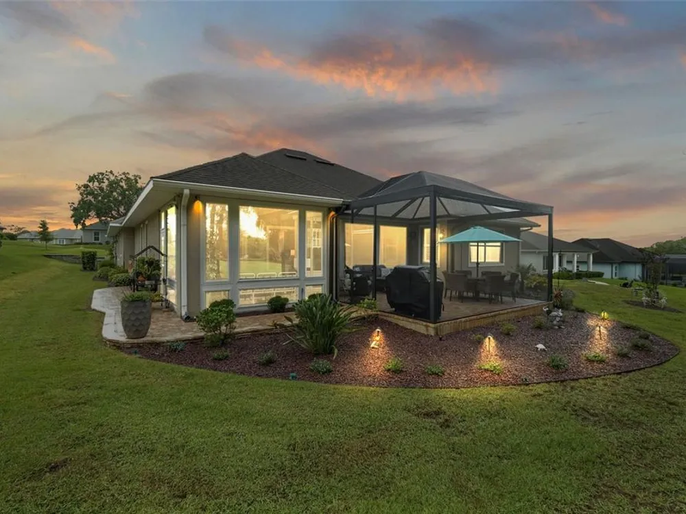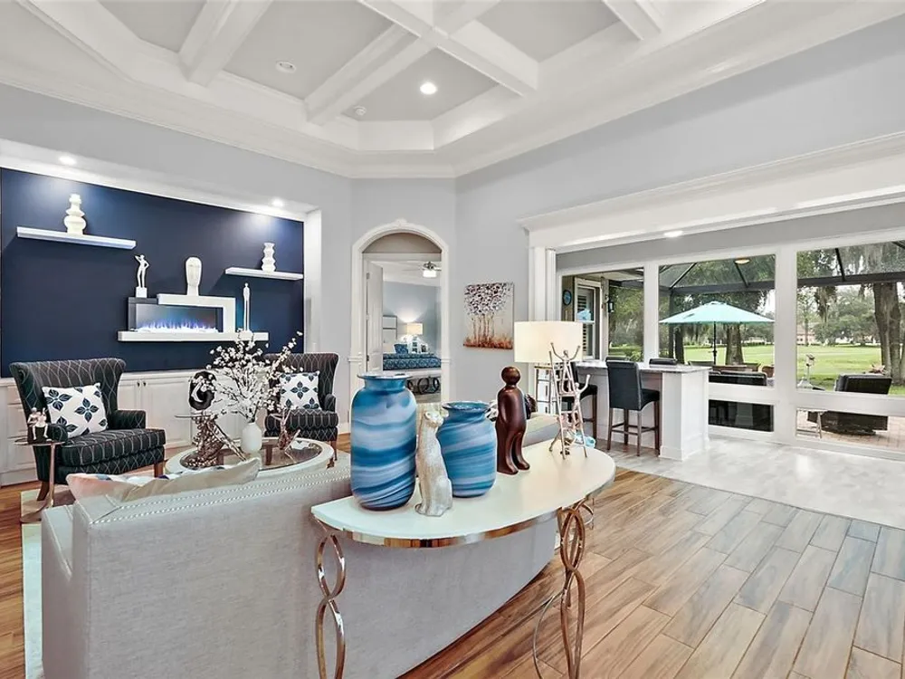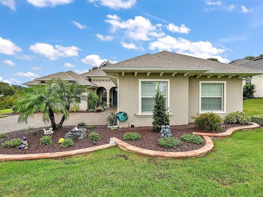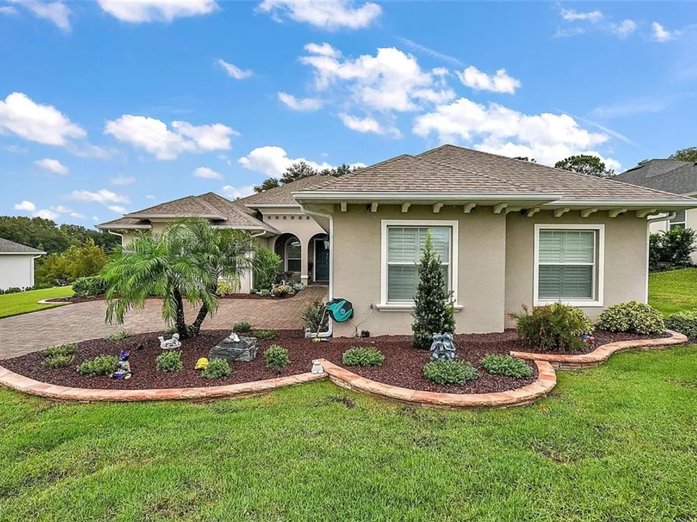 WOW! LOOK -->>AMAZING PRICE IMPROVEMENT!! YOU REALLY DO WANT TO SEE THIS EXQUISITE CUSTOM HOME, offering 2,900 SQUARE FEET OF LUXURY, located in the PREMIER GATED COMMUNITY of HARBOR HILLS®-BELLA VISTA, which also includes AMPLE SPACE TO ACCOMMODATE A POOL installation, if you choose to add one in the future. This is a former PARADE OF HOMES® MODEL HOME--offering GOLF AND POND FRONT views, 4-bedroom 3 bath, 2 1/2 car garage home, which EXUDES ELEGANCE--SURROUNDED BY LUXURY PROPERTIES. This is a SPECTACULAR ENTERTAINING home with an EXPANSIVE open floorplan! Seller has added FIRST-CLASS UPGRADES THROUGHOUT, including 459 SQUARE FEET OF ADDITIONAL COMFORT CONTROLLED LIVING SPACE in the CAT III Rated Enclosed Lanai, offering AMAZING SERENE GOLF & POND VIEWS, a built-in Wet Bar & Wine Refrigerator, CUSTOM 10' GRANITE BAR FOR SEATING and comfortable living/entertaining space with the Mitsubishi Mini Split HVAC system--leading to the large 20' x 18' PAVERED BIRDCAGE featuring PANORAMIC SCREENS for UNOBSTRUCTED VIEWS! When you first enter this home you will notice the GORGEOUS FOYER with custom millwork, high ceilings and 8' doors throughout! The DAZZLING COFFERED CEILING in the living room, with the accent wall featuring an ELECTRIC FIREPLACE and floating shelves; the CHEF'S DREAM KITCHEN with EXTRA-LARGE CUSTOM Quartz Island, High-End Stainless Steel DECOR and BOSCH Appliances, STACKED WALL CABINETS w/LIGHTING, pull-out drawers in base cabinets, Under and Over Cabinet Accent Lighting, built-in Pantry Closet, extra spacious, double-door appliance closet, DRY BAR with stacked cabinets and WINE REFRIGERATOR. The Dining Area--notice the STRIKING LIGHT FIXTURE; the large Primary Suite features a lovely tray ceiling w/crown molding, custom draperies, dual walk-in closets with built-in's, and the SHOW STOPPING 14' x 16' EN-SUITE BATH with enormous walk-in tiled shower, custom etched glass and glass block providing soothing natural light, a garden tub, dual vanities with vessel sinks, makeup vanity & quartz countertops as well as the Toto Wash Jet Bidet. Two of the additional bedrooms feature walk-in closets; the 4th bedroom is utilized as an Office/Den with built-in Cabinetry for optimal workspace. Additional features are STACKED CROWN MOLDING and PLANTATION SHUTTERS THROUGHOUT; Decorative Ceiling Fans; Solar Tubes; Whole House Nuvo H2O Water Filtration/Softener; Garage Trac Flooring; Pavered Driveway and Walkways; WI-FI controlled Irrigation System; Enhanced Landscaping with WI-FI Controlled Lighting; Outdoor Water Feature; Pull-down attic stairs with SPACE LIFT 5200 POWER ATTIC LIFT; and MORE! THIS IMPECCABLE HOME is sure to amaze! Every detail has been thought of! HARBOR HILLS® is located off of 441/27 in Lady Lake, offering 24-Hour Gated Access and ONE OF THE HIGHEST ELEVATIONS IN CENTRAL FLORIDA. It is a Country Club Community, offering Championship Golf, Tennis, a Resort Style Pool, Clubs and much more with Membership. All ages are welcome. IF YOU'RE LOOKING FOR QUALITY, SERENITY, AND COMMUNITY, THIS IS THE PLACE! Click on the attached video link for more... Schedule your private tour today!