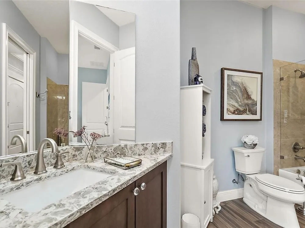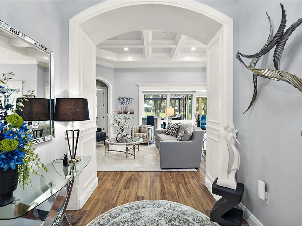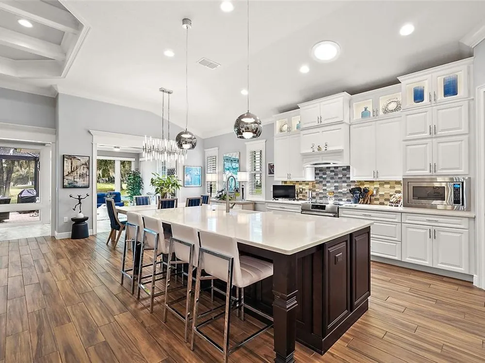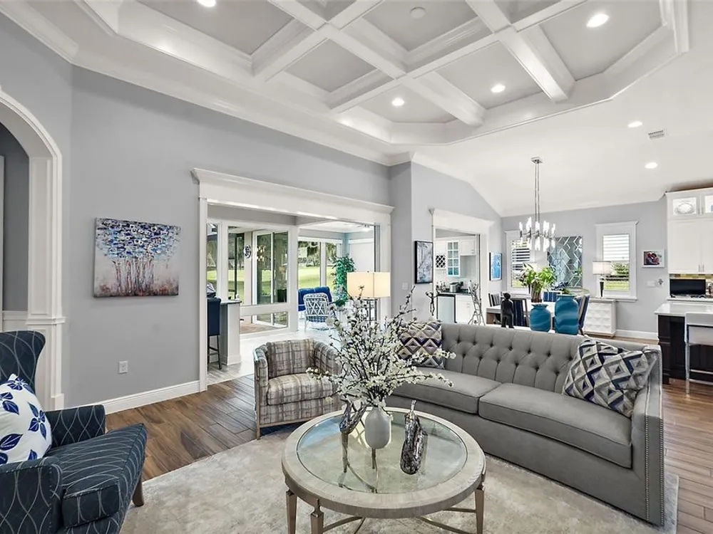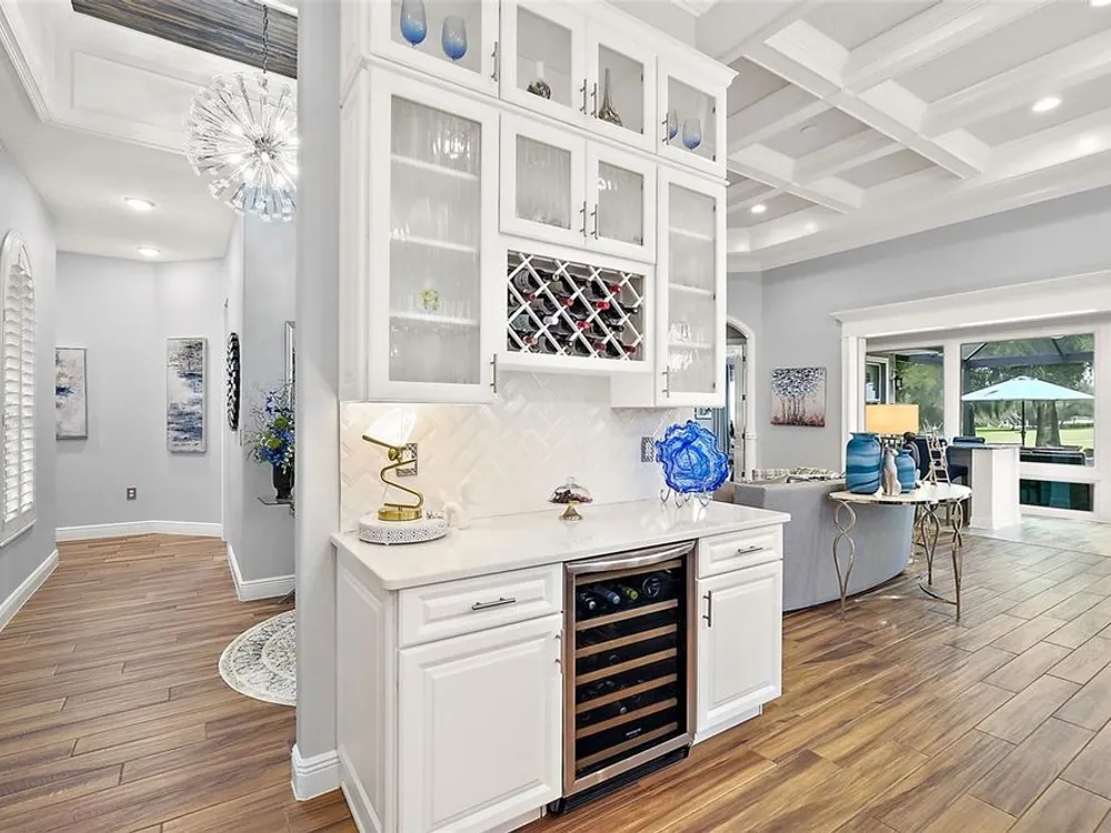 WOW! LOOK -->>AMAZING PRICE IMPROVEMENT!! YOU REALLY DO WANT TO SEE THIS EXQUISITE CUSTOM HOME, offering 2,900 SQUARE FEET OF LUXURY, located in the PREMIER GATED COMMUNITY of HARBOR HILLS®-BELLA VISTA, which also includes AMPLE SPACE TO ACCOMMODATE A POOL installation, if you choose to add one in the future. This is a former PARADE OF HOMES® MODEL HOME--offering GOLF AND POND FRONT views, 4-bedroom 3 bath, 2 1/2 car garage home, which EXUDES ELEGANCE--SURROUNDED BY LUXURY PROPERTIES. This is a SPECTACULAR ENTERTAINING home with an EXPANSIVE open floorplan! Seller has added FIRST-CLASS UPGRADES THROUGHOUT, including 459 SQUARE FEET OF ADDITIONAL COMFORT CONTROLLED LIVING SPACE in the CAT III Rated Enclosed Lanai, offering AMAZING SERENE GOLF & POND VIEWS, a built-in Wet Bar & Wine Refrigerator, CUSTOM 10' GRANITE BAR FOR SEATING and comfortable living/entertaining space with the Mitsubishi Mini Split HVAC system--leading to the large 20' x 18' PAVERED BIRDCAGE featuring PANORAMIC SCREENS for UNOBSTRUCTED VIEWS! When you first enter this home you will notice the GORGEOUS FOYER with custom millwork, high ceilings and 8' doors throughout! The DAZZLING COFFERED CEILING in the living room, with the accent wall featuring an ELECTRIC FIREPLACE and floating shelves; the CHEF'S DREAM KITCHEN with EXTRA-LARGE CUSTOM Quartz Island, High-End Stainless Steel DECOR and BOSCH Appliances, STACKED WALL CABINETS w/LIGHTING, pull-out drawers in base cabinets, Under and Over Cabinet Accent Lighting, built-in Pantry Closet, extra spacious, double-door appliance closet, DRY BAR with stacked cabinets and WINE REFRIGERATOR. The Dining Area--notice the STRIKING LIGHT FIXTURE; the large Primary Suite features a lovely tray ceiling w/crown molding, custom draperies, dual walk-in closets with built-in's, and the SHOW STOPPING 14' x 16' EN-SUITE BATH with enormous walk-in tiled shower, custom etched glass and glass block providing soothing natural light, a garden tub, dual vanities with vessel sinks, makeup vanity & quartz countertops as well as the Toto Wash Jet Bidet. Two of the additional bedrooms feature walk-in closets; the 4th bedroom is utilized as an Office/Den with built-in Cabinetry for optimal workspace. Additional features are STACKED CROWN MOLDING and PLANTATION SHUTTERS THROUGHOUT; Decorative Ceiling Fans; Solar Tubes; Whole House Nuvo H2O Water Filtration/Softener; Garage Trac Flooring; Pavered Driveway and Walkways; WI-FI controlled Irrigation System; Enhanced Landscaping with WI-FI Controlled Lighting; Outdoor Water Feature; Pull-down attic stairs with SPACE LIFT 5200 POWER ATTIC LIFT; and MORE! THIS IMPECCABLE HOME is sure to amaze! Every detail has been thought of! HARBOR HILLS® is located off of 441/27 in Lady Lake, offering 24-Hour Gated Access and ONE OF THE HIGHEST ELEVATIONS IN CENTRAL FLORIDA. It is a Country Club Community, offering Championship Golf, Tennis, a Resort Style Pool, Clubs and much more with Membership. All ages are welcome. IF YOU'RE LOOKING FOR QUALITY, SERENITY, AND COMMUNITY, THIS IS THE PLACE! Click on the attached video link for more... Schedule your private tour today!
