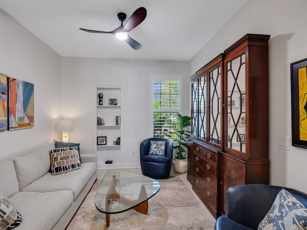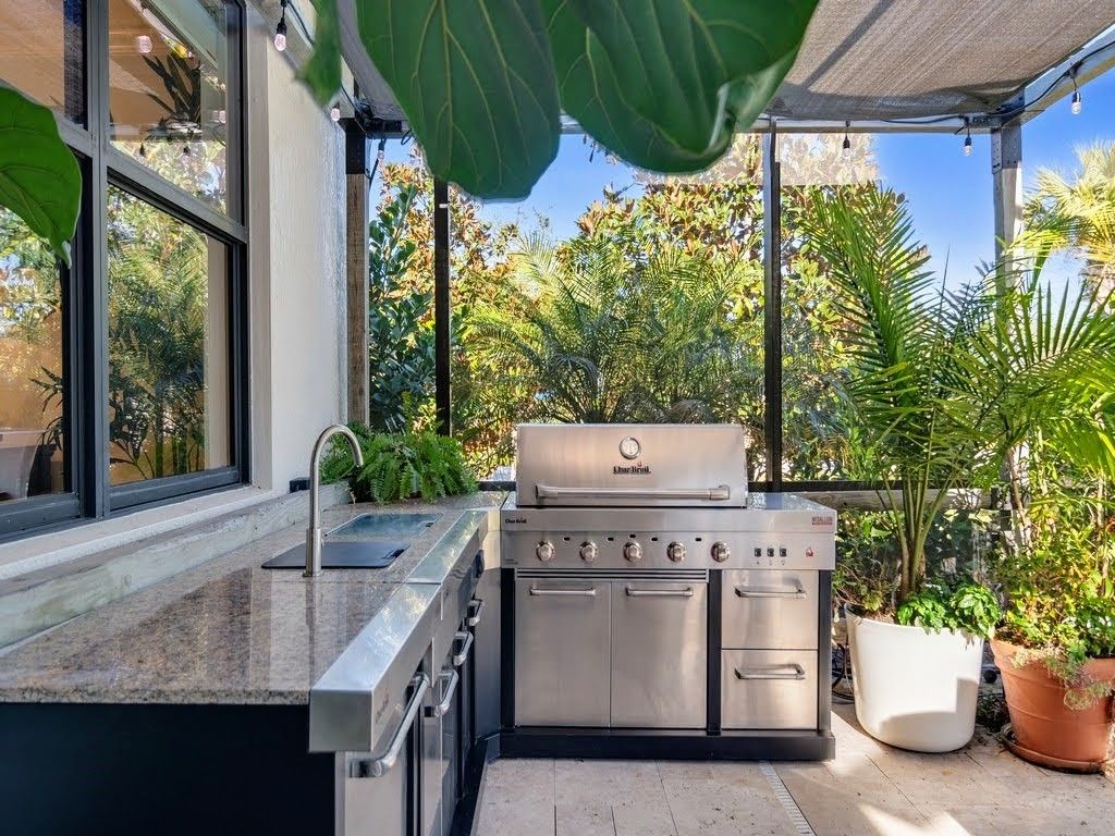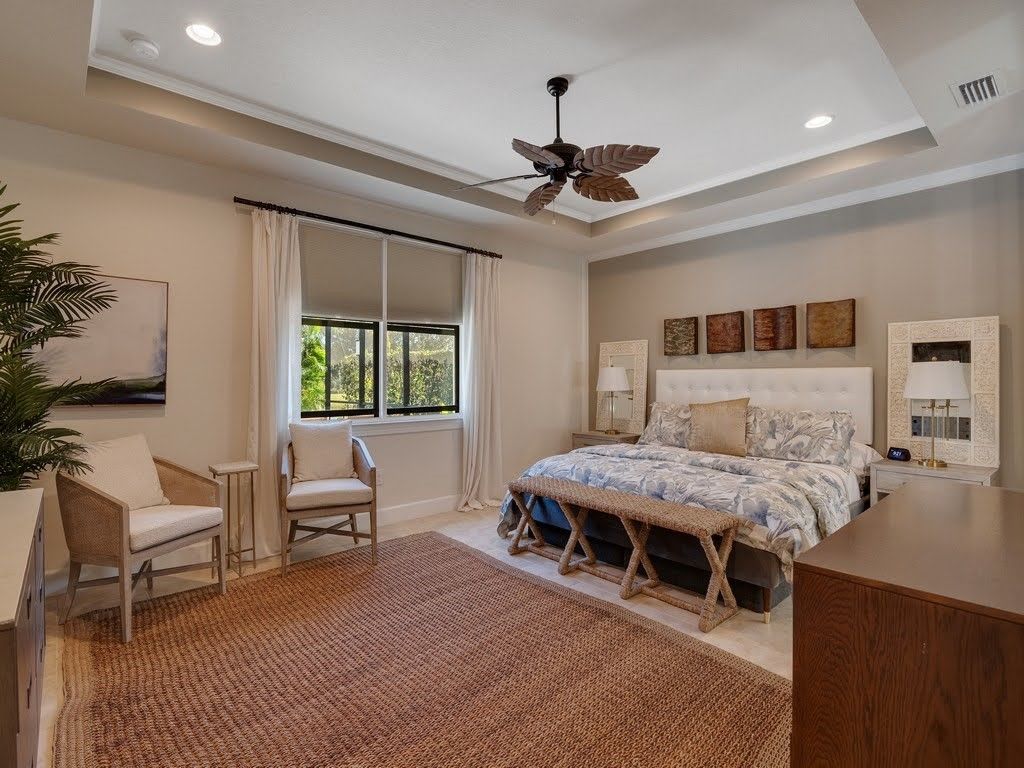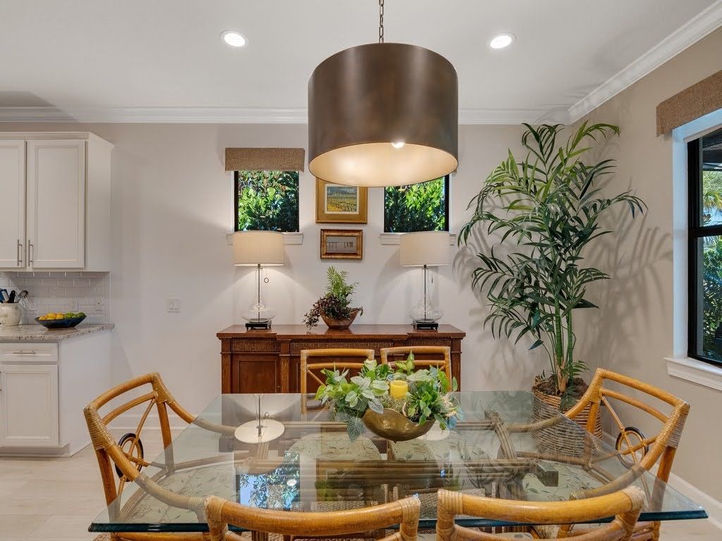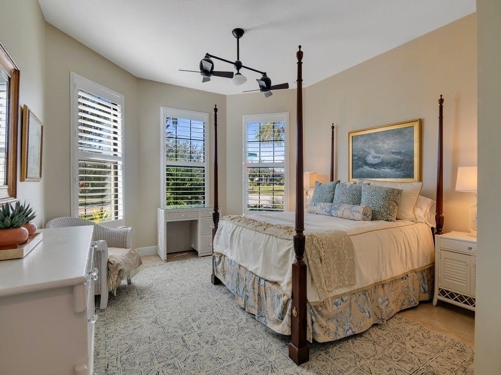 Welcome to your tropical paradise! Stunning four-bedroom, three-bathroom featuring a saltwater pool/spa, Offered turnkey for your immediate enjoyment this winter. Enhanced w/impact glass and numerous upgrades (see slide). Exceptional indoor/outdoor entertaining, complete with a full-service outdoor kitchen and bar in a beautifully landscaped backyard with lake views. Located on a corner lot in the desirable Lakes at Waterway Village gated community, just a short stroll from resort-style amenities. HOA includes cable, internet, and individual yard care. A unique opportunity not to be missed!