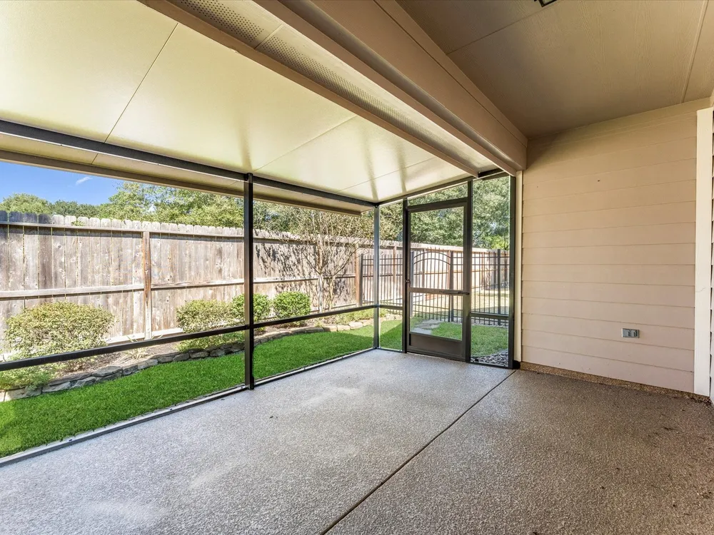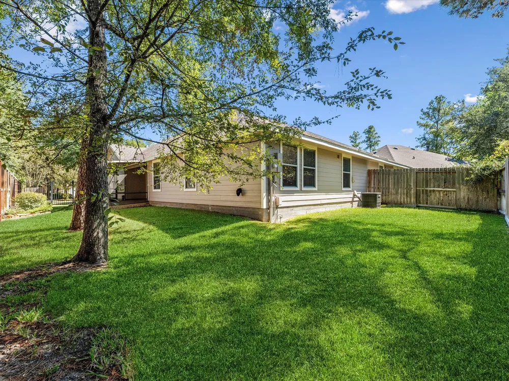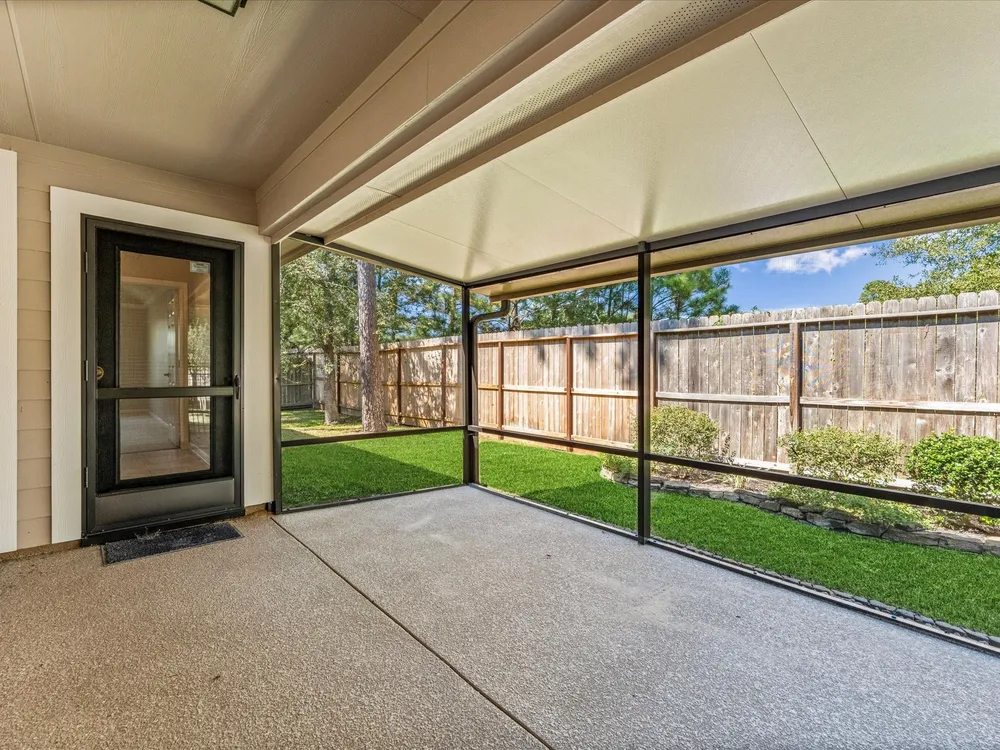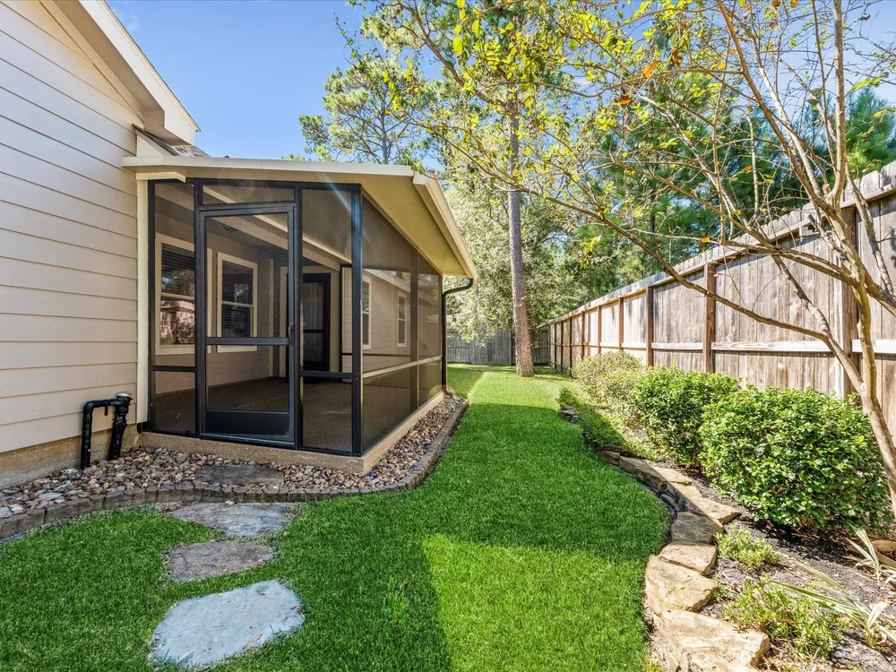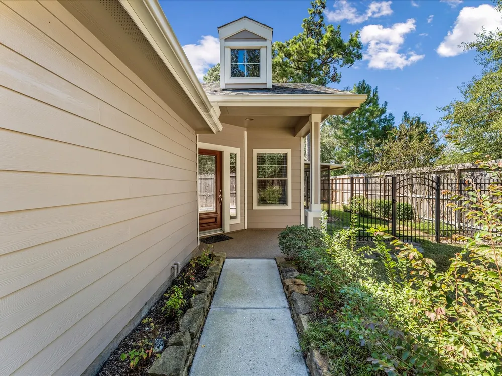 This charming duplex sits perfectly at the end of a quiet cul-de-sac, offering both privacy and tranquility in desirable Conroe. With 1,619 square feet of thoughtfully designed living space, this two-bed, two bath home welcomes you with fresh paint throughout the main areas, bedrooms, and fantastic study located off the entry. The open kitchen has upgraded granite countertops & tile floors through the main interior. The screened-in porch extends your living space outdoors while overlooking the beautiful back yard next to a green belt that's ideal for entertaining or simply relaxing. Located in the gated neighborhood of Windsor Lakes, The Woodlands and all its amenities are just minutes away, An amazing end of cul de sac location provides extra privacy and natural light, making it a perfect retreat from the hustle and bustle while maintaining easy access to shopping, restaurants, and so many attractions. Fantastic community center with on sight activities coordinator. Must see!