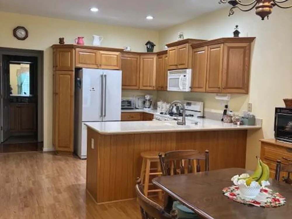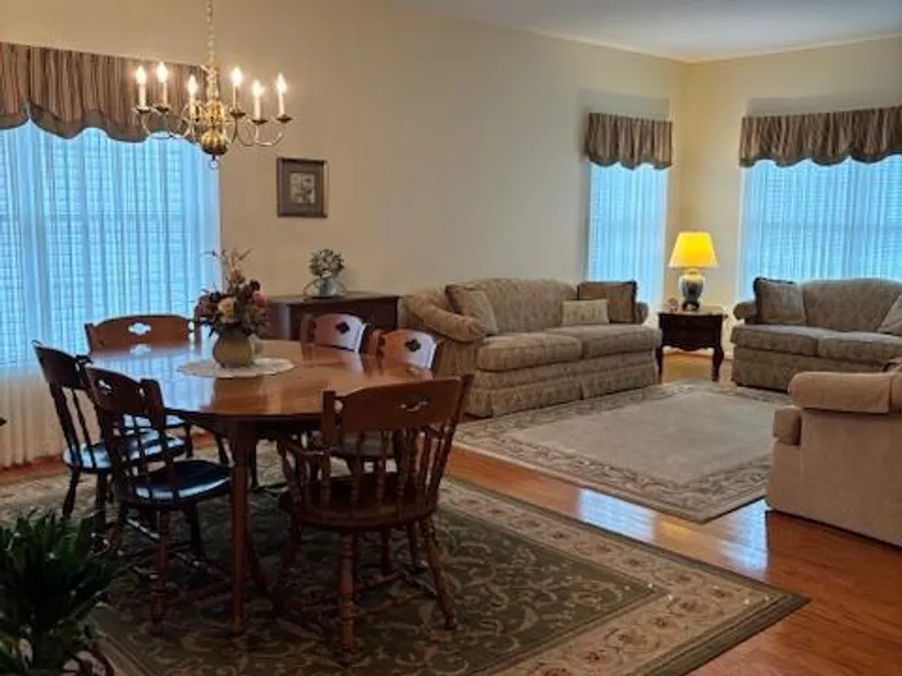 Welcome to this expanded Arlington Model located in the desirable Homestead community of Mansfield! Offering 1,944 sq ft of comfortable living space and a 2-car garage, this well-maintained home is perfect for those seeking both functionality and charm. The garage features a convenient side entry door and is equipped with an electric garage door opener. Step into the kitchen and enjoy its warm oak cabinetry, durable Corian countertops, gas stove, built-in microwave, and dishwasher. The kitchen also includes a breakfast bar with space for stools, as well as a cozy dining nook perfect for a table and chairs. The open-concept living and dining area features beautiful hardwood flooring, creating an inviting space for gatherings and everyday living. This home includes 2 generously sized, carpeted bedrooms. The primary bedroom offers a large walk-in closet and a private full bath for your comfort and convenience. For added comfort and flexibility, there is also an additional room that can be used as a TV room, home office, hobby space, or whatever suits your lifestyle. The laundry room is fully equipped with a washer, dryer, wash sink, and additional cabinetry and countertop space. It also houses the water heater and heating system for easy access. Step out back to a lovely patio area—ideal for relaxing or entertaining guests. Don’t miss your opportunity to own this wonderful home in a vibrant, sought-after 55+ community!