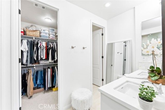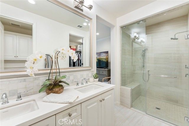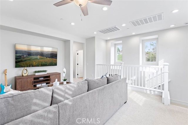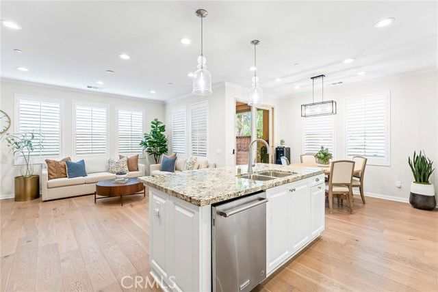 Outstanding corner home offering comfortable 55+ resort-style living in Rancho Mission Viejo. The open main living area features wide plank French oak flooring, 9-foot ceilings and a kitchen with seating at the granite island, stainless steel appliances, soft close drawers, abundant cabinetry, and a separate dining area flowing into the family room. Sliding doors open to a covered patio and additional side yard space for easy indoor-outdoor living. The main level includes a primary suite with custom woodwork, dual sinks, marble backsplash, zero-entry shower and spacious walk-in closet. Also on the main level is an additional bedroom, full bath, spacious laundry room with ample cabinetry, and direct garage access. Upstairs offers a large private retreat with a secondary living area, bedroom and full bath. The home also includes AC, whole house fan, fresh interior paint and crown molding, as well as plantation shutters throughout. Unwind at the 55+ amenities, including but not limited to the Getaway Clubhouse (a short walk away) or The Outlook where you can enjoy the lap pool, cabana space, indoor-outdoor dining areas, barbecues, fire pits and TVs. Additional amenities include fitness centers, social clubs, activities and more. When family/friends visit, venture over to the nearby Hilltop Club pool, bar, gym, spa, bocce ball and arcade. Close to shopping, dining and South Orange County destinations. Do not miss this exceptional opportunity!
