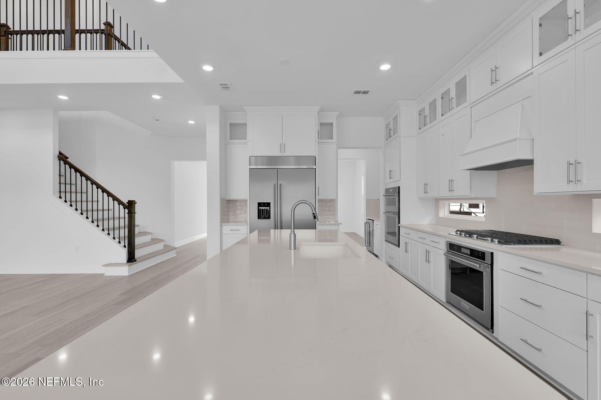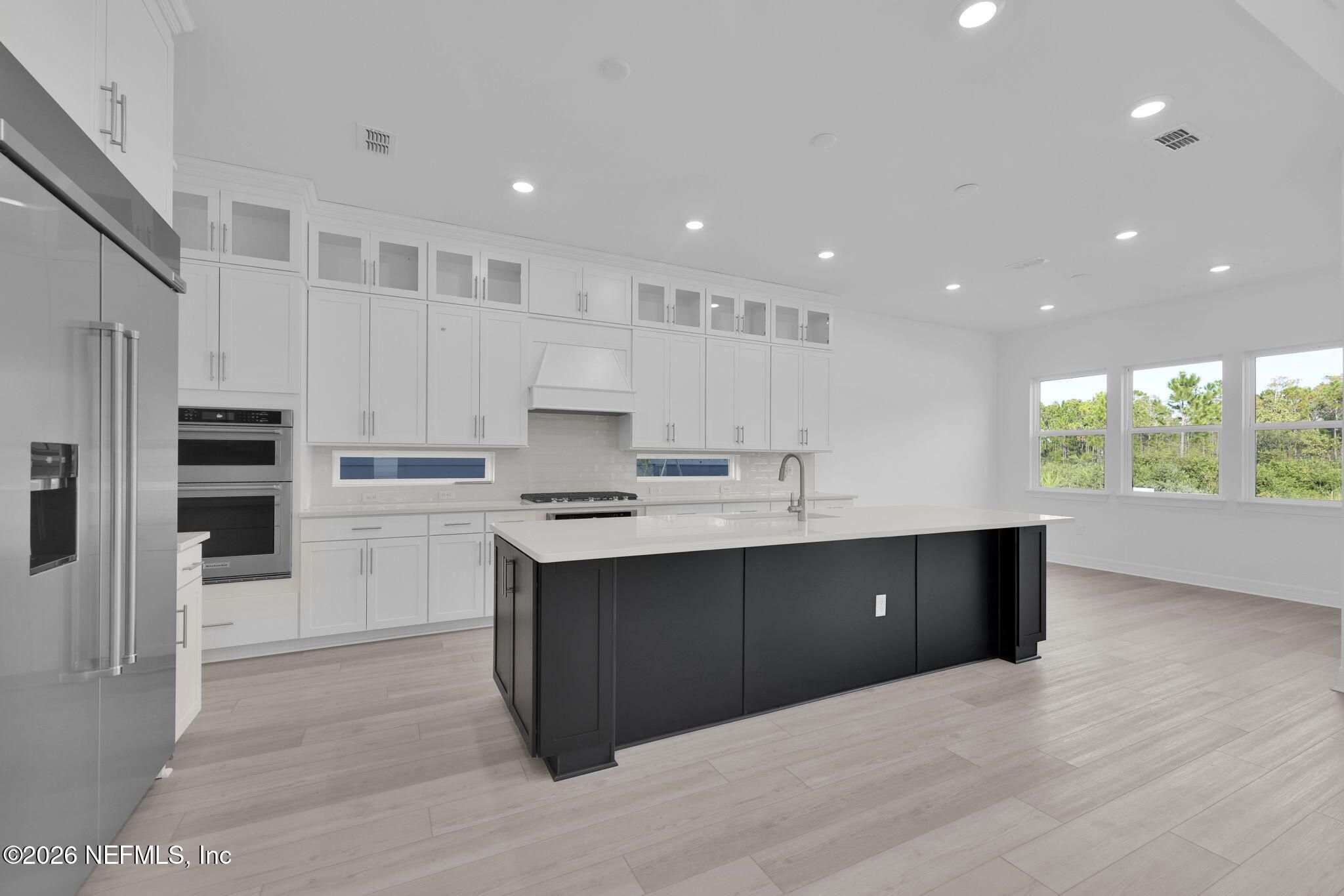 This 4,248 sq ft, 5BR/5BA home with an enclosed flex room blends thoughtful design with everyday comfort. Double front doors open to a dramatic 22-foot ceiling in the gathering room, creating a light-filled, open feel. The kitchen is both beautiful and functional with ceiling-height cabinetry, KitchenAid appliances, a 48-inch built-in refrigerator, and an oversized island made for gathering. A butler's pantry connects seamlessly to the formal dining room, while a separate café nook offers space for casual meals. Luxury vinyl plank flooring flows throughout the main living areas. The owner's suite features a sitting area, two walk-in closets, and a spa-inspired bath with soaking tub. A private guest suite adds flexibility. Enjoy the expansive covered lanai and spacious backyard with room for a pool. Designed to live beautifully.