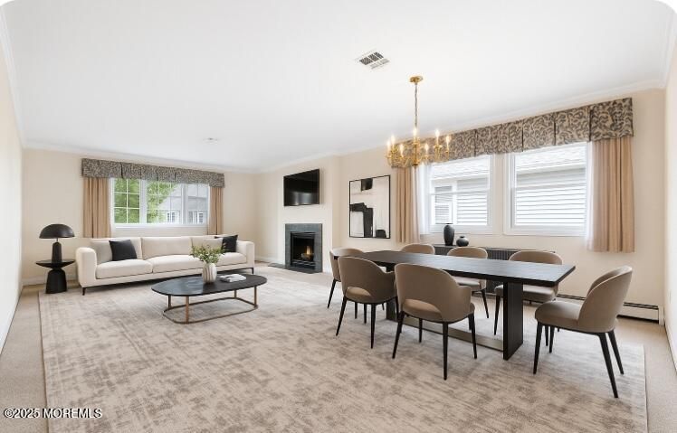 PRICE JUST REDUCED!!!! BEAUTIFULLY maintained CASTLE HARBOR model located in the desirable 55+ community of Holiday City Heights. This spacious 2-bedroom, 2-bath home offers 1,638 square feet of comfortable living space. The features include a grand foyer with attached interior access to the garage, this sunny breezeway leading to a open floor plan with generous room sizes. The large living and dining areas flow seamlessly into the kitchen, which offers natural light overlooking an expanded additional bonus room space. The primary suite includes a private full bath and walk-in closet, while the second bedroom and bathroom are perfect for guests or a home office. Additional features include a full laundry room, gas fireplace and central A/C.