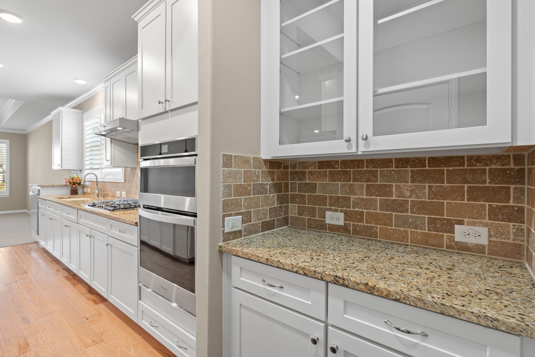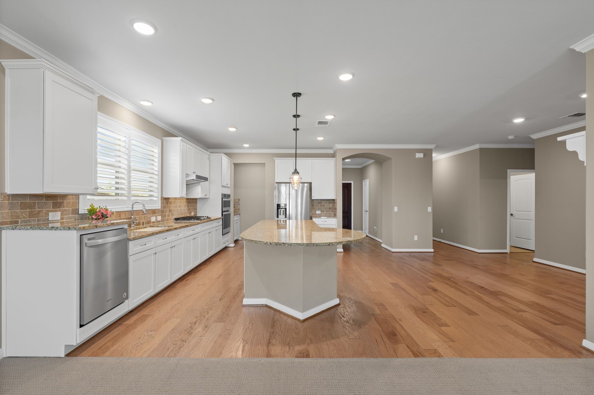 KOKLER GENERATOR provides peace of mind in this 3BR-2BA + study Martin Ray. Shutters enhance main living areas, wood flooring flows through main spaces. Great Rm connects to huge Island Kitchen hallmark of this beloved floor plan showcasing bountiful white cabs, miles of counter space, pull-out drawers, upgraded pendants & enhanced gathering rm lighting, BUTLER’S pantry & walk-in pantry elevate everyday living, study w/French doors provides privacy, primary filled w/natural light features spa shower w/flush entry, split vanities w/upgraded rectangular sinks, med. cabinet & spacious walk-in closet, BA 2 offers all-shower upgrade, secondary BRs positioned for privacy, laundry rm enhanced w/cabs plus drop zone cab. Water filtration system 4-ft garage ext. w/windows, storm door, 4-sides brick, covered patio w/extension overlooks professionally landscaped yard creating serene outdoor retreat. All appliances convey!