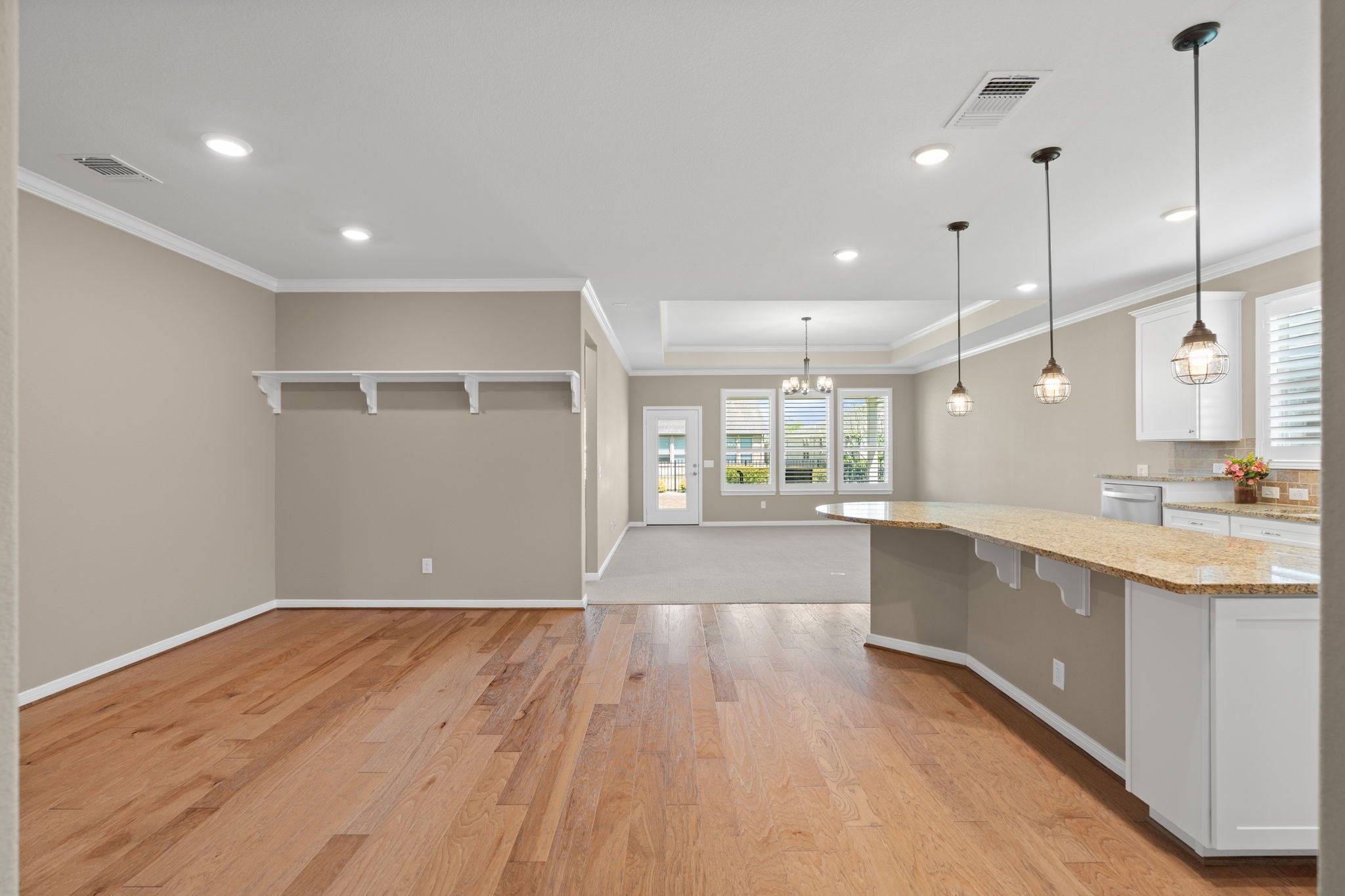 - Butler Pantry, Crown Molding, Double Vanity, Handicap Access, High Ceilings, Kitchen Island, Kitchen/Family Room Combo, Pots & Pan Drawers, Pantry, Self-closing Cabinet Doors, Self-closing Drawers, Separate Shower, Walk-In Pantry, Window Treatments, Ceiling Fan(s), Kitchen/Dining Combo, Programmable Thermostat
