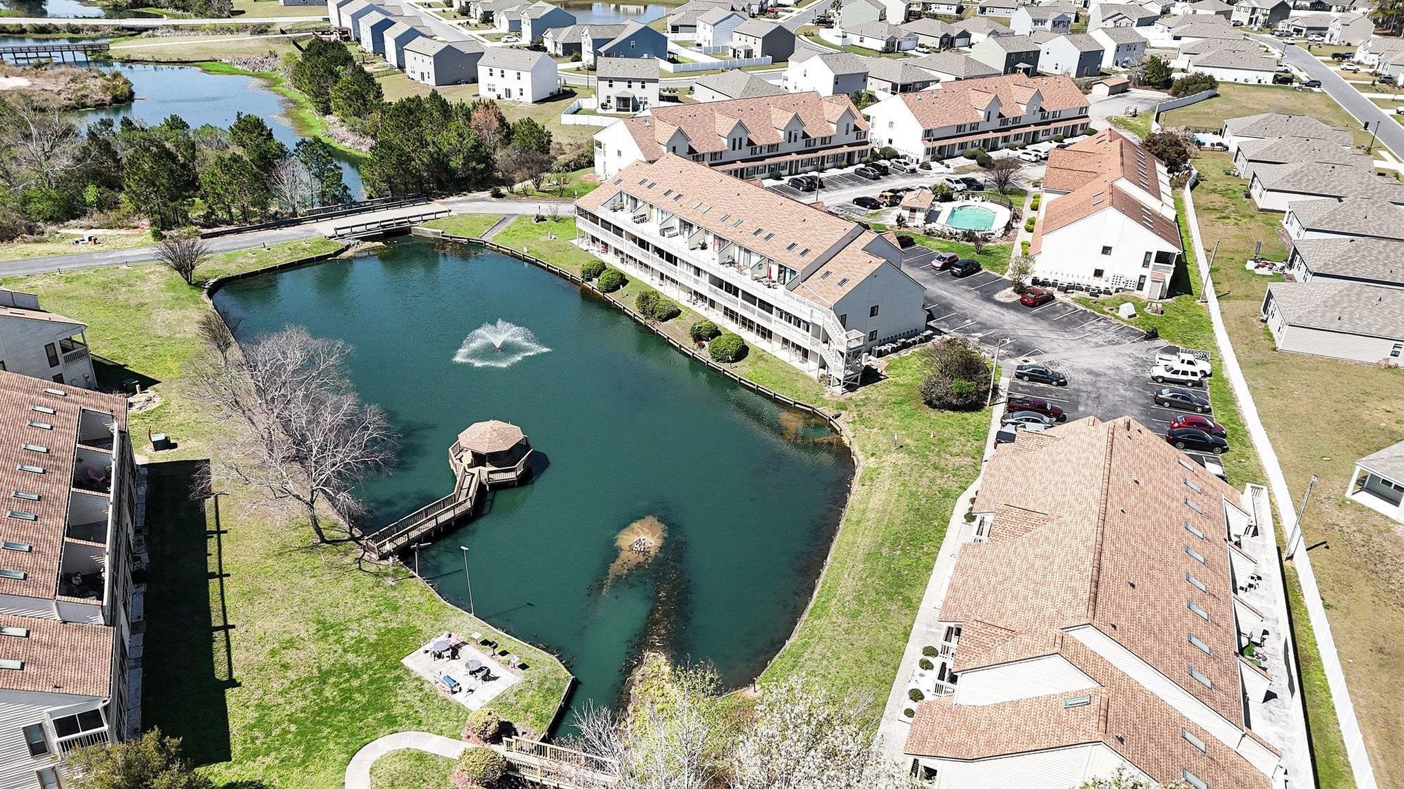 This delightful 2 bed 2 bath end unit condo located in the popular Fairwood Lakes community in Island Green is a must see! Beautifully furnished and decorated, this immaculate turnkey unit has been updated with a new HVAC in 2024, stainless microwave, stove and refrigerator in 2021, glass enclosed balcony, new flooring, new upscale lighting and premier ceiling fans. Well-designed floor plan features hardwood flooring in the foyer, living areas and kitchen, vaulted ceilings throughout that give the whole condo a light and airy feel and a split bedroom plan. The main floor boasts a spacious living room with ceiling fan, skylights and double sliders leading to the balcony, dining area with seating for four, and a fully equipped kitchen with abundant cabinet and counter space and stainless appliances. The master bedroom with large closet, a full bath with vanity and tub/shower and a stack washer and dryer complete the main floor. A spiral staircase leads to the second-floor sunlit loft guest suite with ceiling fan, a skylight, full bath with vanity and tub/shower and cedar walk in closet. The expansive balcony with ceiling fan, fireplace and plentiful seating has been enclosed and provides a tranquil area you can enjoy year-round whether sipping your morning coffee or relaxing with friends and family at the end of the day. Only steps from the pool and low HOA dues include water/ sewer, trash, outdoor pool, landscaping, pest control, Spectrum cable/internet, and exterior building insurance. Great central location just minutes from shopping, restaurants, golf, the airport, Market Common, and, best of all, the beach and everything the Grand Strand has to offer in amusements and entertainment! Perfect as a primary home, weekend retreat or as an investment property. This is a fantastic opportunity! Make an appointment to view this charming condo today!