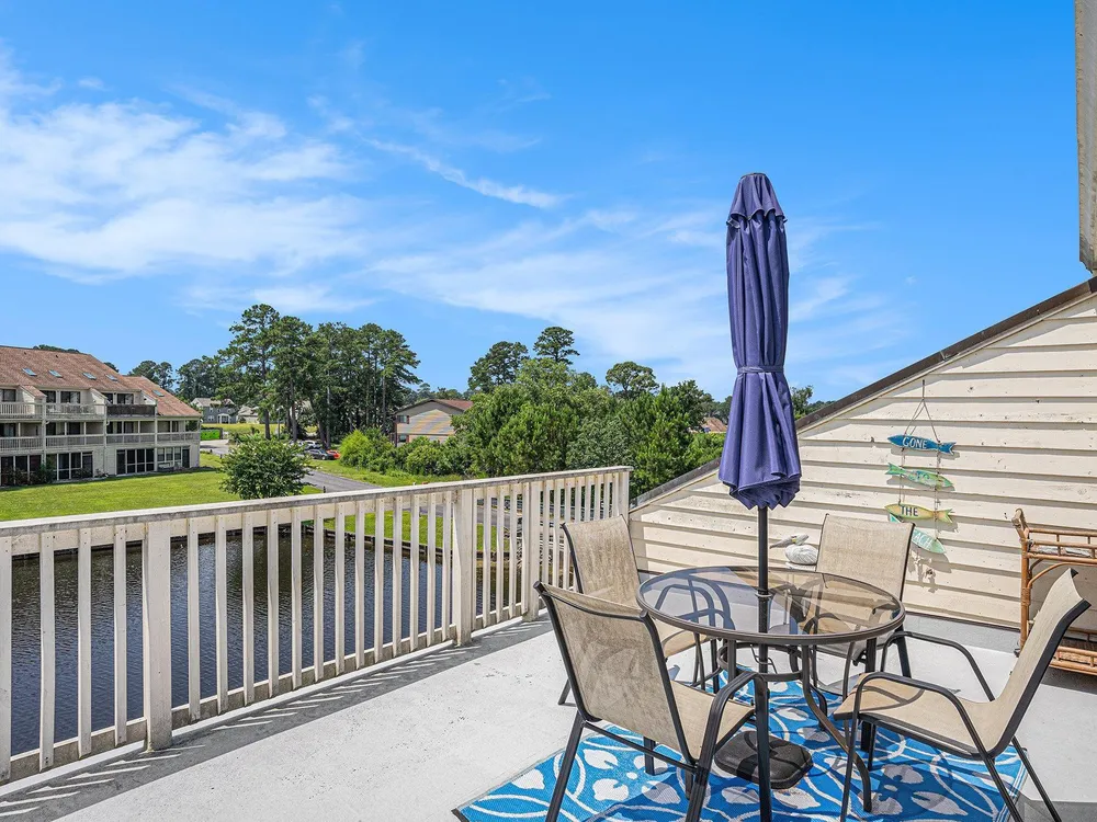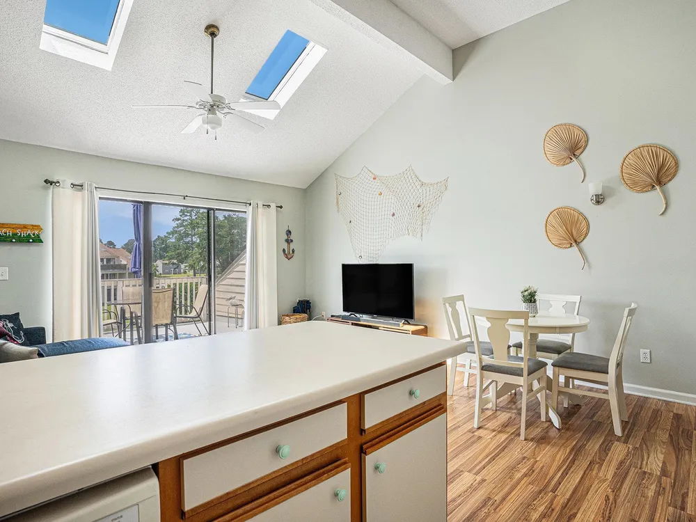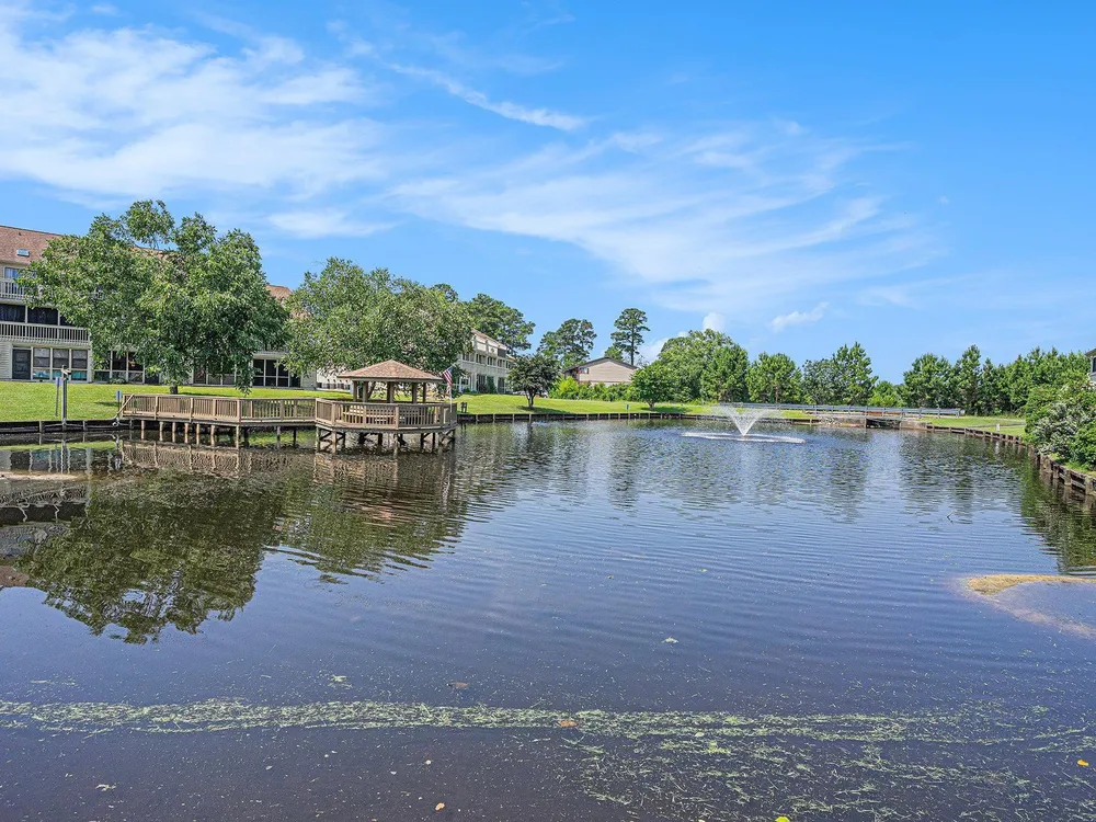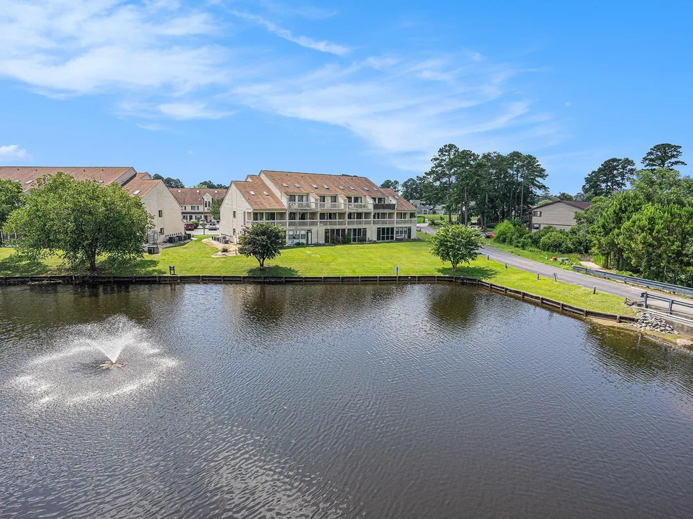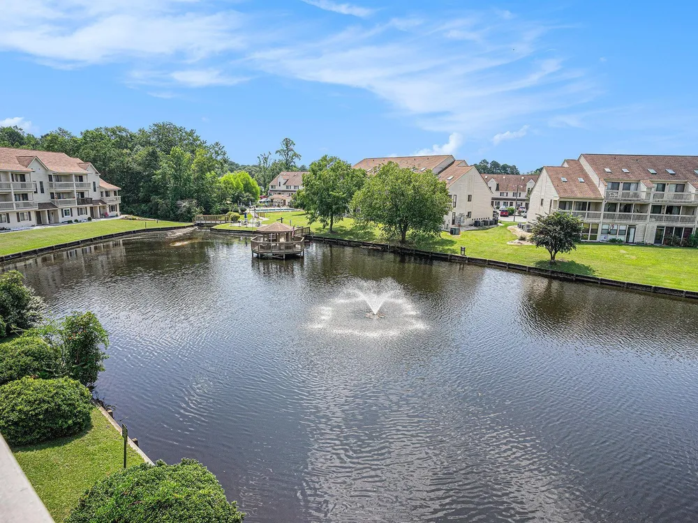 This is a beautiful sun-filled, top-floor, 1-bedrooom, 1-bathroom end unit. Vaulted ceilings with skylights fill the space with natural light, creating an airy, open feel. The spacious balcony provides relaxing water views perfect for enjoying your morning coffee or evening sunsets. The open-concept layout connects the kitchen, dining area, and living room, with plenty of storage in the kitchen for added convenience. This unit is ideal as a primary residence, vacation getaway, or investment property. Located in Fairwood Lakes, part of the Island Green community, residents enjoy access to two community pools. Just minutes from Surfside Beach, with quick access to local attractions, the airport, and Murrells Inlet.