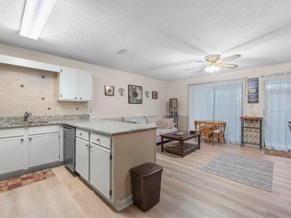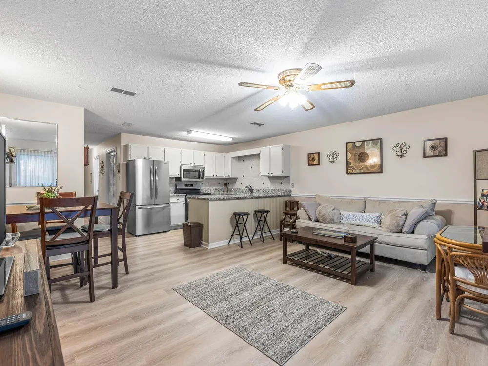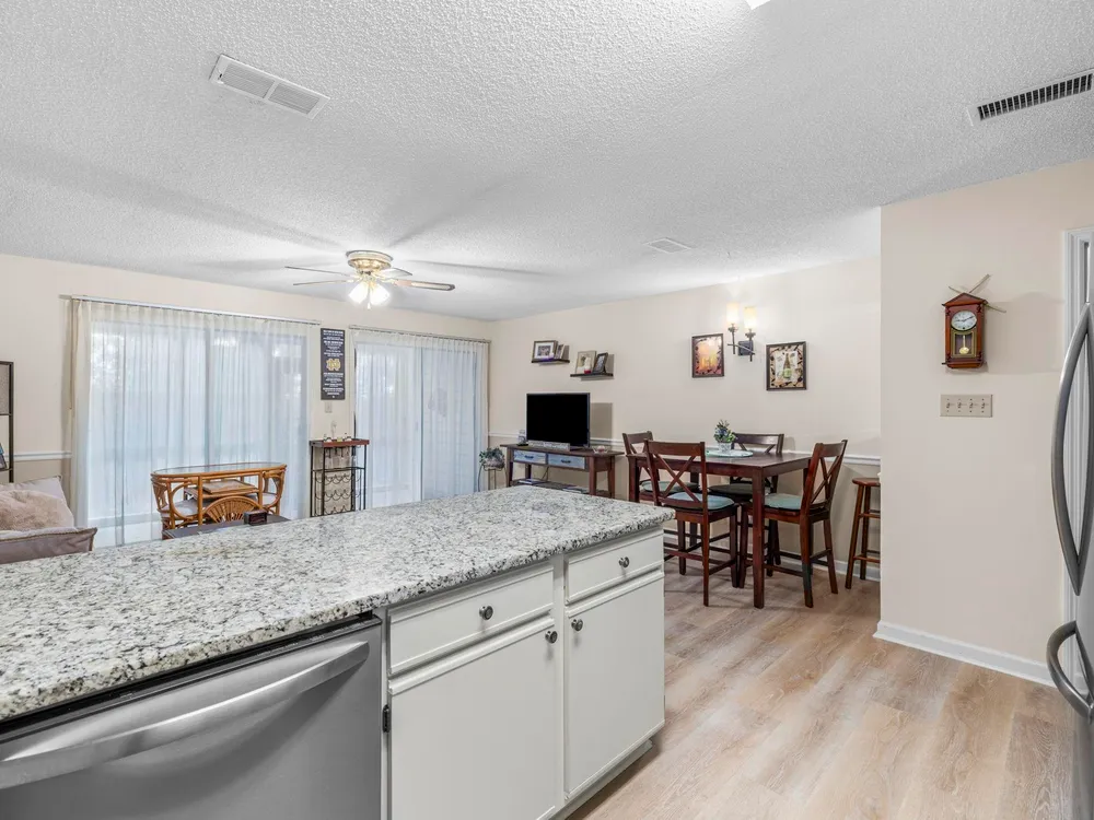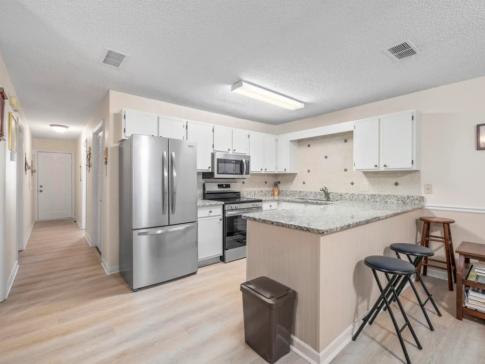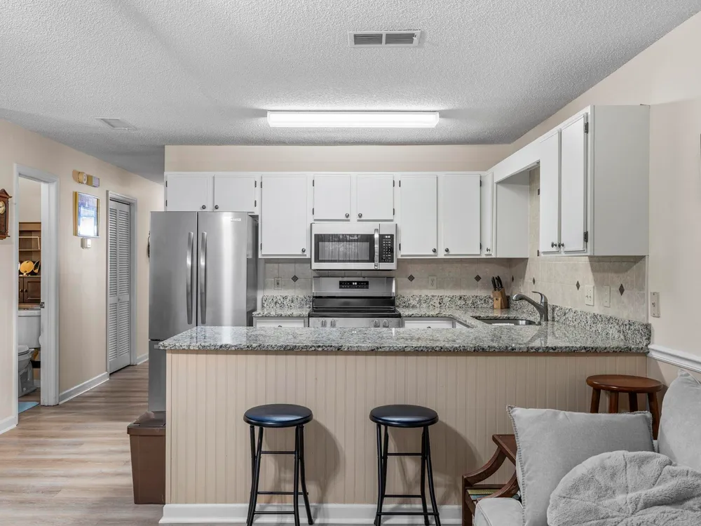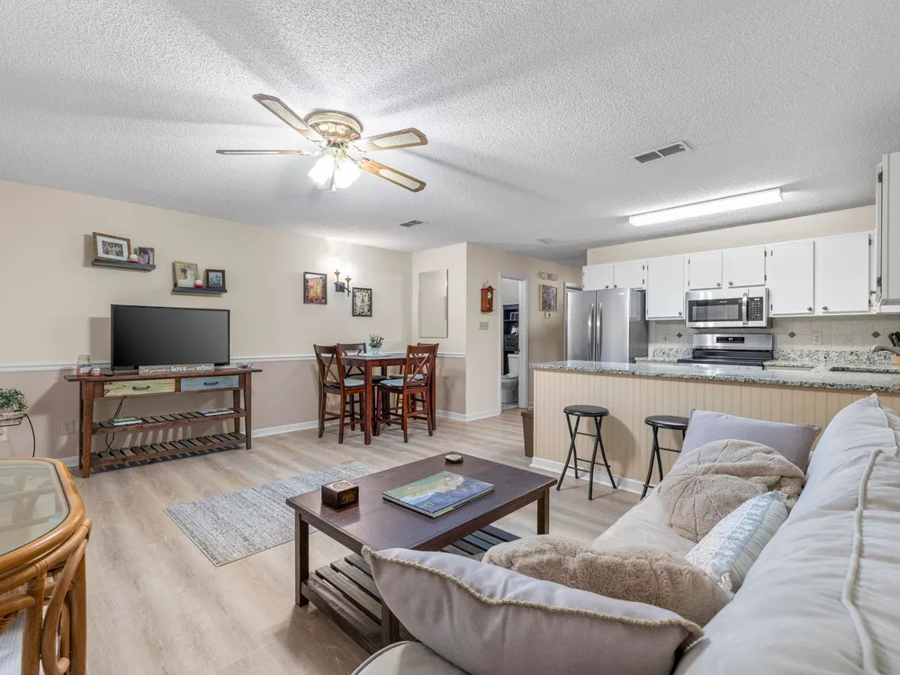 Charming updated 1-Bedroom, 1.5-Bathroom First-Floor Condo with Carolina Room in quiet Myrtle Beach Community. Nestled in a peaceful and well-maintained complex, this cozy 1-bedroom, 1.5-bathroom condo offers a serene living experience just 20 minutes from the sandy shores of Myrtle Beach. Perfectly located on the first floor, this home features a newly updated well-appointed kitchen with brand new stainless steel appliances, ample refreshed cabinetry and beautiful, expansive granite counter space, making meal prep a breeze. A custom pantry closet has been added and convenient half-bath is located just off the living area for guests’ ease. There’s a bright and airy Carolina room, perfect for relaxing or enjoying your morning coffee. This unit features brand new kitchen Stainless Steel Appliances (ready for new owners to register warranty), refreshed cabinetry in kitchen & half bath, new LVP flooring and new toilet in the half bath, new HVAC and dryer, like new washer, HWH 3 years old. The spacious living area flows seamlessly into the dining space, creating an open and inviting atmosphere. The master bedroom is generously sized with a large closet w/designer doors, offering plenty of storage. The custom layout offers a full private master bathroom with relaxing tub and shower combination and linen closet. Enjoy additional outdoor space in the Carolina room, perfect for lounging or using as a home office. Washer & Dryer are conveniently located in a large closet in the Carolina room. Step outside to access the complex’s pool, ideal for cooling off during the warmer months. This condo is located in a quiet community that offers both tranquility and convenience. With Myrtle Beach just a short 20-minute drive away, you’ll have easy access to all the attractions, dining, and entertainment the area has to offer, while still being able to return home to a peaceful retreat. This unit is sold As-Is. Seller has been advised entry road is being repaired. Don't miss the opportunity to own this delightful condo – schedule a tour today!